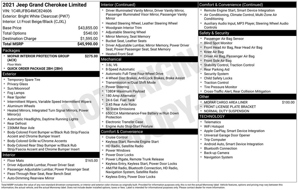Elevate your driving experience with this exceptional 2021 Jeep Grand Cherokee Limited. Boasting a powerful 3.6L V6 engine and 4-wheel drive, this SUV delivers an impressive blend of capability and refinement. With an EPA-estimated 18 city/25 highway MPG, you'll enjoy the perfect balance of performance and efficiency.