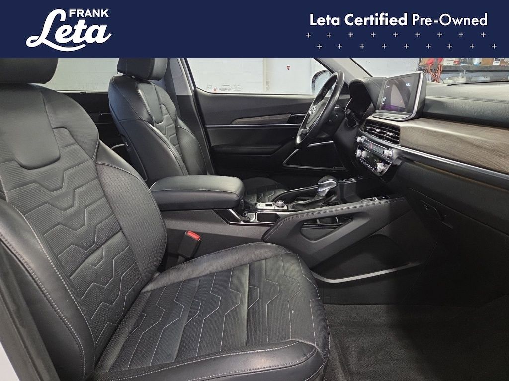 Comfort and convenience are also hallmarks of this Telluride. Heated and ventilated front seats, a heated steering wheel, and a power liftgate make every journey more enjoyable. The Telluride's spacious interior and versatile cargo area provide ample room for passengers and gear, making it the perfect companion for your adventures.