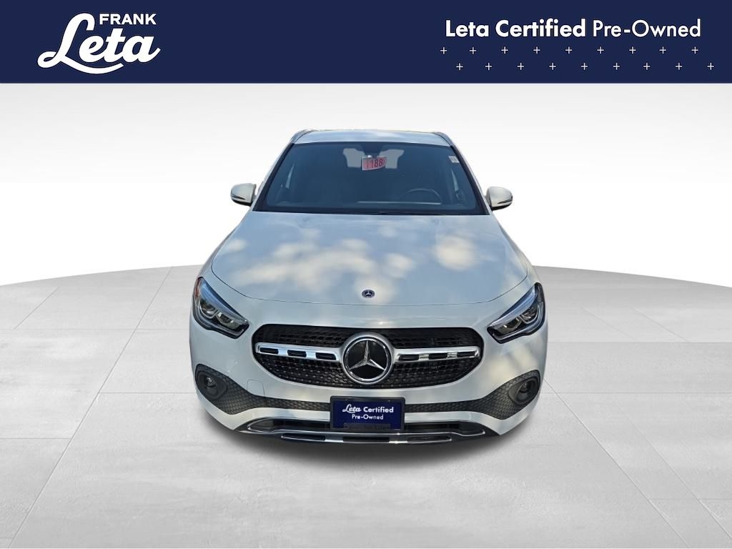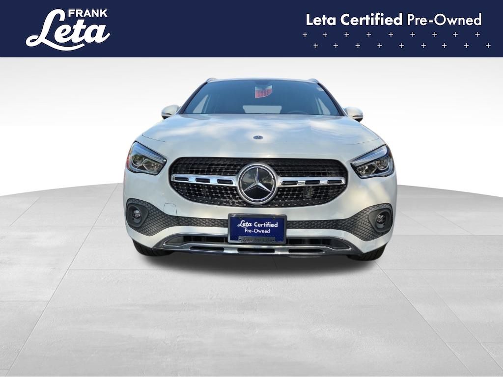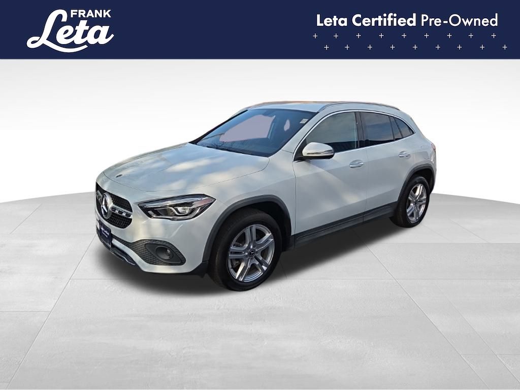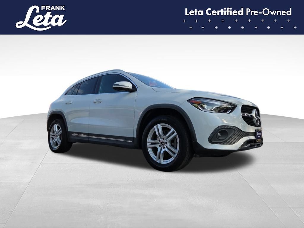 2021 Mercedes-Benz GLA GLA 250 Polar White GLA 250, Frank Leta Certified Certified, 4D Sport Utility, 2.0L I4 Turbocharged, FWD, Polar White, Black w/Leather Upholstery, Alloy wheels, Apple CarPlay/Android Auto, Exterior Parking Camera Rear, Front dual zone A/C, Front fog lights, Fully automatic headlights, Memory seat, Power Liftgate, Wheels: 18" Twin 5-Spoke, 4-Wheel Disc Brakes, 6 Speakers, ABS brakes, Air Conditioning, AM/FM radio, Automatic temperature control, Axle Ratio: TBD, Brake assist, Bumpers: body-color, Child-Seat-Sensing Airbag, Delay-off headlights, Driver door bin, Driver vanity mirror, Dual front impact airbags, Dual front side impact airbags, Electronic Stability Control, Emergency communication system: eCall Emergency System and Active Emergency Stop Assist, Four wheel independent suspension, Front anti-roll bar, Front Bucket Seats, Front Center Armrest, Front Power Seats, Front reading lights, Heated door mirrors, Illuminated entry, Knee airbag, Low tire pressure warning, MB-Tex Upholstery, Occupant sensing airbag, Outside temperature display, Overhead airbag, Overhead console, Panic alarm, Passenger door bin, Passenger vanity mirror, Power door mirrors, Power driver seat, Power passenger seat, Power steering, Power windows, Radio data system, Radio: MBUX Multimedia System, Rain sensing wipers, Rear anti-roll bar, Rear fog lights, Rear reading lights, Rear window defroster, Rear window wiper, Remote keyless entry, Roof rack: rails only, Security system, Speed control, Speed-sensing steering, Split folding rear seat, Spoiler, Steering wheel mounted audio controls, Tachometer, Telescoping steering wheel, Tilt steering wheel, Traction control, Trip computer, Turn signal indicator mirrors, Variably intermittent wipers, GLA 250, 4D Sport Utility, 2.0L I4 Turbocharged, FWD, Polar White, Black w/Leather Upholstery, Alloy wheels, Apple CarPlay/Android Auto, Exterior Parking Camera Rear, Front dual zone A/C, Front fog lights, Fully automatic headlights, Memory seat, Power Liftgate, Wheels: 18" Twin 5-Spoke. 2.0L I4 Turbocharged 8 Speed Dual Clutch FWD 4D Sport Utility 25/34 City/Highway MPG