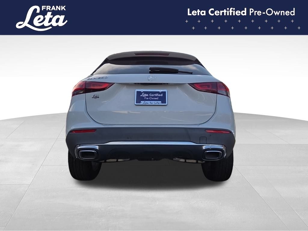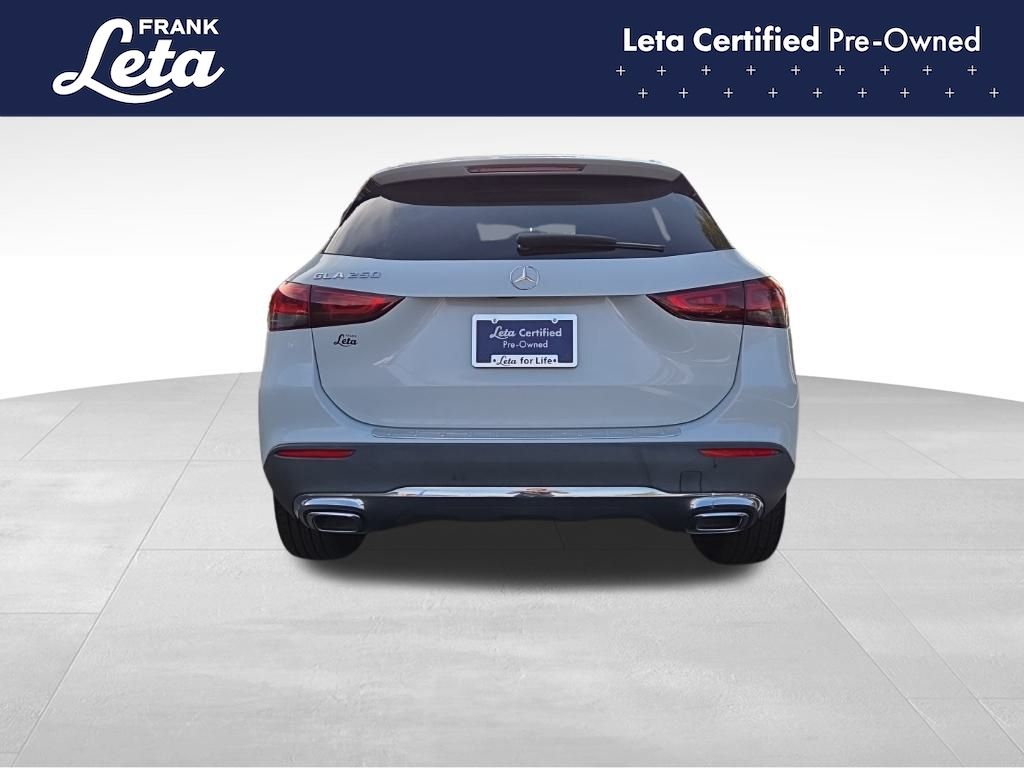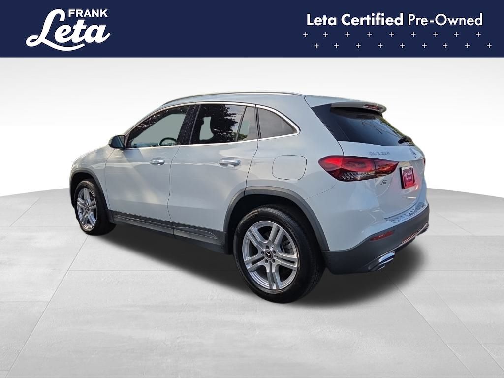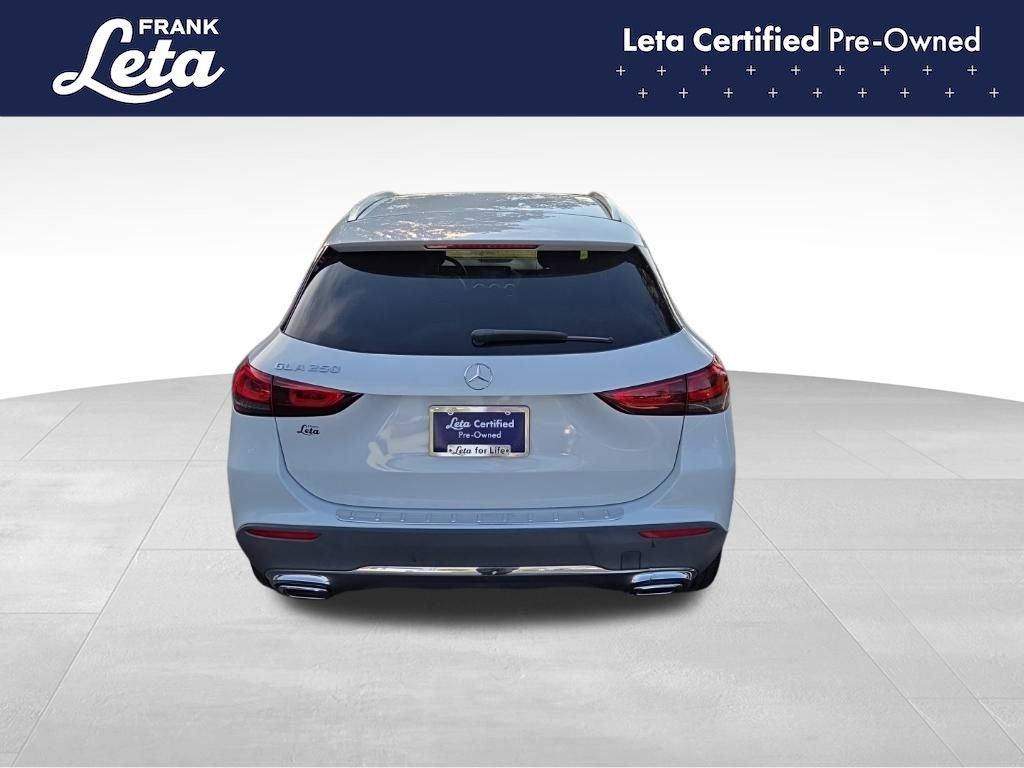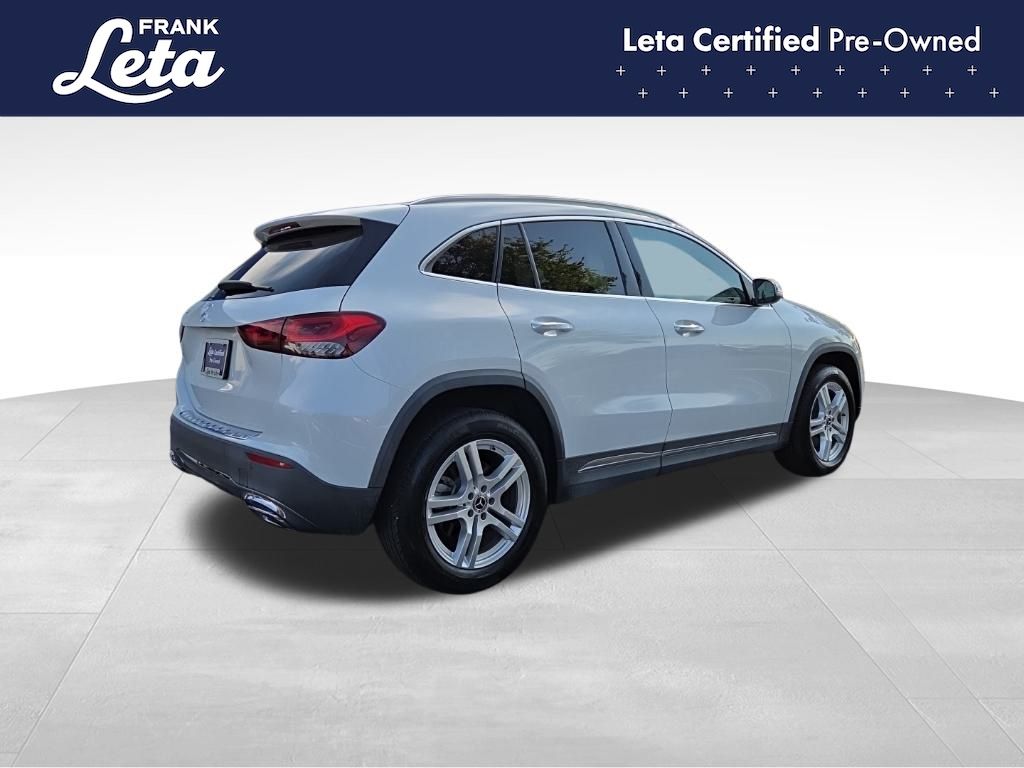 2021 Mercedes-Benz GLA GLA 250 Polar White GLA 250, Frank Leta Certified Certified, 4D Sport Utility, 2.0L I4 Turbocharged, FWD, Polar White, Black w/Leather Upholstery, Alloy wheels, Apple CarPlay/Android Auto, Exterior Parking Camera Rear, Front dual zone A/C, Front fog lights, Fully automatic headlights, Memory seat, Power Liftgate, Wheels: 18" Twin 5-Spoke, 4-Wheel Disc Brakes, 6 Speakers, ABS brakes, Air Conditioning, AM/FM radio, Automatic temperature control, Axle Ratio: TBD, Brake assist, Bumpers: body-color, Child-Seat-Sensing Airbag, Delay-off headlights, Driver door bin, Driver vanity mirror, Dual front impact airbags, Dual front side impact airbags, Electronic Stability Control, Emergency communication system: eCall Emergency System and Active Emergency Stop Assist, Four wheel independent suspension, Front anti-roll bar, Front Bucket Seats, Front Center Armrest, Front Power Seats, Front reading lights, Heated door mirrors, Illuminated entry, Knee airbag, Low tire pressure warning, MB-Tex Upholstery, Occupant sensing airbag, Outside temperature display, Overhead airbag, Overhead console, Panic alarm, Passenger door bin, Passenger vanity mirror, Power door mirrors, Power driver seat, Power passenger seat, Power steering, Power windows, Radio data system, Radio: MBUX Multimedia System, Rain sensing wipers, Rear anti-roll bar, Rear fog lights, Rear reading lights, Rear window defroster, Rear window wiper, Remote keyless entry, Roof rack: rails only, Security system, Speed control, Speed-sensing steering, Split folding rear seat, Spoiler, Steering wheel mounted audio controls, Tachometer, Telescoping steering wheel, Tilt steering wheel, Traction control, Trip computer, Turn signal indicator mirrors, Variably intermittent wipers, GLA 250, 4D Sport Utility, 2.0L I4 Turbocharged, FWD, Polar White, Black w/Leather Upholstery, Alloy wheels, Apple CarPlay/Android Auto, Exterior Parking Camera Rear, Front dual zone A/C, Front fog lights, Fully automatic headlights, Memory seat, Power Liftgate, Wheels: 18" Twin 5-Spoke. 2.0L I4 Turbocharged 8 Speed Dual Clutch FWD 4D Sport Utility 25/34 City/Highway MPG