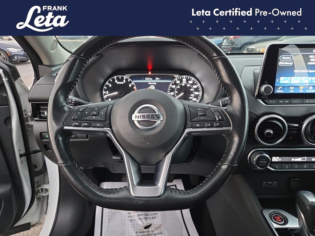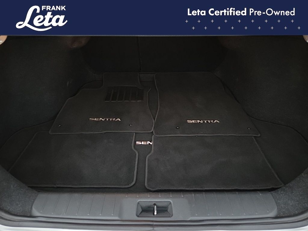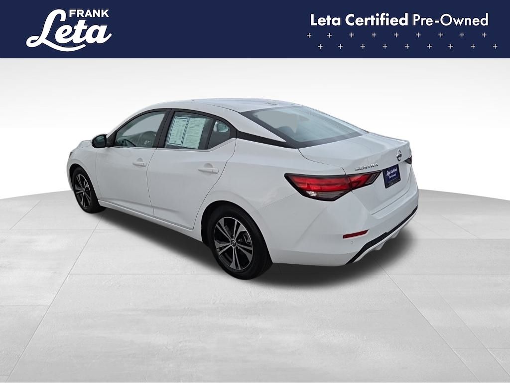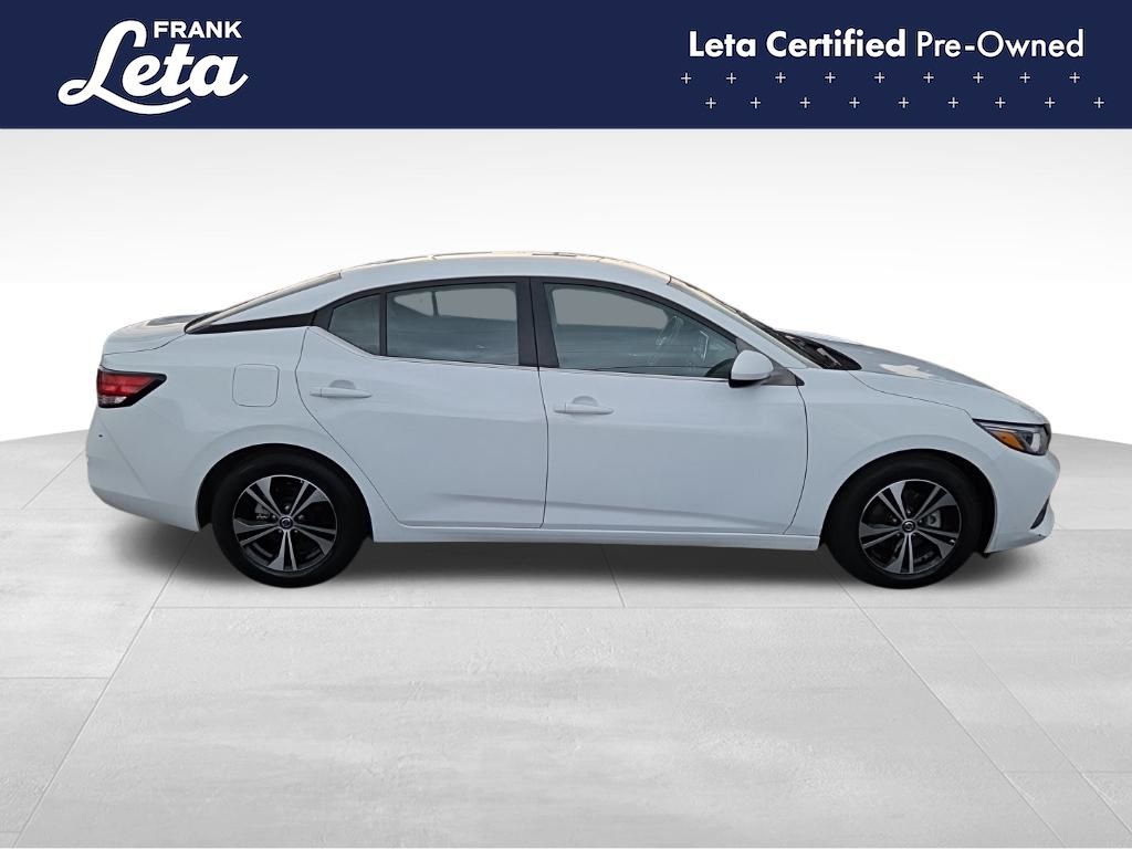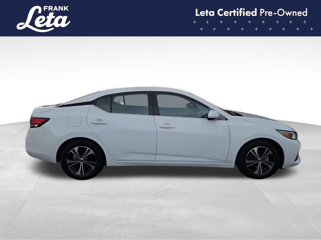 CARFAX One-Owner. 2021 Nissan Sentra SV Fresh Powder Sentra SV, Frank Leta Certified Certified, 2.0L DOHC, CVT with Xtronic, Fresh Powder, Charcoal Cloth, 16" Alloy Wheels, Blind Spot Warning, Front dual zone A/C, Fully automatic headlights, NissanConnect featuring Apple CarPlay and Android Auto, Rear Parking Sensors, 4-Wheel Disc Brakes, 6 Speakers, ABS brakes, Air Conditioning, AM/FM radio: SiriusXM, Auto High-beam Headlights, Automatic temperature control, Brake assist, Bumpers: body-color, Delay-off headlights, Driver door bin, Driver vanity mirror, Dual front impact airbags, Dual front side impact airbags, Electronic Stability Control, Four wheel independent suspension, Front anti-roll bar, Front Bucket Seats, Front Center Armrest, Front reading lights, Heated door mirrors, Illuminated entry, Knee airbag, Low tire pressure warning, Occupant sensing airbag, Outside temperature display, Overhead airbag, Overhead console, Panic alarm, Passenger door bin, Passenger vanity mirror, Power door mirrors, Power steering, Power windows, Radio data system, Radio: AM/FM w/RDS/MP3/Aux-In, Rear anti-roll bar, Rear seat center armrest, Rear side impact airbag, Rear window defroster, Remote keyless entry, Security system, Speed control, Speed-sensing steering, Split folding rear seat, Steering wheel mounted audio controls, Tachometer, Telescoping steering wheel, Tilt steering wheel, Traction control, Trip computer, Upgraded Cloth Seat Trim, Variably intermittent wipers, Sentra SV, 2.0L DOHC, CVT with Xtronic, Fresh Powder, Charcoal Cloth, 16" Alloy Wheels, Blind Spot Warning, Front dual zone A/C, Fully automatic headlights, NissanConnect featuring Apple CarPlay and Android Auto, Rear Parking Sensors. 2.0L DOHC CVT with Xtronic FWD 4D Sedan 29/39 City/Highway MPG Awards: