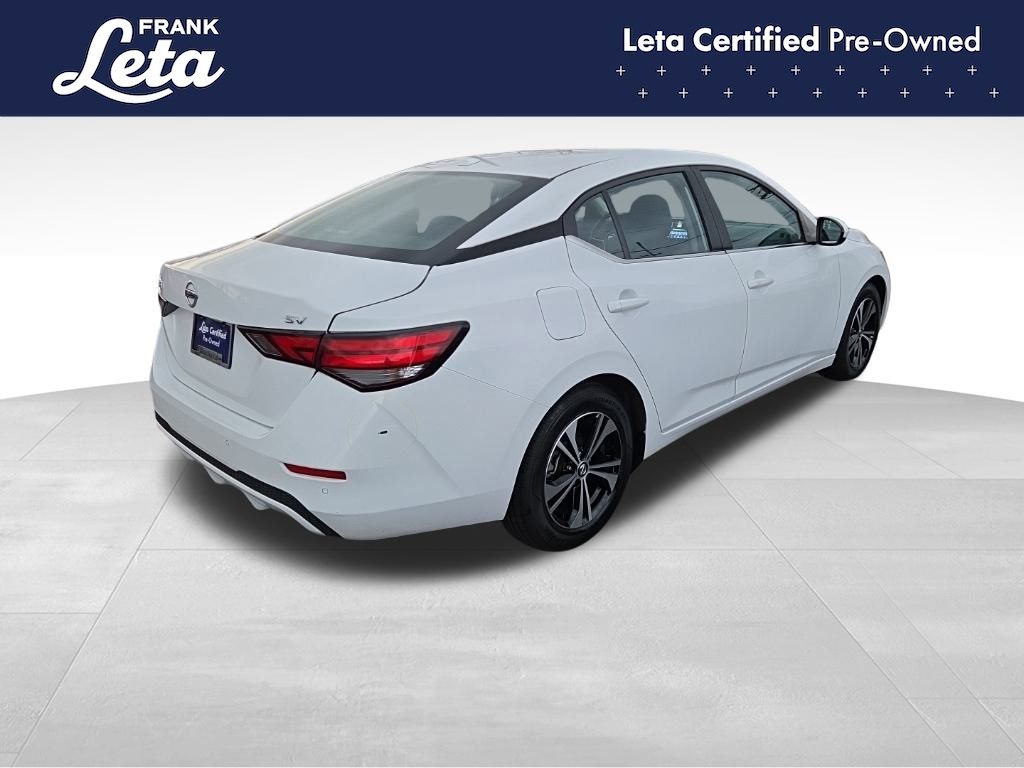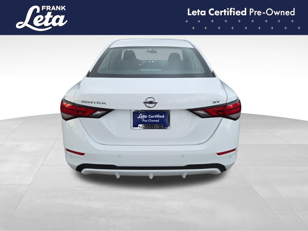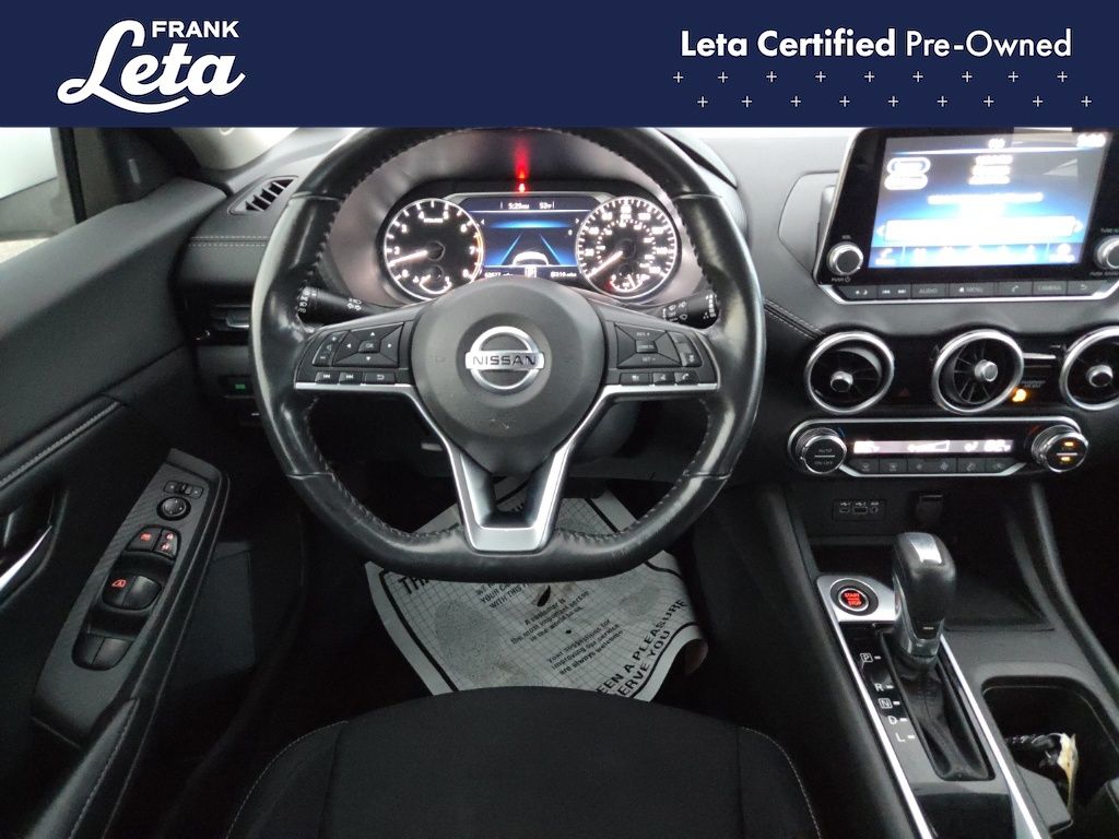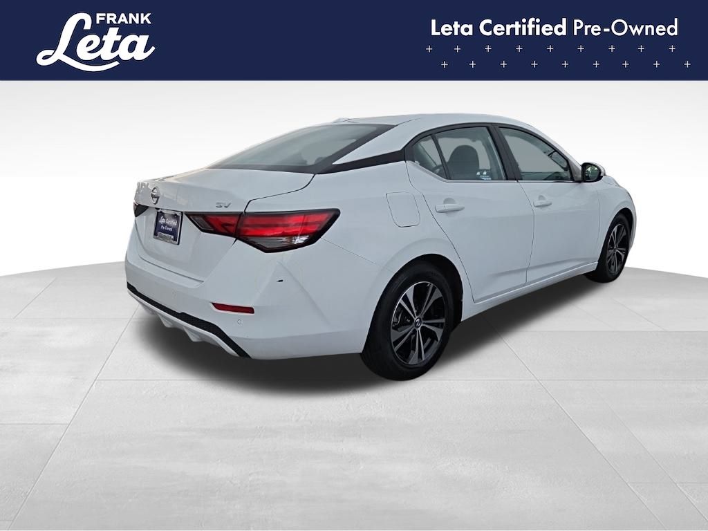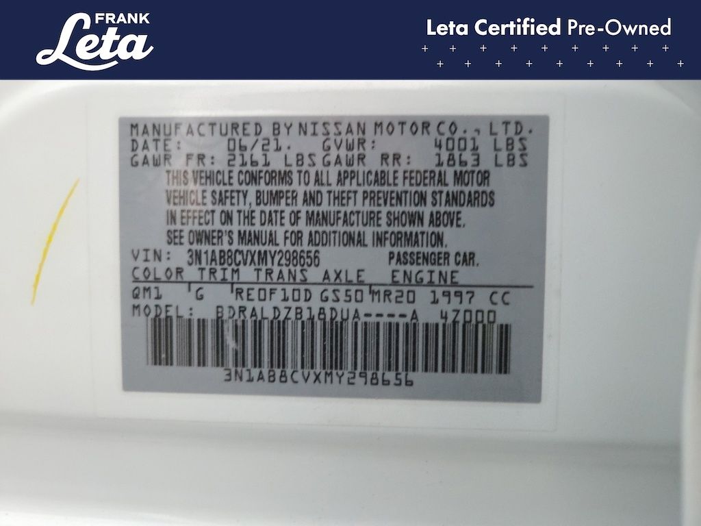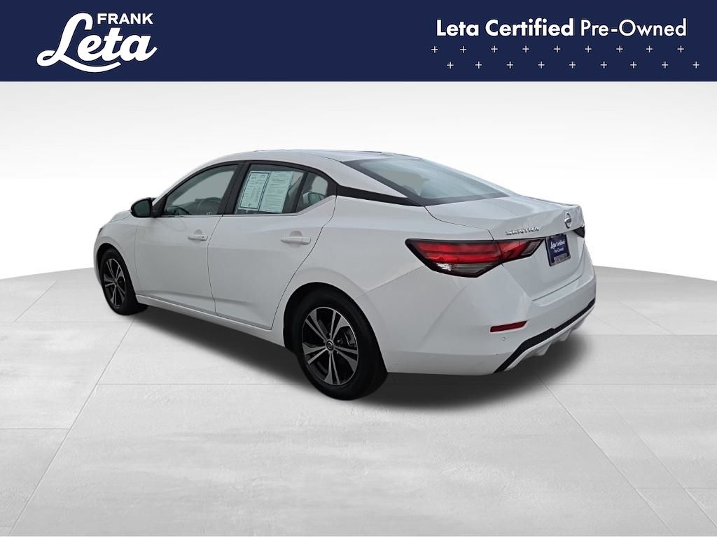 CARFAX One-Owner. 2021 Nissan Sentra SV Fresh Powder Sentra SV, Frank Leta Certified Certified, 2.0L DOHC, CVT with Xtronic, Fresh Powder, Charcoal Cloth, 16" Alloy Wheels, Blind Spot Warning, Front dual zone A/C, Fully automatic headlights, NissanConnect featuring Apple CarPlay and Android Auto, Rear Parking Sensors, 4-Wheel Disc Brakes, 6 Speakers, ABS brakes, Air Conditioning, AM/FM radio: SiriusXM, Auto High-beam Headlights, Automatic temperature control, Brake assist, Bumpers: body-color, Delay-off headlights, Driver door bin, Driver vanity mirror, Dual front impact airbags, Dual front side impact airbags, Electronic Stability Control, Four wheel independent suspension, Front anti-roll bar, Front Bucket Seats, Front Center Armrest, Front reading lights, Heated door mirrors, Illuminated entry, Knee airbag, Low tire pressure warning, Occupant sensing airbag, Outside temperature display, Overhead airbag, Overhead console, Panic alarm, Passenger door bin, Passenger vanity mirror, Power door mirrors, Power steering, Power windows, Radio data system, Radio: AM/FM w/RDS/MP3/Aux-In, Rear anti-roll bar, Rear seat center armrest, Rear side impact airbag, Rear window defroster, Remote keyless entry, Security system, Speed control, Speed-sensing steering, Split folding rear seat, Steering wheel mounted audio controls, Tachometer, Telescoping steering wheel, Tilt steering wheel, Traction control, Trip computer, Upgraded Cloth Seat Trim, Variably intermittent wipers, Sentra SV, 2.0L DOHC, CVT with Xtronic, Fresh Powder, Charcoal Cloth, 16" Alloy Wheels, Blind Spot Warning, Front dual zone A/C, Fully automatic headlights, NissanConnect featuring Apple CarPlay and Android Auto, Rear Parking Sensors. 2.0L DOHC CVT with Xtronic FWD 4D Sedan 29/39 City/Highway MPG Awards:
