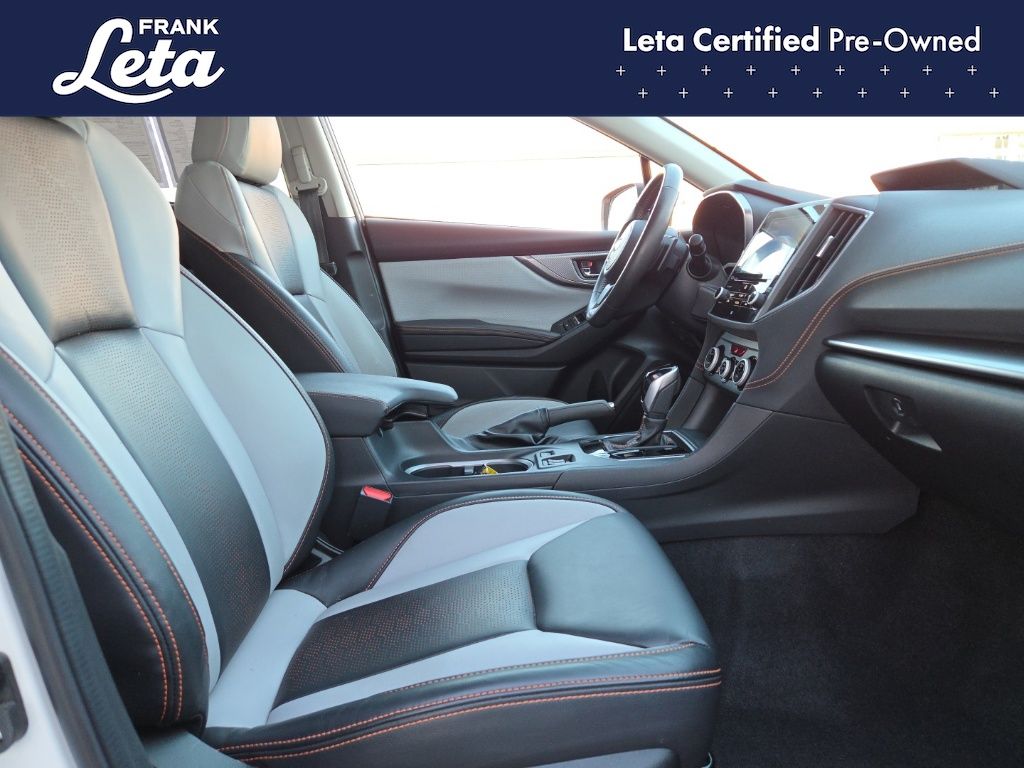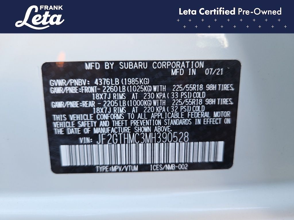 CARFAX One-Owner. 2021 Subaru Crosstrek Limited Crystal White Pearl Crosstrek Limited, Frank Leta Certified Certified, 2.5L DOHC, AWD, Crystal White Pearl, Gray w/Leather-Trimmed Upholstery, Auto-Dimming Exterior Mirror w/Approach Light, Auto-Dimming Mirror w/Compass & HomeLink, Exterior Parking Camera Rear, Front fog lights, Fully automatic headlights, Heated front seats, STARLINK/Apple CarPlay/Android Auto, Traction control, Wheels: 18" Alloy Machine Finish, 3.70 Axle Ratio, 4-Wheel Disc Brakes, 6 Speakers, ABS brakes, Air Conditioning, All-Weather Floor Liners, AM/FM radio: SiriusXM, Anti-whiplash front head restraints, Auto High-beam Headlights, Automatic temperature control, Brake assist, Bumpers: body-color, Cargo Net, CD player, Driver door bin, Driver vanity mirror, Dual front impact airbags, Dual front side impact airbags, Electronic Stability Control, Emergency communication system: STARLINK Safety and Security (Subscription Required), Four wheel independent suspension, Front anti-roll bar, Front Bucket Seats, Front Center Armrest, Front reading lights, Heated door mirrors, Heated Front Bucket Seats, Illuminated entry, Knee airbag, Leather-Trimmed Upholstery, Low tire pressure warning, Map & Dome Lights LED Upgrade, Occupant sensing airbag, Outside temperature display, Overhead airbag, Overhead console, Panic alarm, Passenger door bin, Passenger vanity mirror, Popular Package #4, Power door mirrors, Power driver seat, Power steering, Power windows, Radio data system, Radio: Subaru STARLINK 8.0" Multimedia Plus System, Rear anti-roll bar, Rear Bumper Cover, Rear seat center armrest, Rear Seatback Protector, Rear window defroster, Rear window wiper, Remote keyless entry, Security system, Speed control, Speed-sensing steering, Splash Guards, Split folding rear seat, Spoiler, Standard Model, Steering wheel mounted audio controls, Subaru STARLINK Smartphone Integration, Tachometer, Telescoping steering wheel, Tilt steering wheel, Trip computer, Turn signal indicator mirrors, Variably intermittent wipers, Crosstrek Limited, 2.5L DOHC, AWD, Crystal White Pearl, Gray w/Leather-Trimmed Upholstery, Auto-Dimming Exterior Mirror w/Approach Light, Auto-Dimming Mirror w/Compass & HomeLink, Exterior Parking Camera Rear, Front fog lights, Fully automatic headlights, Heated front seats, STARLINK/Apple CarPlay/Android Auto, Traction control, Wheels: 18" Alloy Machine Finish. 2.5L DOHC Lineartronic CVT AWD 4D Sport Utility Odometer is 39268 miles below market average! 27/34 City/Highway MPG Awards:
