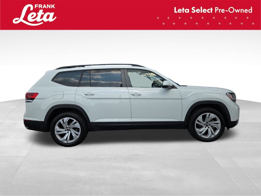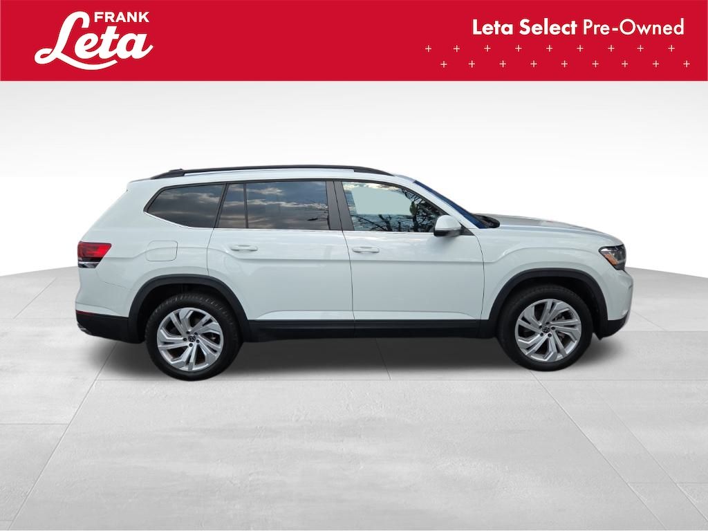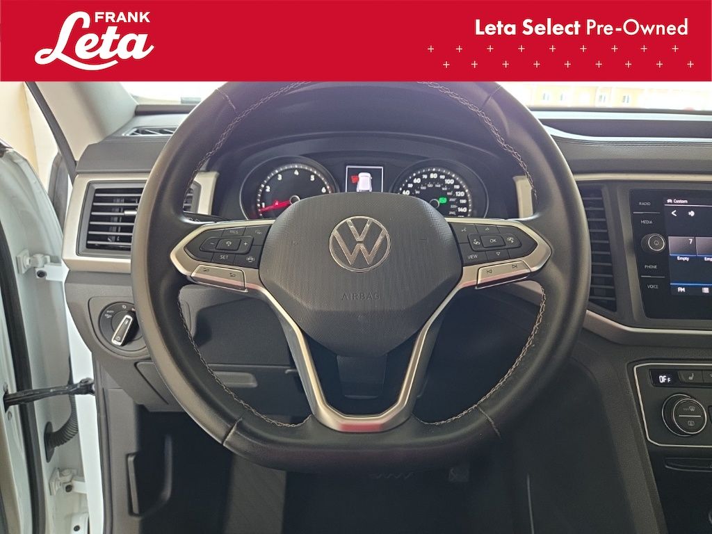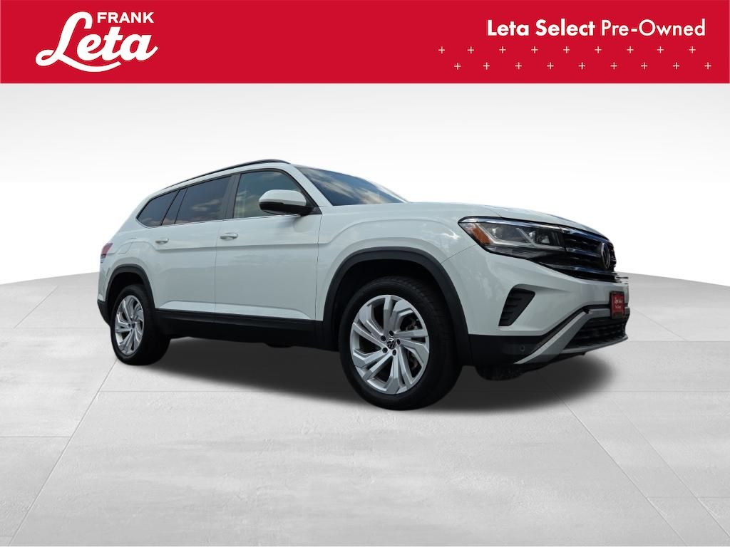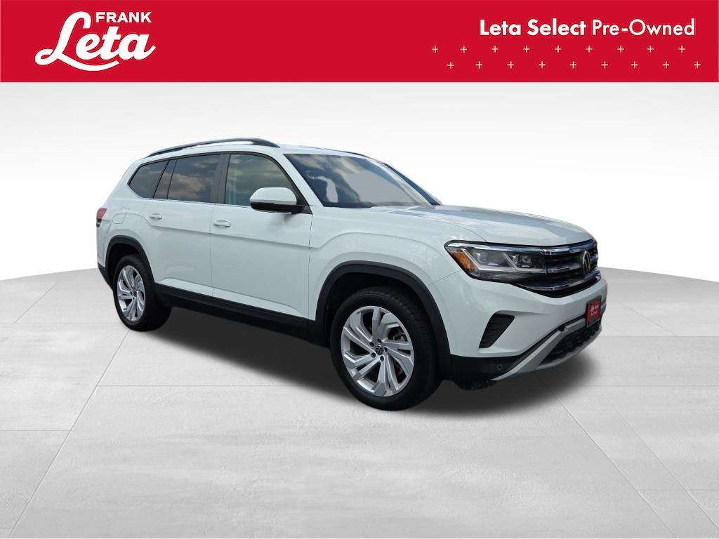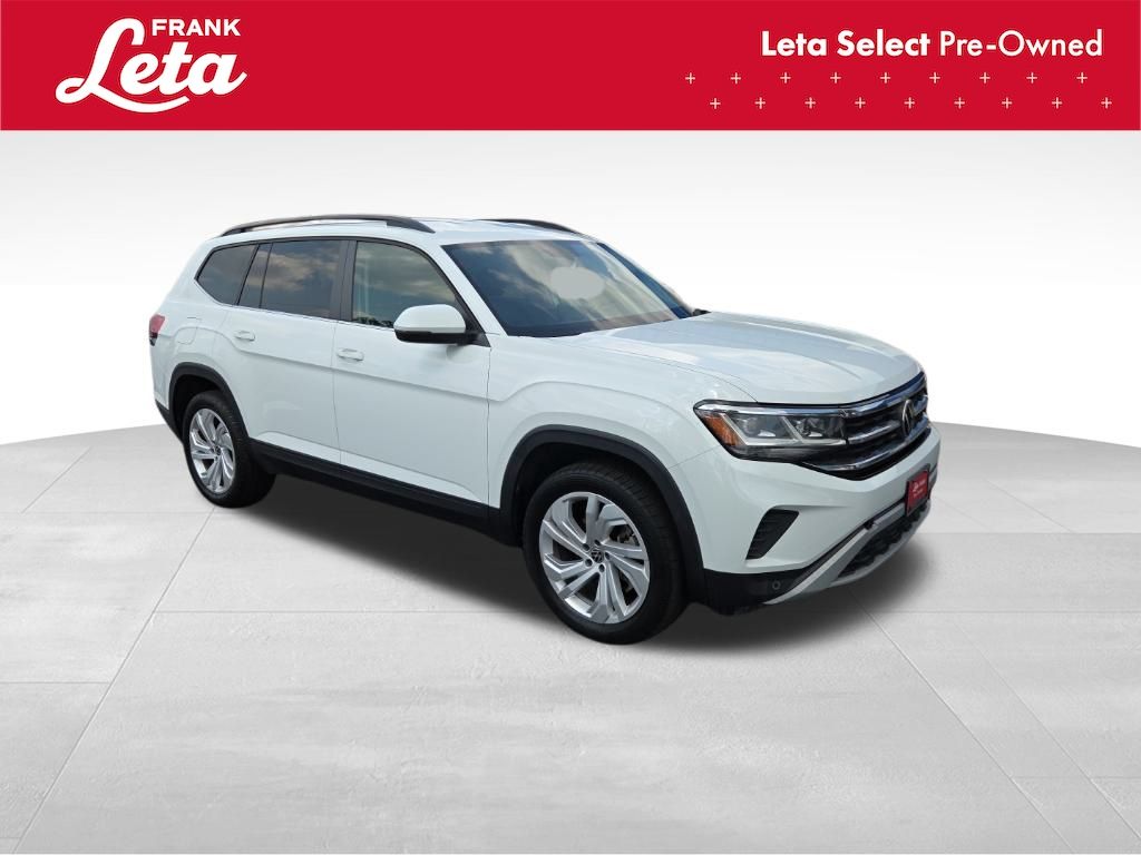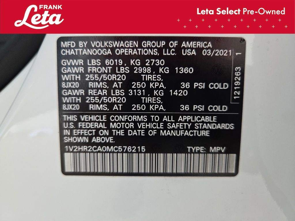 2021 Volkswagen Atlas 3.6L V6 SE w/Technology Pure White Atlas 3.6L V6 SE w/Technology, Frank Leta Select Certified, 3.6L VR6, AWD, Pure White, Titan Black w/Perforated V-Tex Leatherette Seating Surfaces, 3rd row seats: split-bench, Auto-dimming Rear-View mirror, Exterior Parking Camera Rear, Forward collision: FCW w/Autonomous Emergency Braking mitigation, Front dual zone A/C, Front fog lights, Fully automatic headlights, Heated front seats, Power Liftgate, Wheels: 20" 5-Spoke Silver Alloy, 3.60 Axle Ratio, 4-Wheel Disc Brakes, 6 Speakers, ABS brakes, Active Blind Spot Monitor, Air Conditioning, AM/FM radio: SiriusXM, Automatic temperature control, Brake assist, Bumpers: body-color, Compass, Delay-off headlights, Driver door bin, Driver vanity mirror, Dual front impact airbags, Dual front side impact airbags, Electronic Stability Control, Emergency communication system: VW Car-Net services (capabilities require enrollment or subscription), Four wheel independent suspension, Front anti-roll bar, Front Bucket Seats, Front Center Armrest, Front reading lights, Heated Comfort Front Bucket Seats, Heated door mirrors, Illuminated entry, Leather Shift Knob, Low tire pressure warning, Occupant sensing airbag, Outside temperature display, Overhead airbag, Overhead console, Panic alarm, Passenger door bin, Passenger vanity mirror, Perforated V-Tex Leatherette Seating Surfaces, Power door mirrors, Power driver seat, Power steering, Power windows, Radio data system, Radio: Composition Media w/8" Touchscreen, Rain sensing wipers, Rear air conditioning, Rear anti-roll bar, Rear reading lights, Rear seat center armrest, Rear window defroster, Rear window wiper, Remote CD player, Remote keyless entry, Roof rack: rails only, Security system, Speed control, Speed-sensing steering, Split folding rear seat, Spoiler, Standard Suspension, Steering wheel mounted audio controls, Tachometer, Telescoping steering wheel, Tilt steering wheel, Traction control, Trip computer, Turn signal indicator mirrors, Variably intermittent wipers, Atlas 3.6L V6 SE w/Technology, 3.6L VR6, AWD, Pure White, Titan Black w/Perforated V-Tex Leatherette Seating Surfaces, 3rd row seats: split-bench, Auto-dimming Rear-View mirror, Exterior Parking Camera Rear, Forward collision: FCW w/Autonomous Emergency Braking mitigation, Front dual zone A/C, Front fog lights, Fully automatic headlights, Heated front seats, Power Liftgate, Wheels: 20" 5-Spoke Silver Alloy. 3.6L VR6 8-Speed Automatic with Tiptronic AWD 4D Sport Utility