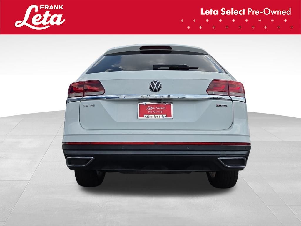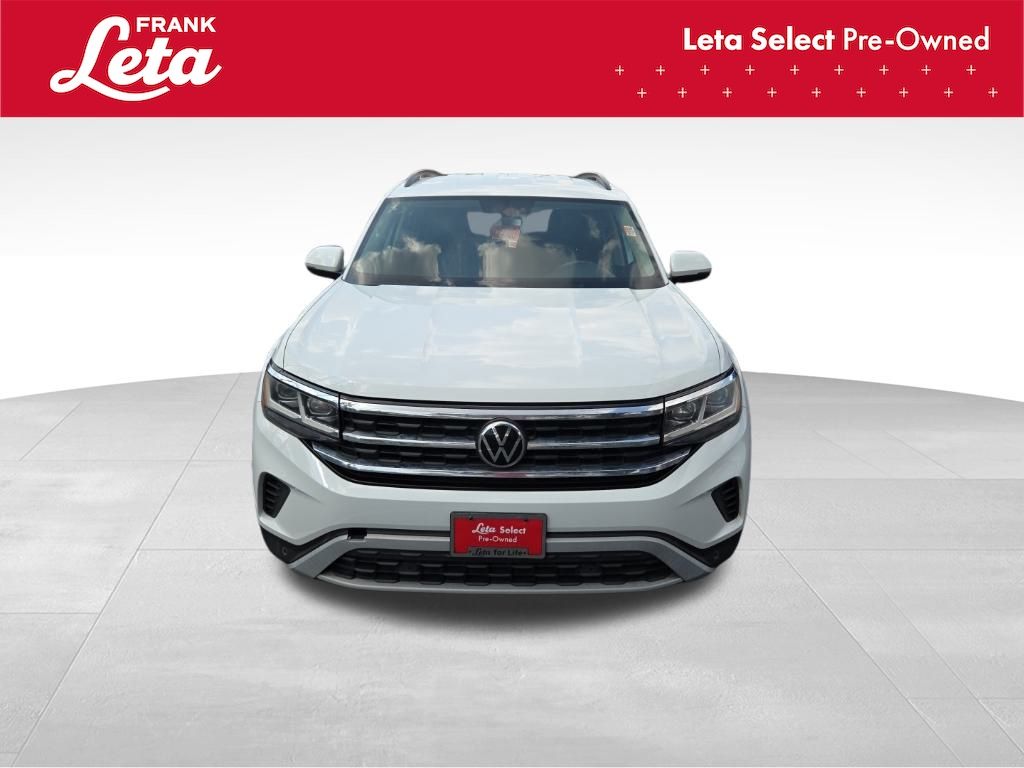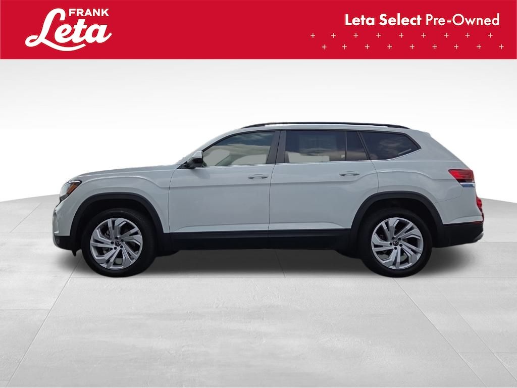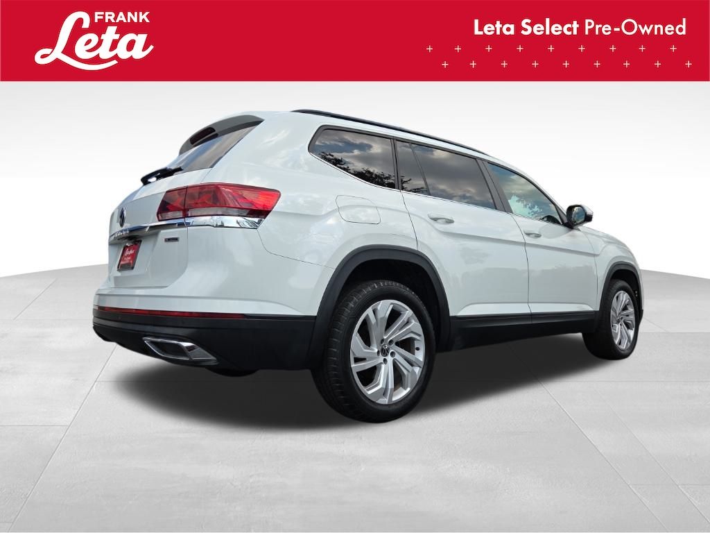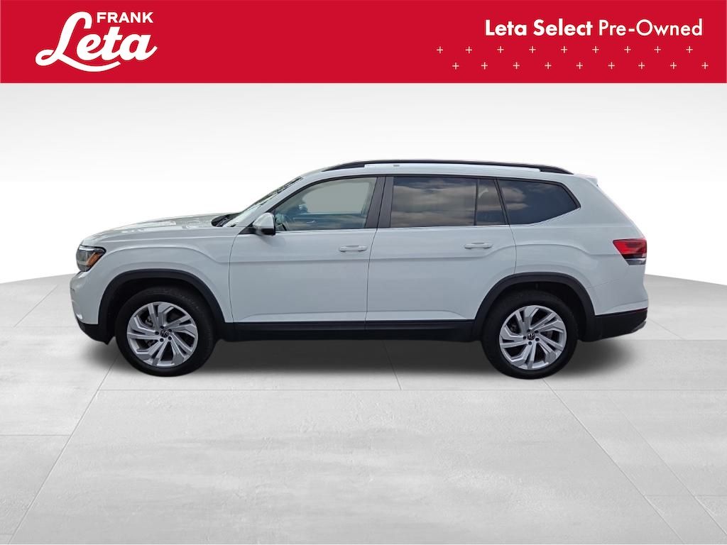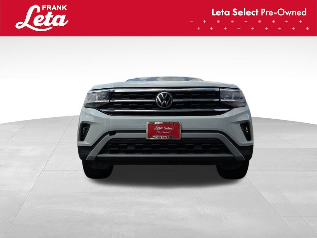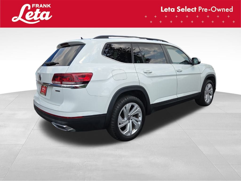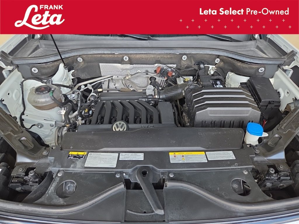 2021 Volkswagen Atlas 3.6L V6 SE w/Technology Pure White Atlas 3.6L V6 SE w/Technology, Frank Leta Select Certified, 3.6L VR6, AWD, Pure White, Titan Black w/Perforated V-Tex Leatherette Seating Surfaces, 3rd row seats: split-bench, Auto-dimming Rear-View mirror, Exterior Parking Camera Rear, Forward collision: FCW w/Autonomous Emergency Braking mitigation, Front dual zone A/C, Front fog lights, Fully automatic headlights, Heated front seats, Power Liftgate, Wheels: 20" 5-Spoke Silver Alloy, 3.60 Axle Ratio, 4-Wheel Disc Brakes, 6 Speakers, ABS brakes, Active Blind Spot Monitor, Air Conditioning, AM/FM radio: SiriusXM, Automatic temperature control, Brake assist, Bumpers: body-color, Compass, Delay-off headlights, Driver door bin, Driver vanity mirror, Dual front impact airbags, Dual front side impact airbags, Electronic Stability Control, Emergency communication system: VW Car-Net services (capabilities require enrollment or subscription), Four wheel independent suspension, Front anti-roll bar, Front Bucket Seats, Front Center Armrest, Front reading lights, Heated Comfort Front Bucket Seats, Heated door mirrors, Illuminated entry, Leather Shift Knob, Low tire pressure warning, Occupant sensing airbag, Outside temperature display, Overhead airbag, Overhead console, Panic alarm, Passenger door bin, Passenger vanity mirror, Perforated V-Tex Leatherette Seating Surfaces, Power door mirrors, Power driver seat, Power steering, Power windows, Radio data system, Radio: Composition Media w/8" Touchscreen, Rain sensing wipers, Rear air conditioning, Rear anti-roll bar, Rear reading lights, Rear seat center armrest, Rear window defroster, Rear window wiper, Remote CD player, Remote keyless entry, Roof rack: rails only, Security system, Speed control, Speed-sensing steering, Split folding rear seat, Spoiler, Standard Suspension, Steering wheel mounted audio controls, Tachometer, Telescoping steering wheel, Tilt steering wheel, Traction control, Trip computer, Turn signal indicator mirrors, Variably intermittent wipers, Atlas 3.6L V6 SE w/Technology, 3.6L VR6, AWD, Pure White, Titan Black w/Perforated V-Tex Leatherette Seating Surfaces, 3rd row seats: split-bench, Auto-dimming Rear-View mirror, Exterior Parking Camera Rear, Forward collision: FCW w/Autonomous Emergency Braking mitigation, Front dual zone A/C, Front fog lights, Fully automatic headlights, Heated front seats, Power Liftgate, Wheels: 20" 5-Spoke Silver Alloy. 3.6L VR6 8-Speed Automatic with Tiptronic AWD 4D Sport Utility