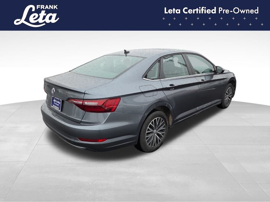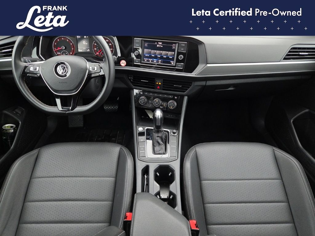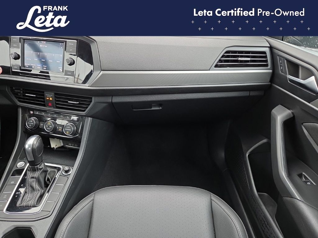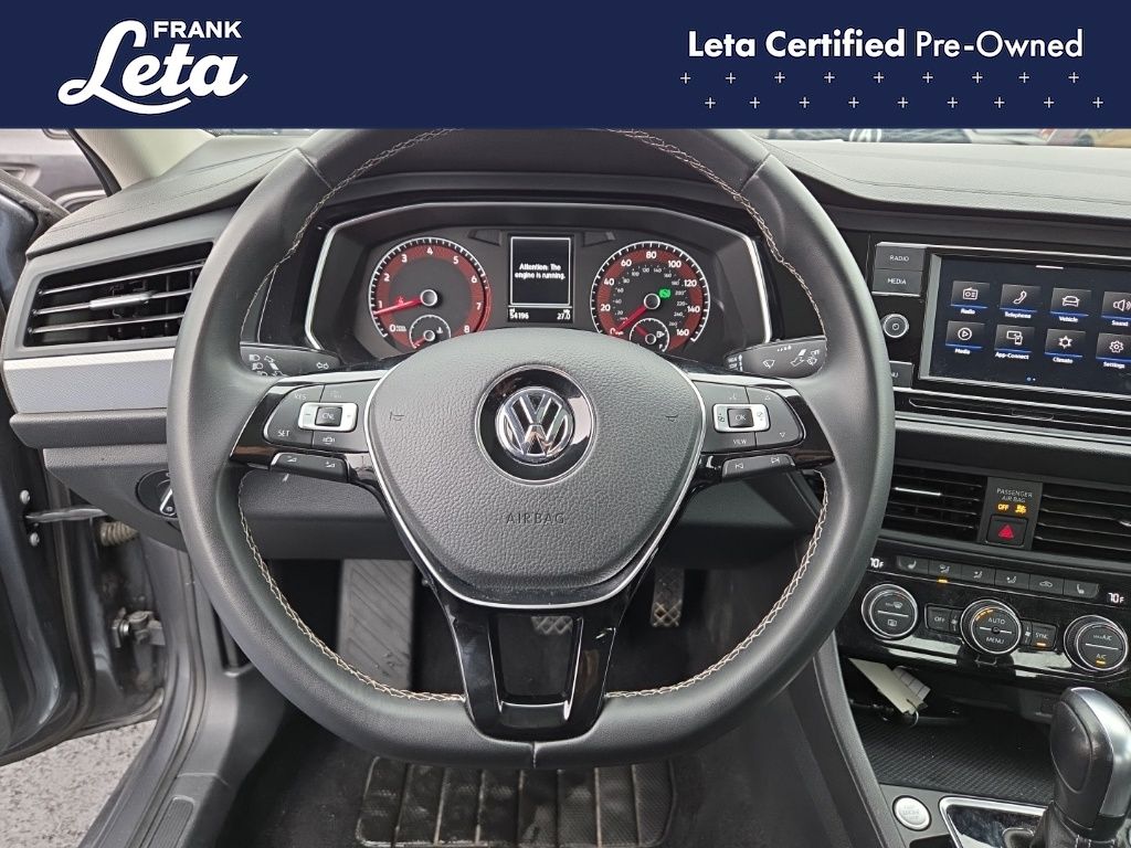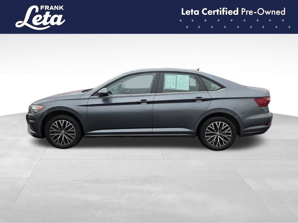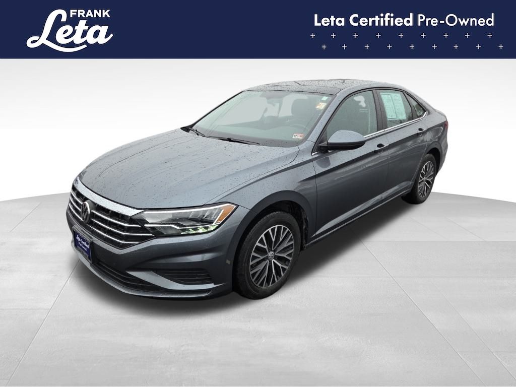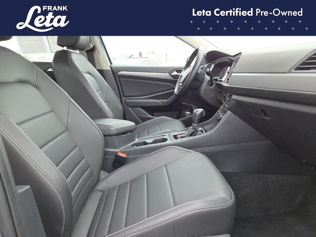 2021 Volkswagen Jetta 1.4T SE Platinum Gray Metallic Jetta 1.4T SE, Frank Leta Certified Certified, 1.4L TSI, Platinum Gray Metallic, Titan Black w/Perforated V-Tex Leatherette Seat Trim, Exterior Parking Camera Rear, Front dual zone A/C, Fully automatic headlights, Heated door mirrors, Heated Front Comfort Sport Seats, Heated front seats, Power moonroof: Panoramic, Wheels: 16" 2-Tone Machined Alloy, 4 Speakers, 4-Wheel Disc Brakes, ABS brakes, Air Conditioning, AM/FM radio, Automatic temperature control, Brake assist, Bumpers: body-color, Delay-off headlights, Driver door bin, Driver vanity mirror, Dual front impact airbags, Dual front side impact airbags, Electronic Stability Control, Emergency communication system: VW Car-Net services (capabilities require enrollment or subscription), Front anti-roll bar, Front Bucket Seats, Front Center Armrest, Front reading lights, Front wheel independent suspension, Illuminated entry, Leather Shift Knob, Low tire pressure warning, Occupant sensing airbag, Outside temperature display, Overhead airbag, Overhead console, Panic alarm, Passenger door bin, Passenger vanity mirror, Perforated V-Tex Leatherette Seat Trim, Power door mirrors, Power driver seat, Power steering, Power windows, Radio data system, Radio: Composition Color w/6.5" Touchscreen, Rear anti-roll bar, Rear reading lights, Rear seat center armrest, Rear window defroster, Remote keyless entry, Speed control, Speed-sensing steering, Split folding rear seat, Steering wheel mounted audio controls, Tachometer, Telescoping steering wheel, Tilt steering wheel, Traction control, Trip computer, Variably intermittent wipers, Jetta 1.4T SE, 1.4L TSI, Platinum Gray Metallic, Titan Black w/Perforated V-Tex Leatherette Seat Trim, Exterior Parking Camera Rear, Front dual zone A/C, Fully automatic headlights, Heated door mirrors, Heated Front Comfort Sport Seats, Heated front seats, Power moonroof: Panoramic, Wheels: 16" 2-Tone Machined Alloy. 1.4L TSI 8-Speed Automatic FWD 4D Sedan 29/39 City/Highway MPG