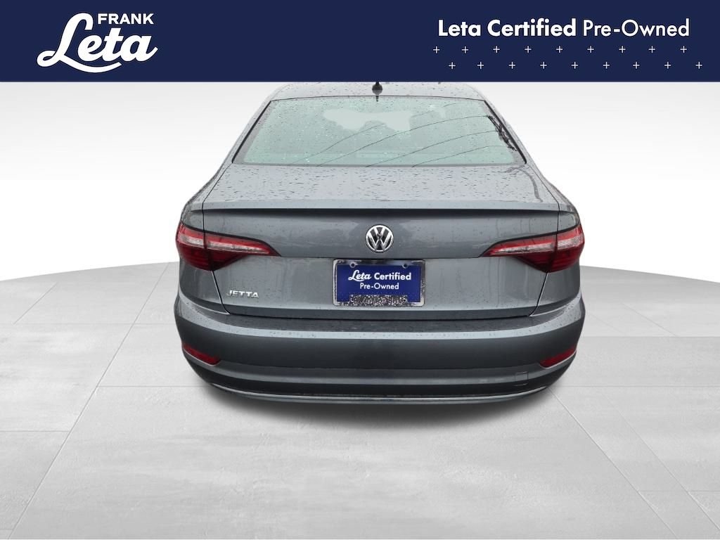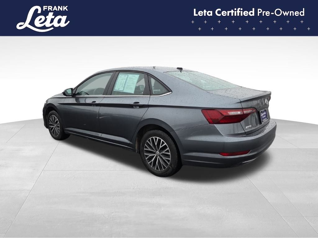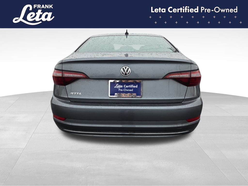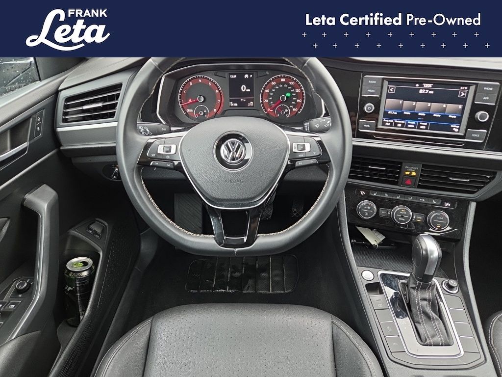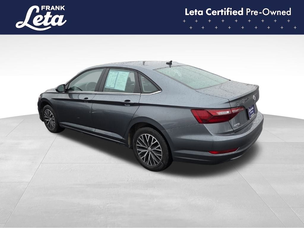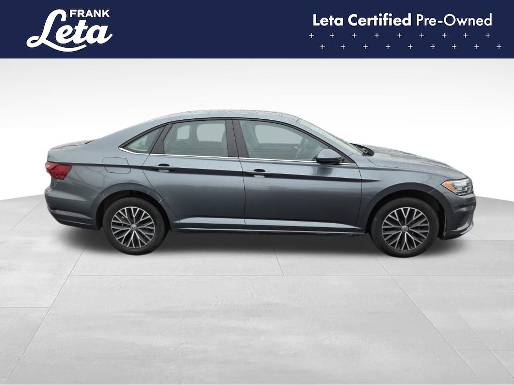 2021 Volkswagen Jetta 1.4T SE Platinum Gray Metallic Jetta 1.4T SE, Frank Leta Certified Certified, 1.4L TSI, Platinum Gray Metallic, Titan Black w/Perforated V-Tex Leatherette Seat Trim, Exterior Parking Camera Rear, Front dual zone A/C, Fully automatic headlights, Heated door mirrors, Heated Front Comfort Sport Seats, Heated front seats, Power moonroof: Panoramic, Wheels: 16" 2-Tone Machined Alloy, 4 Speakers, 4-Wheel Disc Brakes, ABS brakes, Air Conditioning, AM/FM radio, Automatic temperature control, Brake assist, Bumpers: body-color, Delay-off headlights, Driver door bin, Driver vanity mirror, Dual front impact airbags, Dual front side impact airbags, Electronic Stability Control, Emergency communication system: VW Car-Net services (capabilities require enrollment or subscription), Front anti-roll bar, Front Bucket Seats, Front Center Armrest, Front reading lights, Front wheel independent suspension, Illuminated entry, Leather Shift Knob, Low tire pressure warning, Occupant sensing airbag, Outside temperature display, Overhead airbag, Overhead console, Panic alarm, Passenger door bin, Passenger vanity mirror, Perforated V-Tex Leatherette Seat Trim, Power door mirrors, Power driver seat, Power steering, Power windows, Radio data system, Radio: Composition Color w/6.5" Touchscreen, Rear anti-roll bar, Rear reading lights, Rear seat center armrest, Rear window defroster, Remote keyless entry, Speed control, Speed-sensing steering, Split folding rear seat, Steering wheel mounted audio controls, Tachometer, Telescoping steering wheel, Tilt steering wheel, Traction control, Trip computer, Variably intermittent wipers, Jetta 1.4T SE, 1.4L TSI, Platinum Gray Metallic, Titan Black w/Perforated V-Tex Leatherette Seat Trim, Exterior Parking Camera Rear, Front dual zone A/C, Fully automatic headlights, Heated door mirrors, Heated Front Comfort Sport Seats, Heated front seats, Power moonroof: Panoramic, Wheels: 16" 2-Tone Machined Alloy. 1.4L TSI 8-Speed Automatic FWD 4D Sedan 29/39 City/Highway MPG