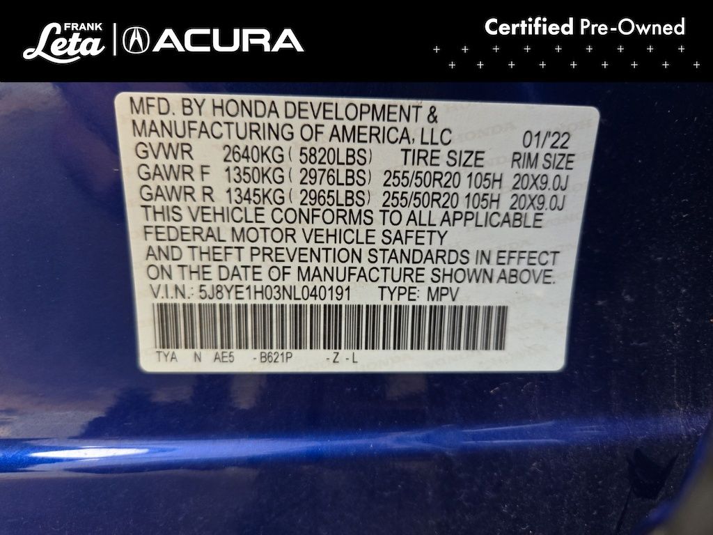 CARFAX One-Owner. 2022 Acura MDX A-Spec SH-AWD Apex Blue Pearl MDX A-Spec SH-AWD, Precision Certified Certified, 3.5L V6 SOHC i-VTEC 24V, AWD, Apex Blue Pearl, Ebony w/Perforated Milano Leather & Ultrasuede, 16 Speakers, 3rd row seats: split-bench, Apple CarPlay/Android Auto, Auto-dimming Rear-View mirror, Front dual zone A/C, Front fog lights, Fully automatic headlights, Garage door transmitter: HomeLink, Heated & Ventilated A-Spec Front Sport Seats, Heated front seats, Lane departure: Lane Keeping Assist System (LKAS) active, Memory seat, Navigation system: Acura Navigation System with 3D View, Power Liftgate, Power moonroof, Radio: ELS Studio 3D Premium Audio System, Rear air conditioning, Ventilated front seats, Wheels: 20" x 9" Aluminum Alloy, 4-Wheel Disc Brakes, 4.17 Axle Ratio, A/V remote: CabinControl, ABS brakes, Air Conditioning, AM/FM radio: SiriusXM, Anti-whiplash front head restraints, Audio memory, Auto High-beam Headlights, Auto tilt-away steering wheel, Automatic temperature control, Brake assist, Bumpers: body-color, Compass, Delay-off headlights, Driver door bin, Driver vanity mirror, Dual front impact airbags, Dual front side impact airbags, Electronic Stability Control, Emergency communication system: AcuraLink, Exterior Parking Camera Rear, Four wheel independent suspension, Front anti-roll bar, Front Bucket Seats, Front Center Armrest, Front reading lights, Heated door mirrors, HVAC memory, Illuminated entry, Knee airbag, Leather steering wheel, Low tire pressure warning, Occupant sensing airbag, Outside temperature display, Overhead airbag, Overhead console, Panic alarm, Passenger door bin, Passenger vanity mirror, Perforated Milano Leather & Ultrasuede, Power door mirrors, Power driver seat, Power passenger seat, Power steering, Power windows, Premium audio system: Acura/ELS Studio 3D, Radio data system, Rain sensing wipers, Rear anti-roll bar, Rear reading lights, Rear seat center armrest, Rear window defroster, Rear window wiper, Remote keyless entry, Security system, Speed control, Speed-sensing steering, Speed-Sensitive Wipers, Split folding rear seat, Spoiler, Sport steering wheel, Steering wheel memory, Steering wheel mounted audio controls, Tachometer, Telescoping steering wheel, Tilt steering wheel, Traction control, Trip computer, Turn signal indicator mirrors, Variably intermittent wipers, MDX A-Spec SH-AWD, 3.5L V6 SOHC i-VTEC 24V, AWD, Apex Blue Pearl, Ebony w/Perforated Milano Leather & Ultrasuede, 16 Speakers, 3rd row seats: split-bench, Apple CarPlay/Android Auto, Auto-dimming Rear-View mirror, Front dual zone A/C, Front fog lights, Fully automatic headlights, Garage door transmitter: HomeLink, Heated & Ventilated A-Spec Front Sport Seats, Heated front seats, Lane departure: Lane Keeping Assist System (LKAS) active, Memory seat, Navigation system: Acura Navigation System with 3D View, Power Liftgate, Power moonroof, Radio: ELS Studio 3D Premium Audio System, Rear air conditioning, Ventilated front seats, Wheels: 20" x 9" Aluminum Alloy. 3.5L V6 SOHC i-VTEC 24V 10-Speed Automatic AWD 4D Sport Utility