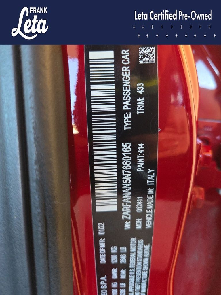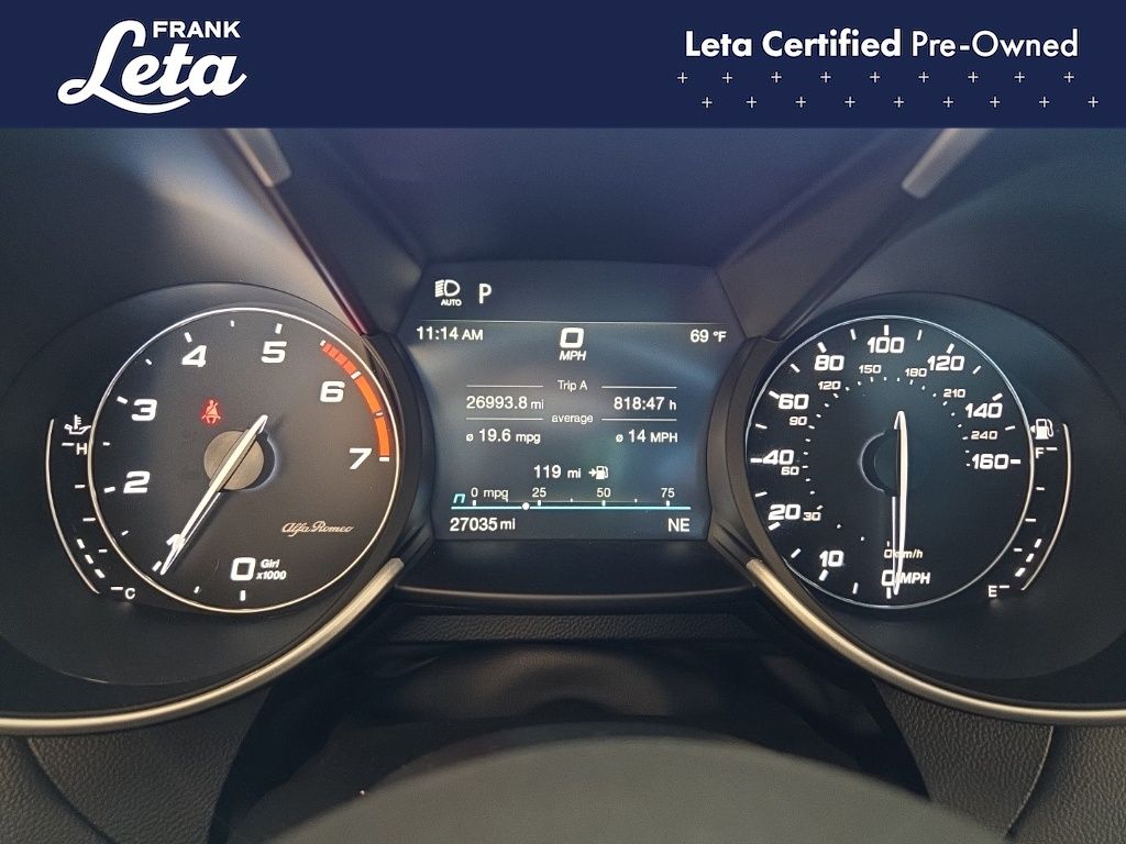 CARFAX One-Owner. 2022 Alfa Romeo Giulia Sprint Alfa Rosso Giulia Sprint, 8-Speed Automatic, AWD, Alfa Rosso, Black Leather, Active Cruise Control, Apple CarPlay/Android Auto, Auto-dimming door mirrors, Auto-dimming Rear-View mirror, Exterior Parking Camera Rear, Front dual zone A/C, Fully automatic headlights, Garage door transmitter, Heated front seats, Heated rear seats, Heated steering wheel, High intensity discharge headlights: Bi-Xenon, Leather Seats, Memory seat, Navigation System, Remote keyless entry, Wheels: 17" x 7.5" Bright 15-Spoke Aluminum. I4 8-Speed Automatic AWD 4D Sedan Odometer is 7663 miles below market average! 23/31 City/Highway MPG