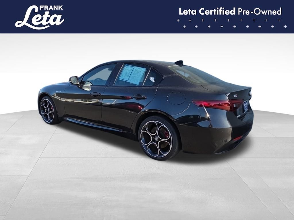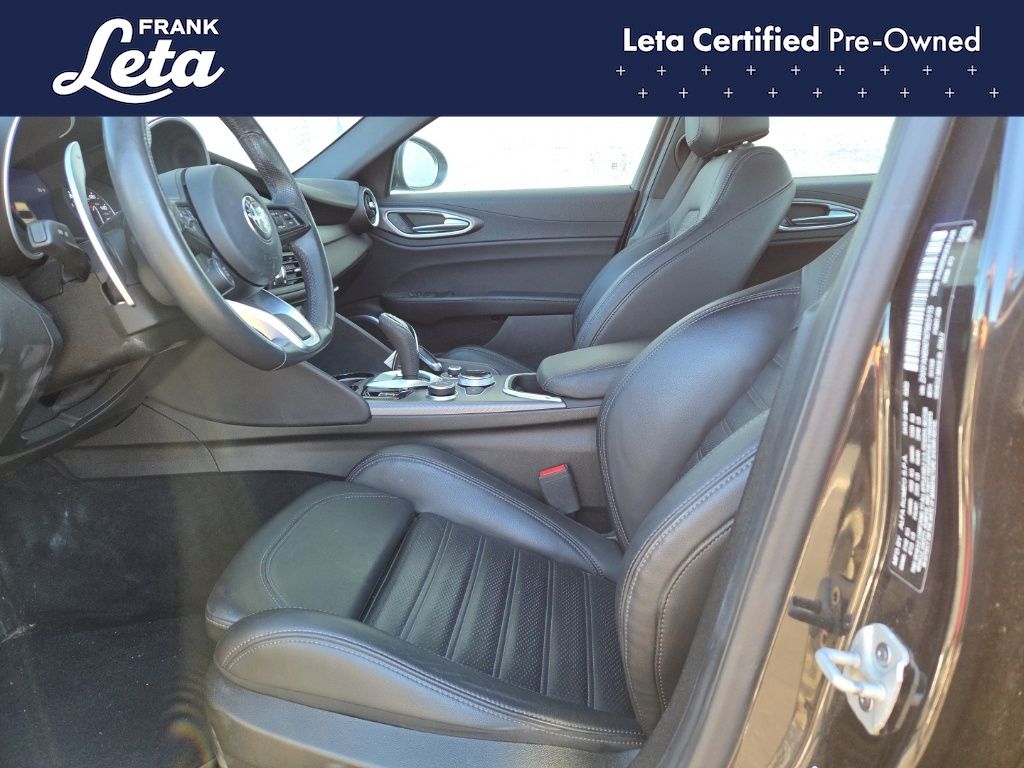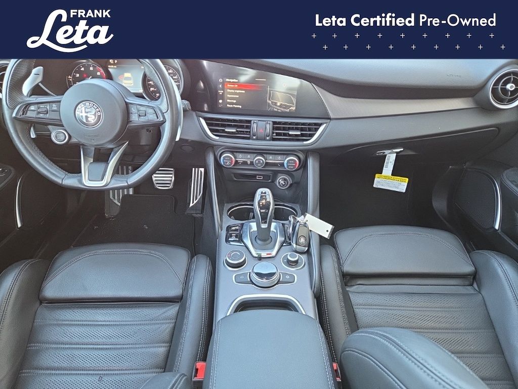 CARFAX One-Owner. 2022 Alfa Romeo Giulia Veloce Vulcano Black Metallic Giulia Veloce Ti, Frank Leta Certified Certified, I4, AWD, Vulcano Black Metallic, Black w/Leather Seats or Sport Leather Seats, Apple CarPlay/Android Auto, Auto-dimming Rear-View mirror, Exterior Parking Camera Rear, Front dual zone A/C, Fully automatic headlights, Garage door transmitter, Heated front seats, Heated rear seats, Heated steering wheel, High intensity discharge headlights: Bi-Xenon, Memory seat, Navigation System, Power moonroof, Sport Leather Seats, Wheels: 19" x 8.0" Sport 5-Hole Aluminum, 4-Wheel Disc Brakes, 8 Speakers, ABS brakes, Air Conditioning, Aluminum Interior Trim, Aluminum Steering Column Mounted Paddle Shifters, AM/FM radio: SiriusXM, Auto High-beam Headlights, Auto-dimming door mirrors, Automatic temperature control, Brake assist, Bumpers: body-color, Compass, Dark Miron V Scudetto Grille, Delay-off headlights, Driver door bin, Driver vanity mirror, Dual front impact airbags, Dual front side impact airbags, Electronic Stability Control, Emergency communication system: SiriusXM Guardian - included trial, Four wheel independent suspension, Front anti-roll bar, Front Bucket Seats, Front Center Armrest, Front reading lights, Genuine wood console insert, Genuine wood dashboard insert, Genuine wood door panel insert, Gloss Black Window Surround Moldings, Gloss Red Calipers w/White Script, Heated door mirrors, Illuminated entry, Knee airbag, Leather Seats, Leather Shift Knob, Leather steering wheel, Limited Slip Differential Rear Axle, Low tire pressure warning, Manual Adjustable Thigh Support, Occupant sensing airbag, Outside temperature display, Overhead airbag, Overhead console, Panic alarm, Passenger door bin, Passenger vanity mirror, Power Adjust 8-Way Driver Seat, Power Adjustable Bolster, Power door mirrors, Power driver seat, Power passenger seat, Power steering, Power windows, Quick Order Package 22S Veloce, Radio data system, Radio: AM/FM/HD 8.8" w/Navigation, Rain sensing wipers, Rear anti-roll bar, Rear fog lights, Rear reading lights, Rear seat center armrest, Rear window defroster, Remote keyless entry, Security system, Speed control, Speed-sensing steering, Speed-Sensitive Wipers, Split folding rear seat, Sport steering wheel, Steering wheel mounted audio controls, Tachometer, Telescoping steering wheel, Tilt steering wheel, Traction control, Trip computer, Turn signal indicator mirrors, Variably intermittent wipers, Veloce Rear Fascia, Giulia Veloce Ti, I4, AWD, Vulcano Black Metallic, Black w/Leather Seats or Sport Leather Seats, Apple CarPlay/Android Auto, Auto-dimming Rear-View mirror, Exterior Parking Camera Rear, Front dual zone A/C, Fully automatic headlights, Garage door transmitter, Heated front seats, Heated rear seats, Heated steering wheel, High intensity discharge headlights: Bi-Xenon, Memory seat, Navigation System, Power moonroof, Sport Leather Seats, Wheels: 19" x 8.0" Sport 5-Hole Aluminum. I4 8-Speed Automatic AWD 4D Sedan Odometer is 9852 miles below market average! 23/31 City/Highway MPG
