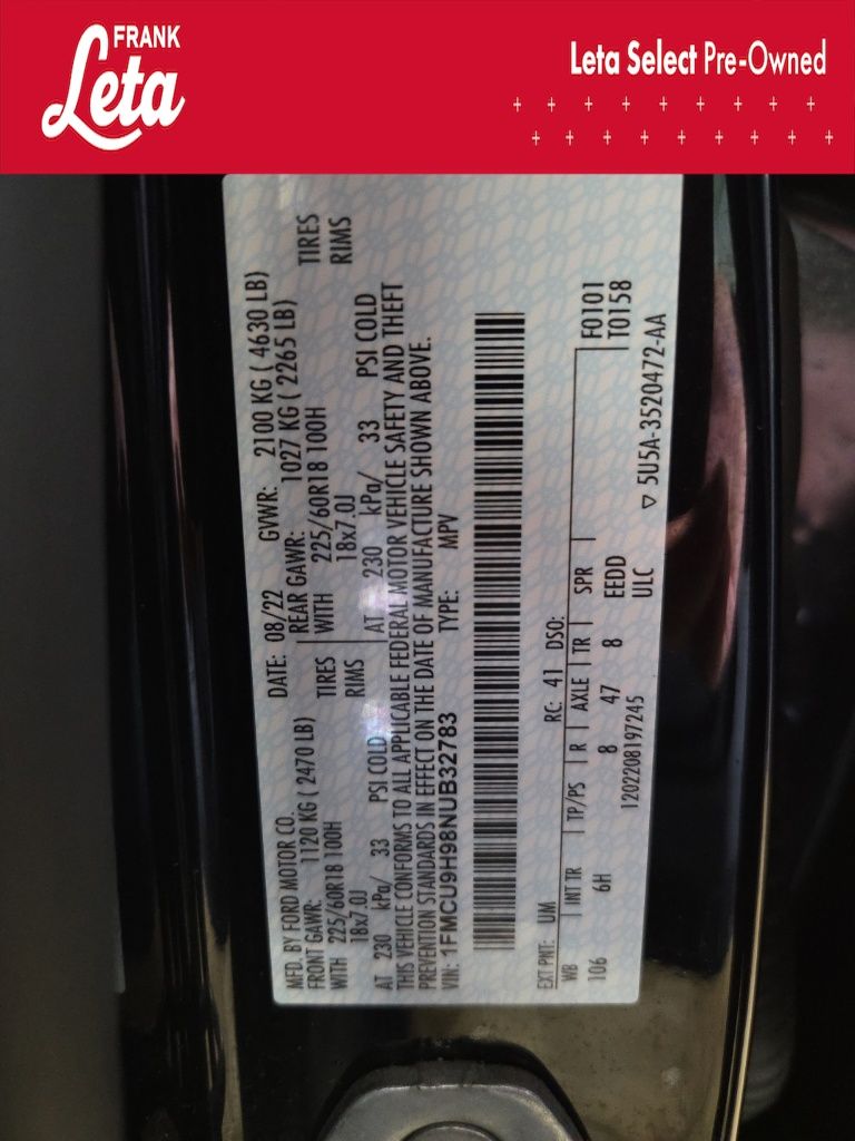 - VIN : 1FMCU9H98NUB32783
