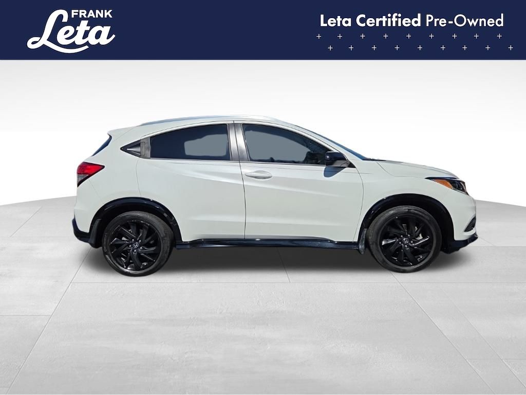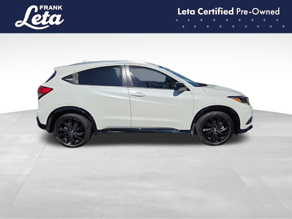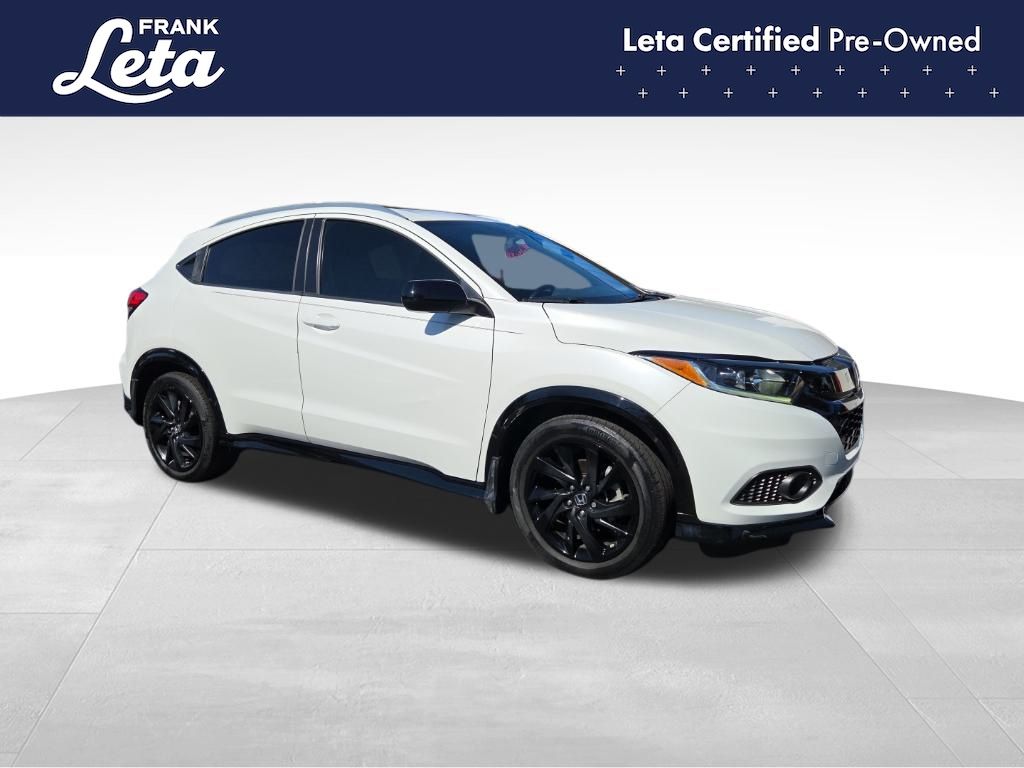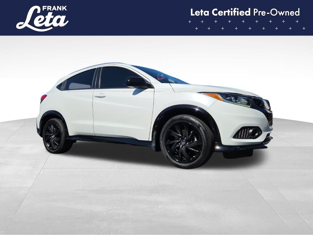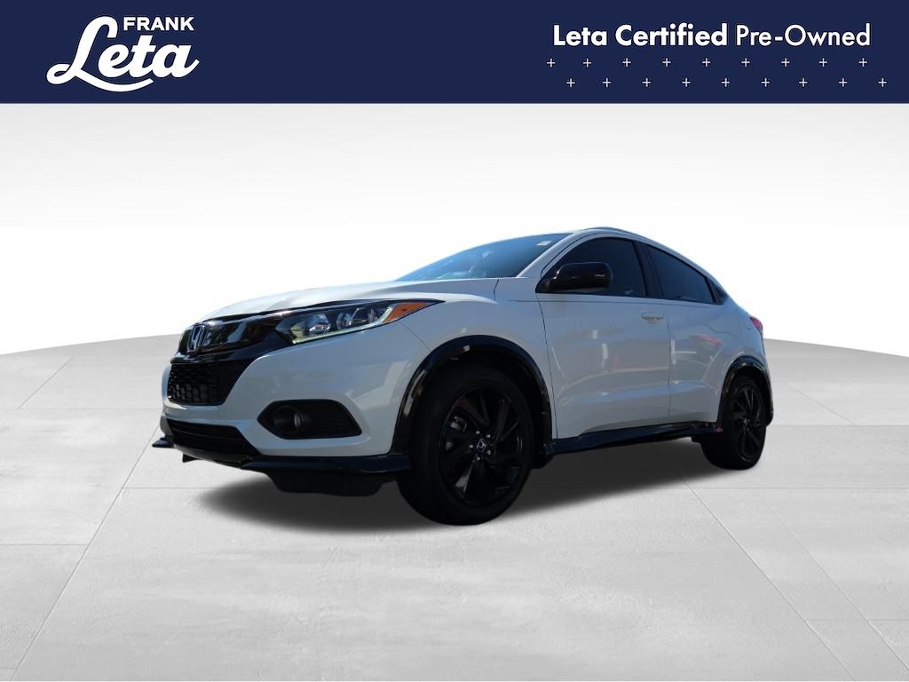 2022 Honda HR-V Sport Platinum White Pearl HR-V Sport, Frank Leta Certified Certified, 4D Sport Utility, 1.8L I4 SOHC 16V i-VTEC, FWD, Platinum White Pearl, Black w/Cloth Seat Trim, Apple CarPlay/Android Auto, Exterior Parking Camera Rear, Front fog lights, Fully automatic headlights, Wheels: 18" Matte-Black Alloy, 4 Speakers, 4-Wheel Disc Brakes, 5.436 Axle Ratio, ABS brakes, Air Conditioning, AM/FM radio, Brake assist, Bumpers: body-color, Cloth Seat Trim, Driver door bin, Driver vanity mirror, Dual front impact airbags, Dual front side impact airbags, Electronic Stability Control, Emergency communication system: HondaLink, Front anti-roll bar, Front Bucket Seats, Front Center Armrest, Front reading lights, Front wheel independent suspension, Illuminated entry, Low tire pressure warning, Occupant sensing airbag, Outside temperature display, Overhead airbag, Panic alarm, Passenger door bin, Passenger vanity mirror, Power door mirrors, Power steering, Power windows, Radio data system, Radio: AM/FM Stereo Audio System (180-Watt), Rear window defroster, Rear window wiper, Remote keyless entry, Roof rack: rails only, Security system, Speed control, Speed-sensing steering, Split folding rear seat, Spoiler, Steering wheel mounted audio controls, Tachometer, Telescoping steering wheel, Tilt steering wheel, Traction control, Trip computer, HR-V Sport, 4D Sport Utility, 1.8L I4 SOHC 16V i-VTEC, FWD, Platinum White Pearl, Black w/Cloth Seat Trim, Apple CarPlay/Android Auto, Exterior Parking Camera Rear, Front fog lights, Fully automatic headlights, Wheels: 18" Matte-Black Alloy. 1.8L I4 SOHC 16V i-VTEC CVT FWD 4D Sport Utility 28/34 City/Highway MPG