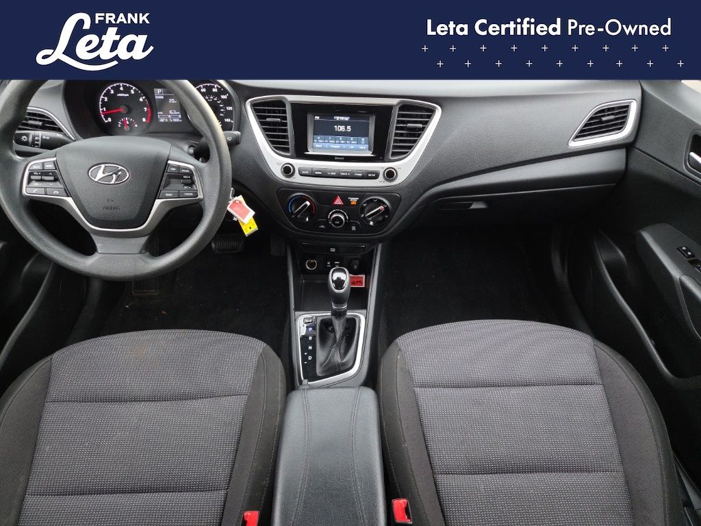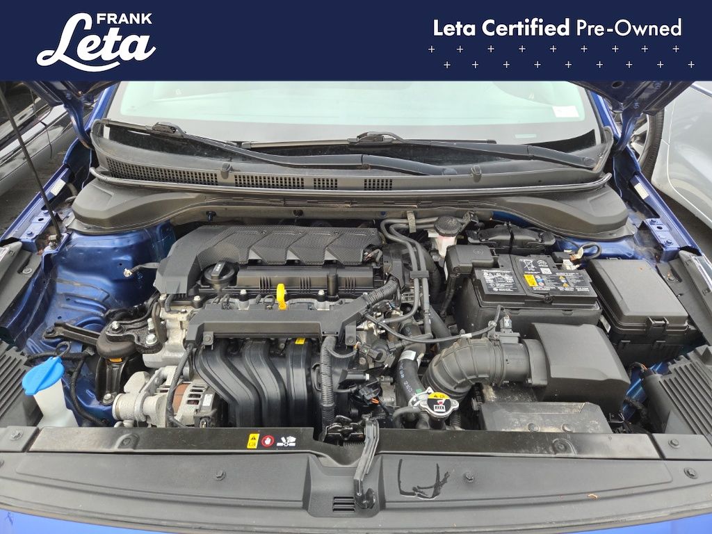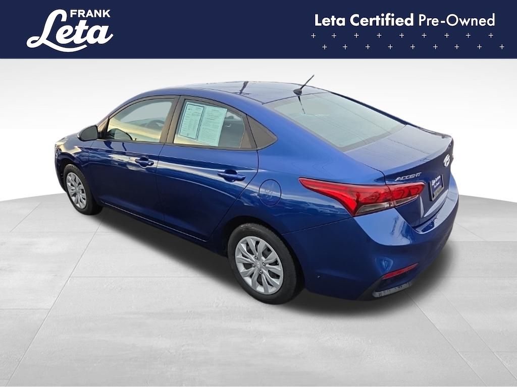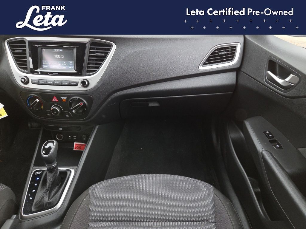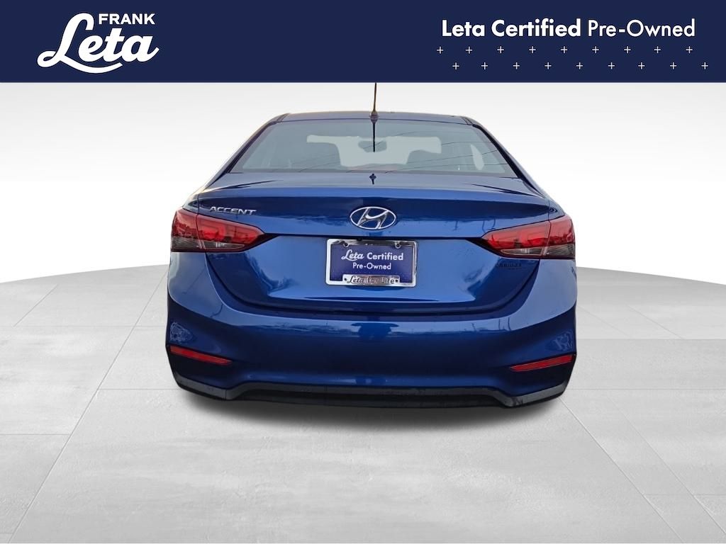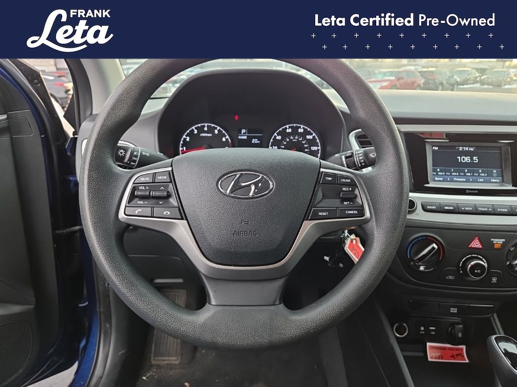 2022 Hyundai Accent SE Admiral Blue Pearl Accent SE, Frank Leta Certified Certified, 1.6L I4 PDI DOHC 16V LEV3-ULEV125 120hp, FWD, Admiral Blue Pearl, Black Cloth, Exterior Parking Camera Rear, 4 Speakers, ABS brakes, Air Conditioning, AM/FM radio, Anti-whiplash front head restraints, Brake assist, Bumpers: body-color, Carpeted Floor Mats, Cloth Seat Trim, Driver door bin, Driver vanity mirror, Dual front impact airbags, Dual front side impact airbags, Dual USB Charger, Electronic Stability Control, Front anti-roll bar, Front Bucket Seats, Front reading lights, Front wheel independent suspension, Illuminated entry, Low tire pressure warning, Occupant sensing airbag, Option Group 01, Outside temperature display, Overhead airbag, Overhead console, Panic alarm, Passenger door bin, Passenger vanity mirror, Power door mirrors, Power steering, Power windows, Radio: Audio 4.0B AM/FM, Rear window defroster, Remote keyless entry, Security system, Speed control, Speed-sensing steering, Split folding rear seat, Steering wheel mounted audio controls, Tachometer, Tilt steering wheel, Traction control, Trip computer, Wheels: 5.5J x 15" Steel w/Covers, Accent SE, 1.6L I4 PDI DOHC 16V LEV3-ULEV125 120hp, FWD, Admiral Blue Pearl, Black Cloth, Exterior Parking Camera Rear. 1.6L I4 PDI DOHC 16V LEV3-ULEV125 120hp CVT FWD 4D Sedan 33/41 City/Highway MPG