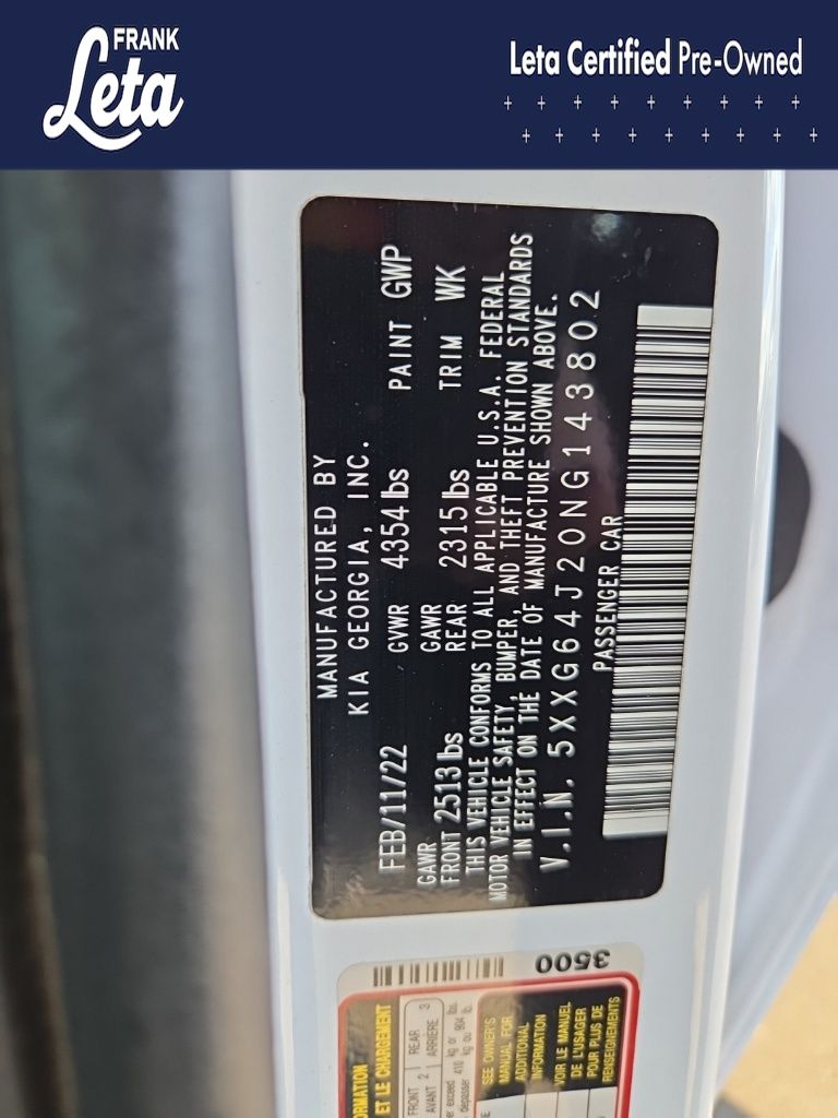- VIN : 5XXG64J20NG143802