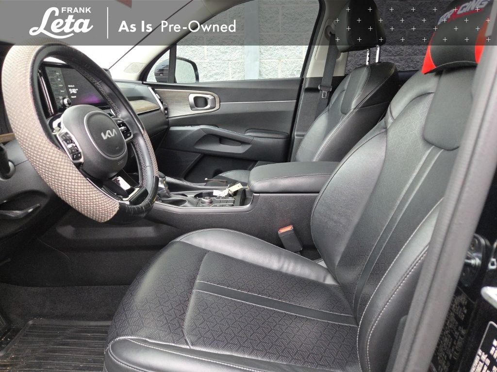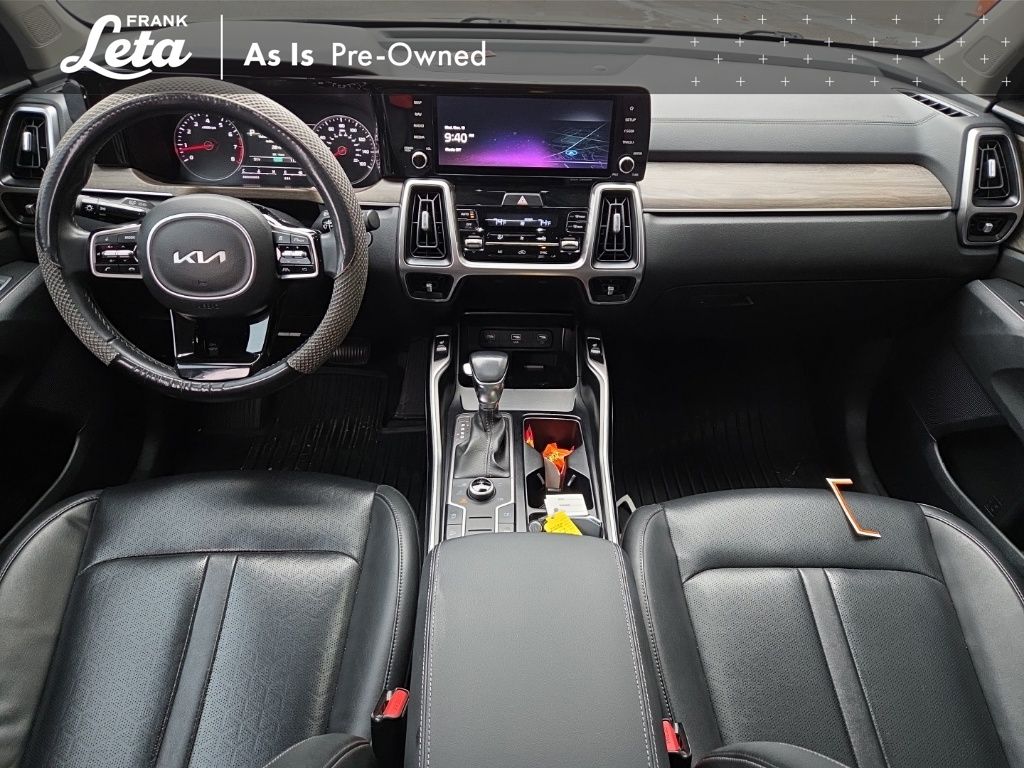 2022 Kia Sorento S Ebony Black Sorento S, 2.5L I4 DGI DOHC 16V LEV3-ULEV70 191hp, AWD, Ebony Black, Black w/SynTex Artificial Leather Seat Trim, 3rd row seats: split-bench, Apple CarPlay & Android Auto, EC Mirror w/HomeLink, Exterior Parking Camera Rear, Front dual zone A/C, Fully automatic headlights, Heated door mirrors, Heated front seats, LED Interior Lighting, Navigation System, Panoramic Sunroof Package, Power Sunroof w/Power Sunshade, Rear air conditioning, Smart Key w/ Push Button and Remote Start, Wheels: 7.5J x 18" Gloss Black Alloy, 4-Wheel Disc Brakes, 4.081 Axle Ratio, 6 Speakers, ABS brakes, Air Conditioning, AM/FM radio: SiriusXM, Auto High-beam Headlights, Automatic temperature control, Brake assist, Bumpers: body-color, Carpeted Floor Mats, Delay-off headlights, Driver door bin, Driver vanity mirror, Dual front impact airbags, Dual front side impact airbags, Electronic Stability Control, Emergency communication system: UVO Link, Four wheel independent suspension, Front anti-roll bar, Front Bucket Seats, Front Center Armrest, Front reading lights, Heated Front Bucket Seats, Illuminated entry, Knee airbag, Leather Shift Knob, Leather steering wheel, Low tire pressure warning, Mudguards, Occupant sensing airbag, Outside temperature display, Overhead airbag, Overhead console, Panic alarm, Passenger door bin, Passenger vanity mirror, Power door mirrors, Power driver seat, Power steering, Power windows, Radio data system, Radio: AM/FM Audio System, Rear anti-roll bar, Rear reading lights, Rear seat center armrest, Rear window defroster, Rear window wiper, Remote keyless entry, Roof rack: rails only, Security system, Speed control, Speed-sensing steering, Split folding rear seat, Spoiler, Steering wheel mounted audio controls, SynTex Artificial Leather Seat Trim, Tachometer, Telescoping steering wheel, Tilt steering wheel, Traction control, Trip computer, Turn signal indicator mirrors, Variably intermittent wipers, Sorento S, 2.5L I4 DGI DOHC 16V LEV3-ULEV70 191hp, AWD, Ebony Black, Black w/SynTex Artificial Leather Seat Trim, 3rd row seats: split-bench, Apple CarPlay & Android Auto, EC Mirror w/HomeLink, Exterior Parking Camera Rear, Front dual zone A/C, Fully automatic headlights, Heated door mirrors, Heated front seats, LED Interior Lighting, Navigation System, Panoramic Sunroof Package, Power Sunroof w/Power Sunshade, Rear air conditioning, Smart Key w/ Push Button and Remote Start, Wheels: 7.5J x 18" Gloss Black Alloy. 2.5L I4 DGI DOHC 16V LEV3-ULEV70 191hp 8-Speed Automatic AWD 4D Sport Utility