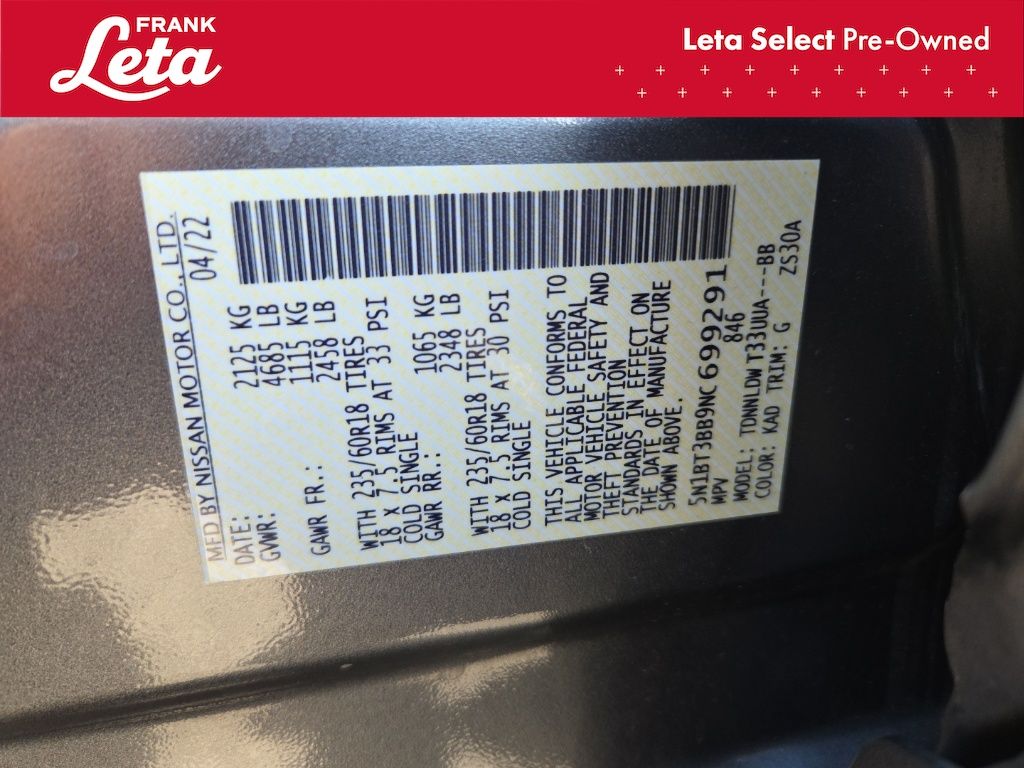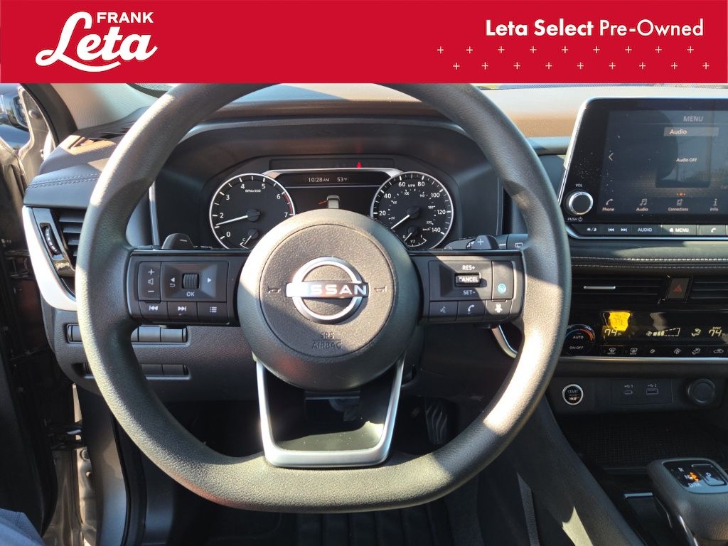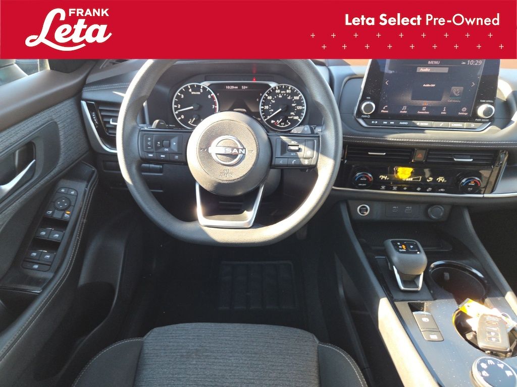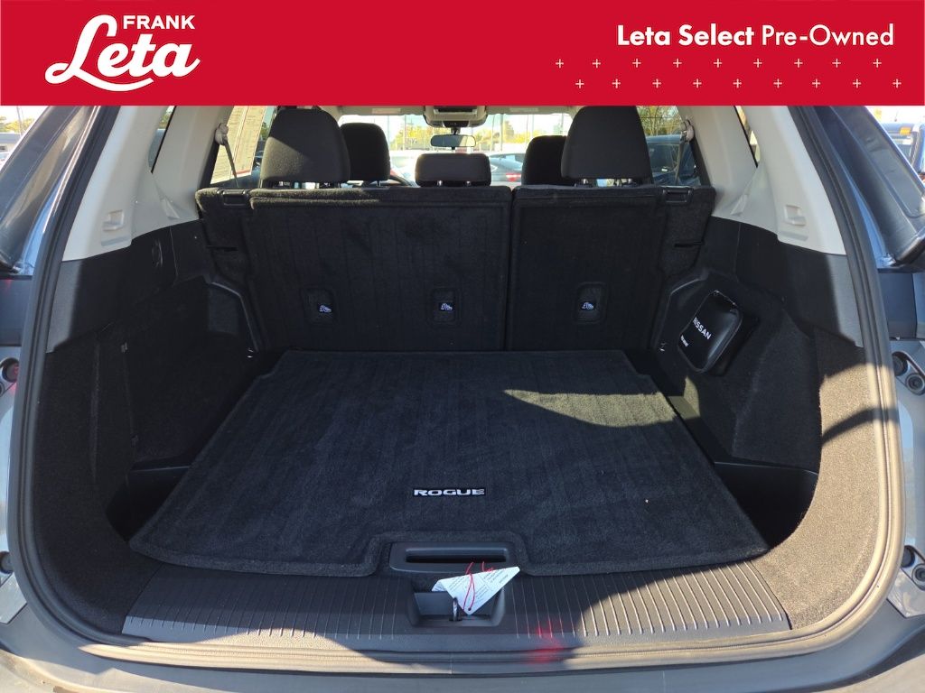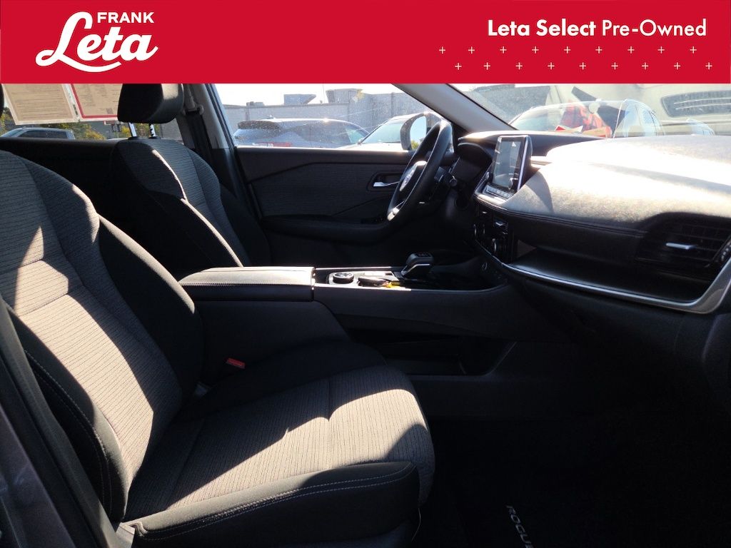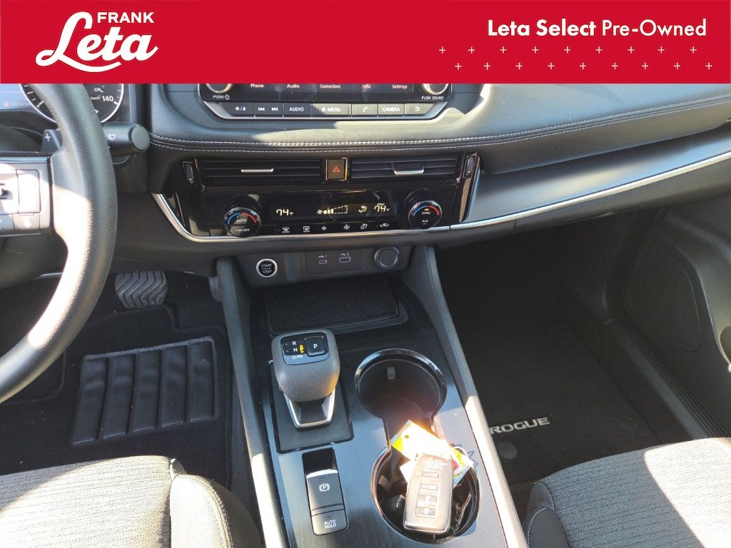 CARFAX One-Owner. 2022 Nissan Rogue SV Gun Metallic Rogue SV, Frank Leta Select Certified, 1.5L I3 Turbocharged DOHC 12V LEV3-ULEV50 201hp, AWD, Gun Metallic, 18" Aluminum Alloy Wheels, Front dual zone A/C, Fully automatic headlights, NissanConnect featuring Apple CarPlay and Android Auto, Rear Parking Sensors, 4-Wheel Disc Brakes, 5.604 Axle Ratio, 6 Speakers, ABS brakes, Air Conditioning, AM/FM Radio, AM/FM radio: SiriusXM, Auto High-beam Headlights, Automatic temperature control, Brake assist, Bumpers: body-color, Chrome Rear Bumper Protector, Cloth Seat Trim, Delay-off headlights, Driver door bin, Driver vanity mirror, Dual front impact airbags, Dual front side impact airbags, Electronic Stability Control, Emergency communication system: NissanConnect Services, First Aid Kit, Floor Mats w/1-Piece Cargo Area Protector, Four wheel independent suspension, Front anti-roll bar, Front Bucket Seats, Front Center Armrest, Front reading lights, Heated door mirrors, Illuminated entry, Knee airbag, Low tire pressure warning, Occupant sensing airbag, Outside temperature display, Overhead airbag, Overhead console, Panic alarm, Passenger door bin, Passenger vanity mirror, Power door mirrors, Power driver seat, Power steering, Power windows, Radio data system, Rear anti-roll bar, Rear seat center armrest, Rear side impact airbag, Rear window defroster, Rear window wiper, Remote keyless entry, Security system, Speed control, Speed-Sensitive Wipers, Split folding rear seat, Spoiler, Steering wheel mounted audio controls, Tachometer, Telescoping steering wheel, Tilt steering wheel, Traction control, Trip computer, Turn signal indicator mirrors, Variably intermittent wipers, Rogue SV, 1.5L I3 Turbocharged DOHC 12V LEV3-ULEV50 201hp, AWD, Gun Metallic, 18" Aluminum Alloy Wheels, Front dual zone A/C, Fully automatic headlights, NissanConnect featuring Apple CarPlay and Android Auto, Rear Parking Sensors. 1.5L I3 Turbocharged DOHC 12V LEV3-ULEV50 201hp CVT with Xtronic AWD 4D Sport Utility 28/35 City/Highway MPG