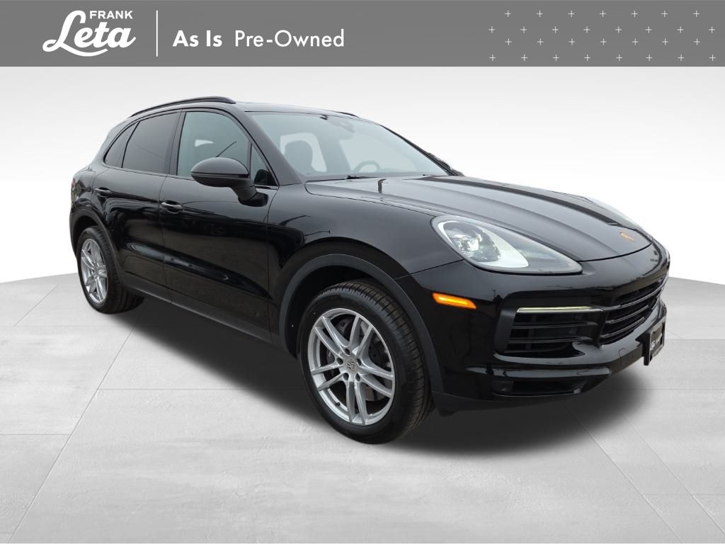 CARFAX One-Owner. 2022 Porsche Cayenne Jet Black Metallic Frank Leta Certified Certified, 3.0L V6, 8-Speed Automatic with Tiptronic, AWD, Jet Black Metallic, Black w/Leather Seat Trim, 10 Speakers, Apple CarPlay, Exterior Parking Camera Rear, Front Seat Ventilation, Fully automatic headlights, Garage door transmitter: HomeLink, Heated Front Seats, Navigation System, Power Liftgate, Wheels: 20" Cayenne Design, 4-Wheel Disc Brakes, 8-Way Power Seats, ABS brakes, Adaptive suspension, Air Conditioning, AM/FM radio: SiriusXM, Automatic temperature control, Axle Ratio: 3.480, Brake assist, Bumpers: body-color, Delay-off headlights, Driver door bin, Driver vanity mirror, Dual front impact airbags, Dual front side impact airbags, Electronic Stability Control, Four wheel independent suspension, Front and Rear Seat Base in Leather, Front anti-roll bar, Front Bucket Seats, Front Center Armrest, Front dual zone A/C, Front reading lights, Heated door mirrors, Illuminated entry, Knee airbag, Leather Seat Trim, Leather Shift Knob, Low tire pressure warning, Occupant sensing airbag, Outside temperature display, Overhead airbag, Overhead console, Panic alarm, Passenger door bin, Passenger vanity mirror, Porsche Communication Management, Power door mirrors, Power driver seat, Power passenger seat, Power steering, Power windows, Radio data system, Rain sensing wipers, Rear anti-roll bar, Rear fog lights, Rear reading lights, Rear seat center armrest, Rear side impact airbag, Rear window defroster, Rear window wiper, Remote keyless entry, Security system, Speed control, Split folding rear seat, Spoiler, Steering wheel mounted audio controls, Tachometer, Telescoping steering wheel, Tilt steering wheel, Traction control, Trip computer, Turn signal indicator mirrors, Variably intermittent wipers, Voltmeter, 3.0L V6, 8-Speed Automatic with Tiptronic, AWD, Jet Black Metallic, Black w/Leather Seat Trim, 10 Speakers, Apple CarPlay, Exterior Parking Camera Rear, Front Seat Ventilation, Fully automatic headlights, Garage door transmitter: HomeLink, Heated Front Seats, Navigation System, Power Liftgate, Wheels: 20" Cayenne Design. 3.0L V6 8-Speed Automatic with Tiptronic AWD 4D Sport Utility