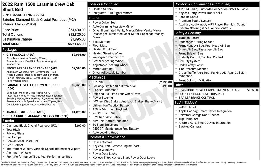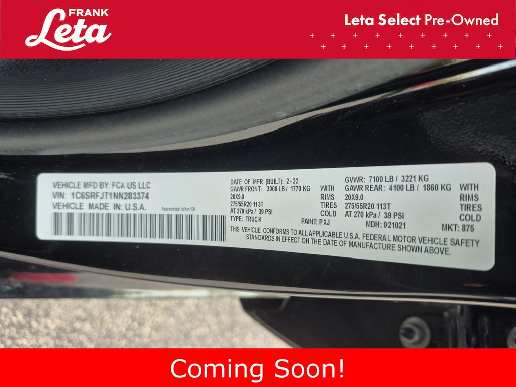 - VIN : 1C6SRFJT1NN283374