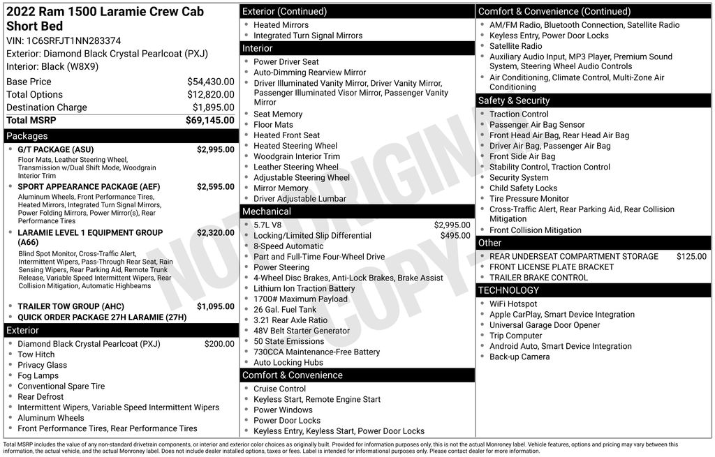 Whether you're looking for a capable work truck or a premium daily driver, this 2022 Ram 1500 Laramie has everything you need and more. Schedule a test drive today and experience the power and luxury of this impressive pickup.