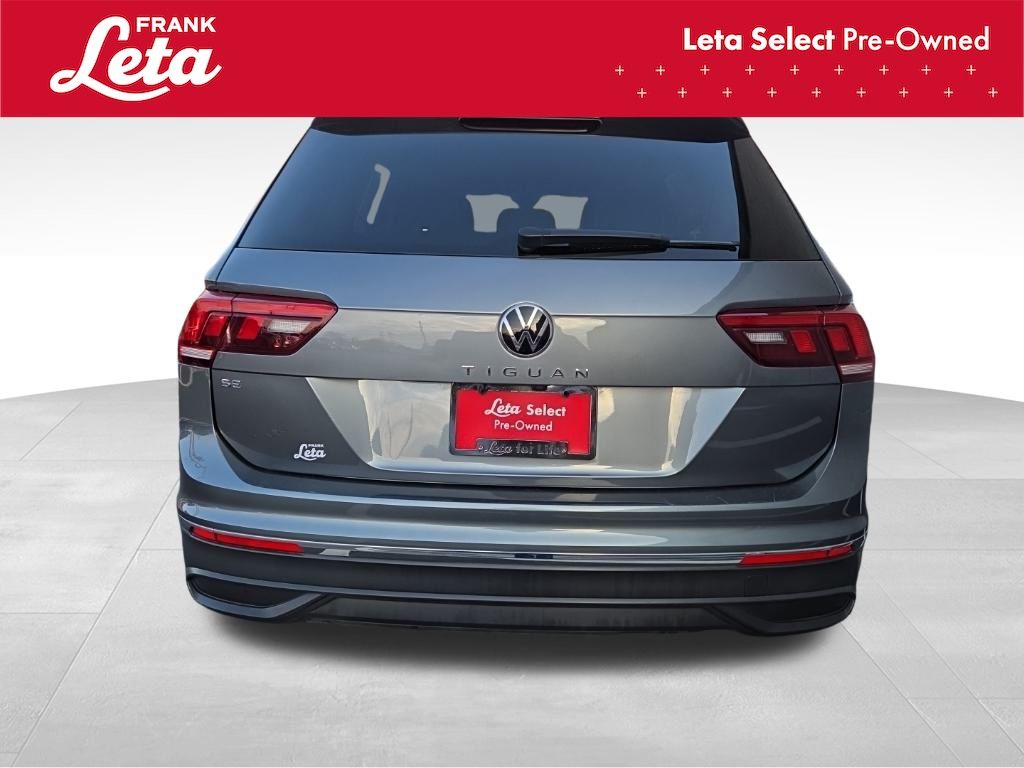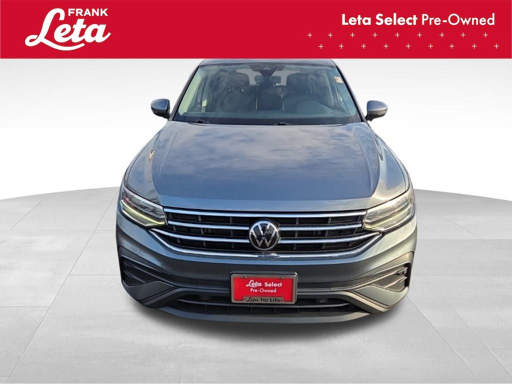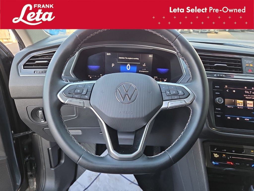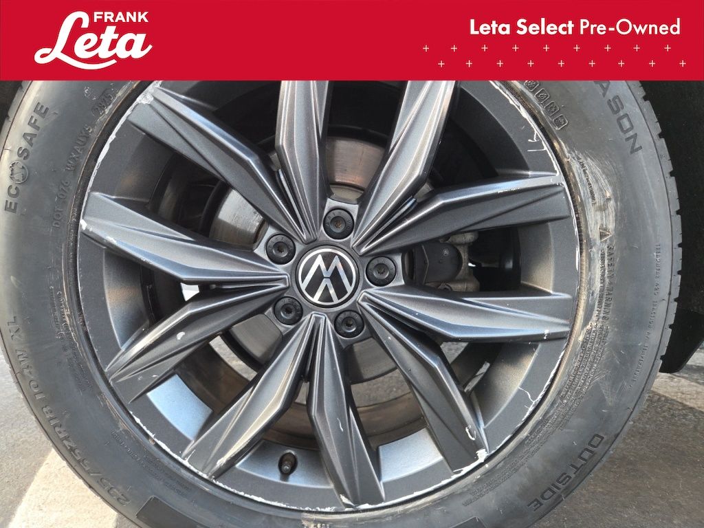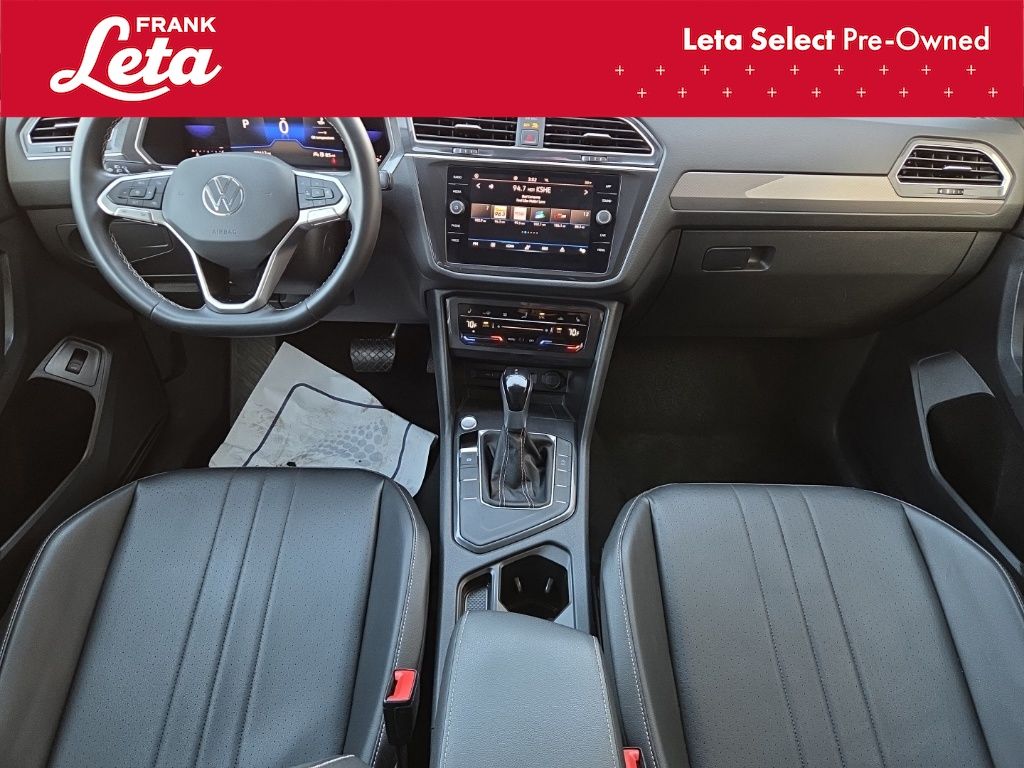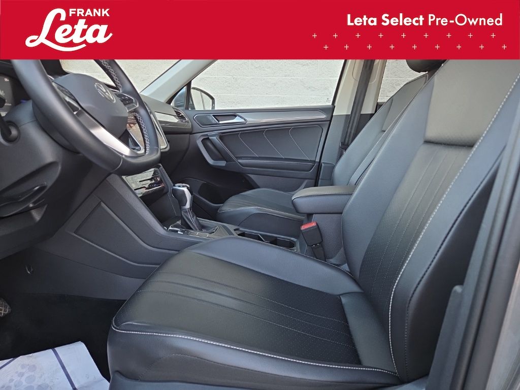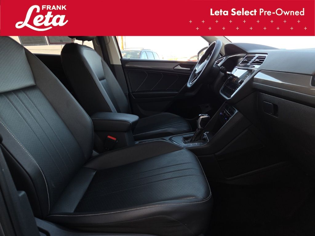 CARFAX One-Owner. 2022 Volkswagen Tiguan 2.0T SE Platinum Gray Metallic Tiguan 2.0T SE, Frank Leta Select Certified, Platinum Gray Metallic, Titan Black w/Perforated V-Tex Leatherette Seating Surfaces, Auto-dimming Rear-View mirror, Exterior Parking Camera Rear, Fully automatic headlights, Heated front seats, Power Liftgate, Wheels: 18" Dark Graphite 10-Spoke Alloy, 3.33 Axle Ratio, 3rd row seats: bench, 4-Wheel Disc Brakes, 4-Wheel Independent Suspension, 6 Speakers, ABS brakes, Air Conditioning, AM/FM radio: SiriusXM with 360L, Automatic temperature control, Brake assist, Bumpers: body-color, Compass, Delay-off headlights, Driver door bin, Driver vanity mirror, Dual front impact airbags, Dual front side impact airbags, Electronic Stability Control, Emergency communication system: Car-Net, Four wheel independent suspension, Front anti-roll bar, Front Bucket Seats, Front Center Armrest, Front dual zone A/C, Front reading lights, Heated door mirrors, Heated Front Comfort Seats, Illuminated entry, Leather Shift Knob, Low tire pressure warning, Occupant sensing airbag, Outside temperature display, Overhead airbag, Overhead console, Panic alarm, Passenger door bin, Passenger vanity mirror, Perforated V-Tex Leatherette Seating Surfaces, Power door mirrors, Power driver seat, Power steering, Power windows, Radio data system, Radio: MIB3 Composition Media AM/FM/HD, Rain sensing wipers, Rear anti-roll bar, Rear reading lights, Rear seat center armrest, Rear window defroster, Rear window wiper, Remote keyless entry, Roof rack: rails only, Security system, Speed control, Speed-sensing steering, Split folding rear seat, Spoiler, Steering wheel mounted audio controls, Tachometer, Telescoping steering wheel, Tilt steering wheel, Traction control, Trip computer, Turn signal indicator mirrors, Variably intermittent wipers, Tiguan 2.0T SE, Platinum Gray Metallic, Titan Black w/Perforated V-Tex Leatherette Seating Surfaces, Auto-dimming Rear-View mirror, Exterior Parking Camera Rear, Fully automatic headlights, Heated front seats, Power Liftgate, Wheels: 18" Dark Graphite 10-Spoke Alloy. 2.0L TSI DOHC 8-Speed Automatic with Tiptronic FWD 4D Sport Utility 23/30 City/Highway MPG