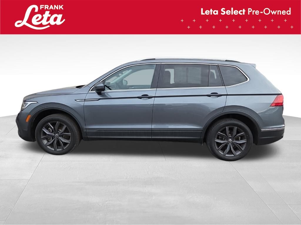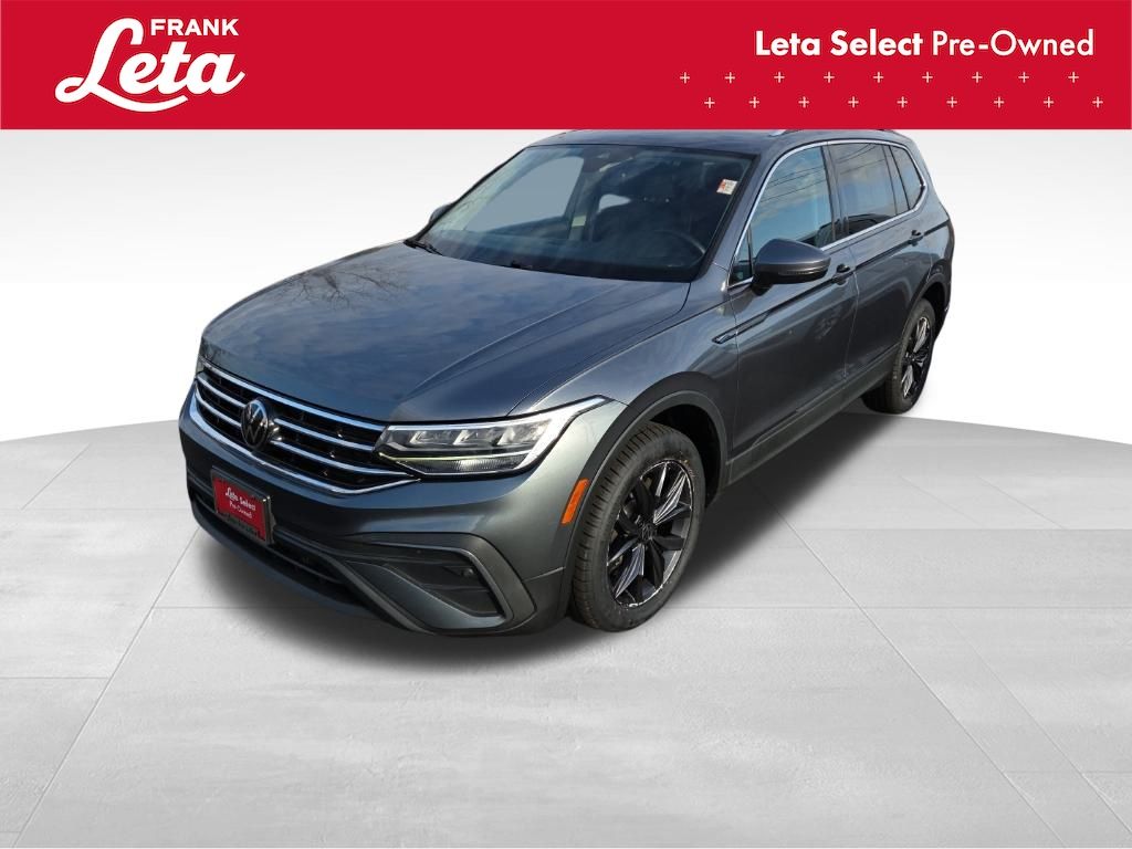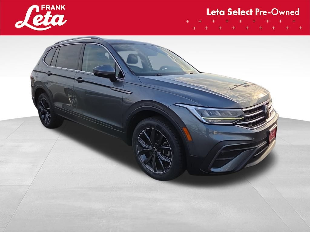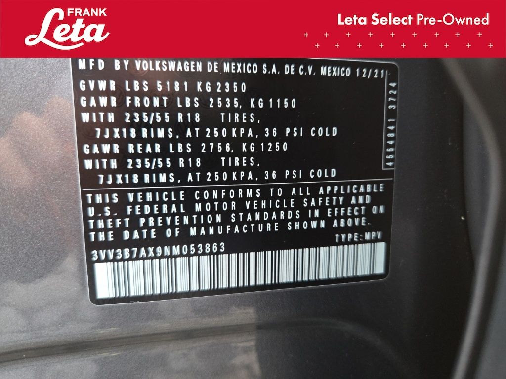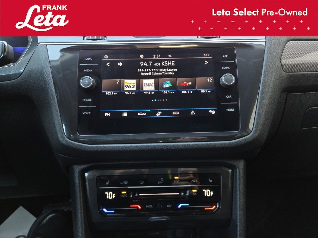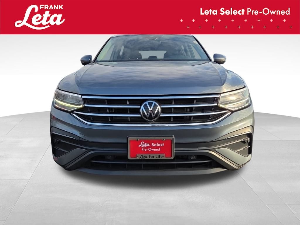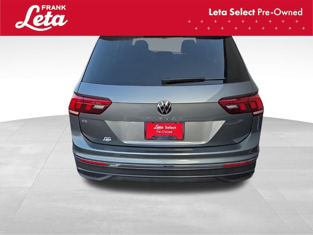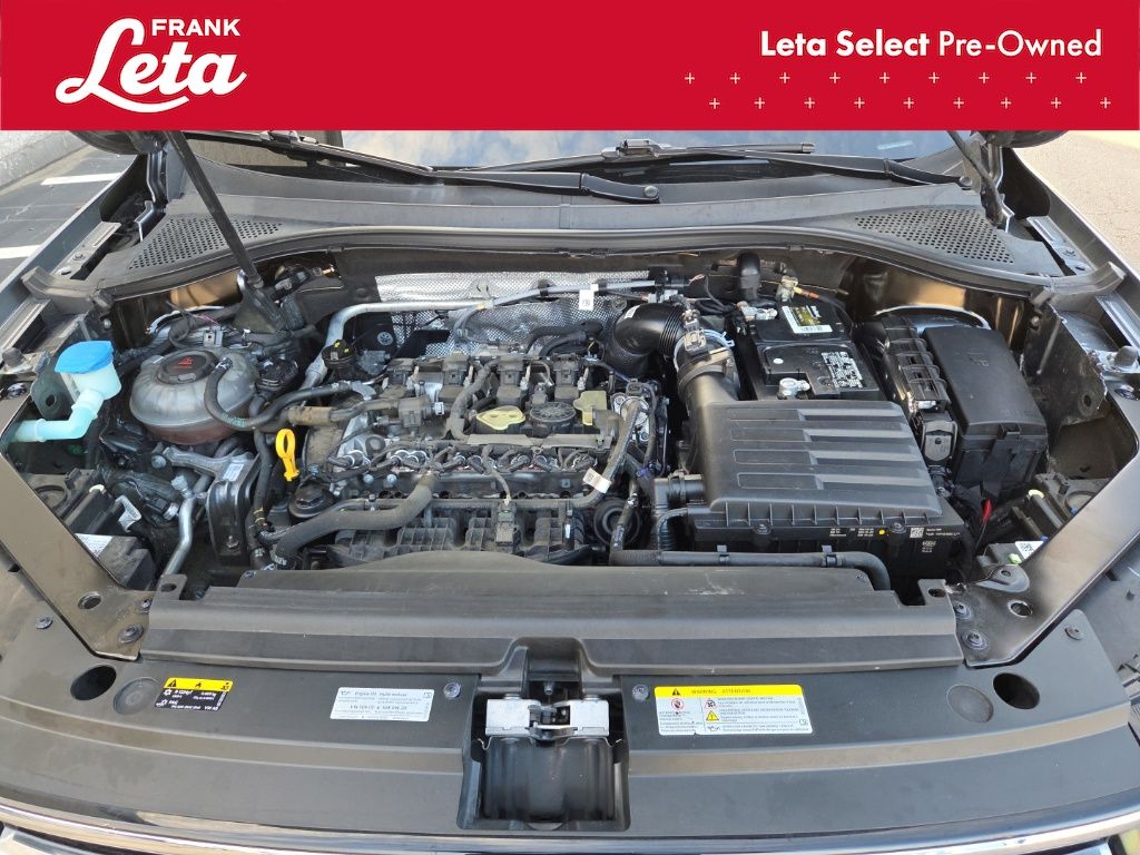 CARFAX One-Owner. 2022 Volkswagen Tiguan 2.0T SE Platinum Gray Metallic Tiguan 2.0T SE, Frank Leta Select Certified, Platinum Gray Metallic, Titan Black w/Perforated V-Tex Leatherette Seating Surfaces, Auto-dimming Rear-View mirror, Exterior Parking Camera Rear, Fully automatic headlights, Heated front seats, Power Liftgate, Wheels: 18" Dark Graphite 10-Spoke Alloy, 3.33 Axle Ratio, 3rd row seats: bench, 4-Wheel Disc Brakes, 4-Wheel Independent Suspension, 6 Speakers, ABS brakes, Air Conditioning, AM/FM radio: SiriusXM with 360L, Automatic temperature control, Brake assist, Bumpers: body-color, Compass, Delay-off headlights, Driver door bin, Driver vanity mirror, Dual front impact airbags, Dual front side impact airbags, Electronic Stability Control, Emergency communication system: Car-Net, Four wheel independent suspension, Front anti-roll bar, Front Bucket Seats, Front Center Armrest, Front dual zone A/C, Front reading lights, Heated door mirrors, Heated Front Comfort Seats, Illuminated entry, Leather Shift Knob, Low tire pressure warning, Occupant sensing airbag, Outside temperature display, Overhead airbag, Overhead console, Panic alarm, Passenger door bin, Passenger vanity mirror, Perforated V-Tex Leatherette Seating Surfaces, Power door mirrors, Power driver seat, Power steering, Power windows, Radio data system, Radio: MIB3 Composition Media AM/FM/HD, Rain sensing wipers, Rear anti-roll bar, Rear reading lights, Rear seat center armrest, Rear window defroster, Rear window wiper, Remote keyless entry, Roof rack: rails only, Security system, Speed control, Speed-sensing steering, Split folding rear seat, Spoiler, Steering wheel mounted audio controls, Tachometer, Telescoping steering wheel, Tilt steering wheel, Traction control, Trip computer, Turn signal indicator mirrors, Variably intermittent wipers, Tiguan 2.0T SE, Platinum Gray Metallic, Titan Black w/Perforated V-Tex Leatherette Seating Surfaces, Auto-dimming Rear-View mirror, Exterior Parking Camera Rear, Fully automatic headlights, Heated front seats, Power Liftgate, Wheels: 18" Dark Graphite 10-Spoke Alloy. 2.0L TSI DOHC 8-Speed Automatic with Tiptronic FWD 4D Sport Utility 23/30 City/Highway MPG