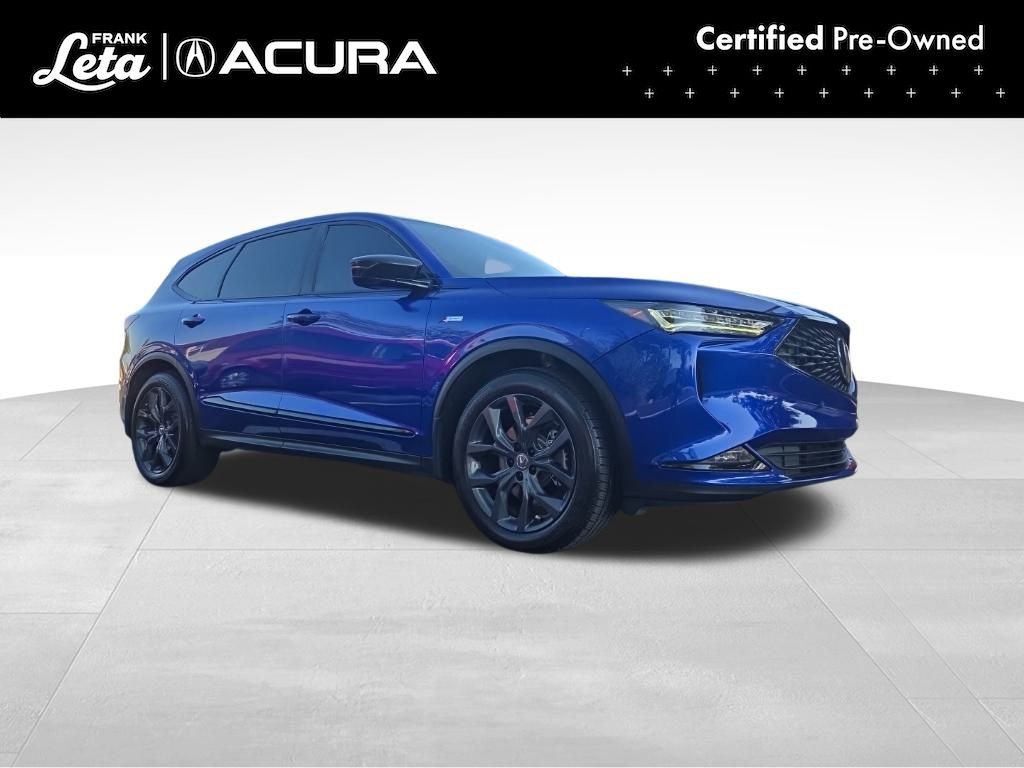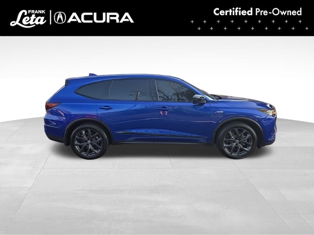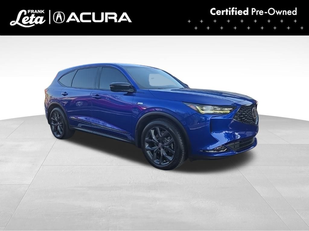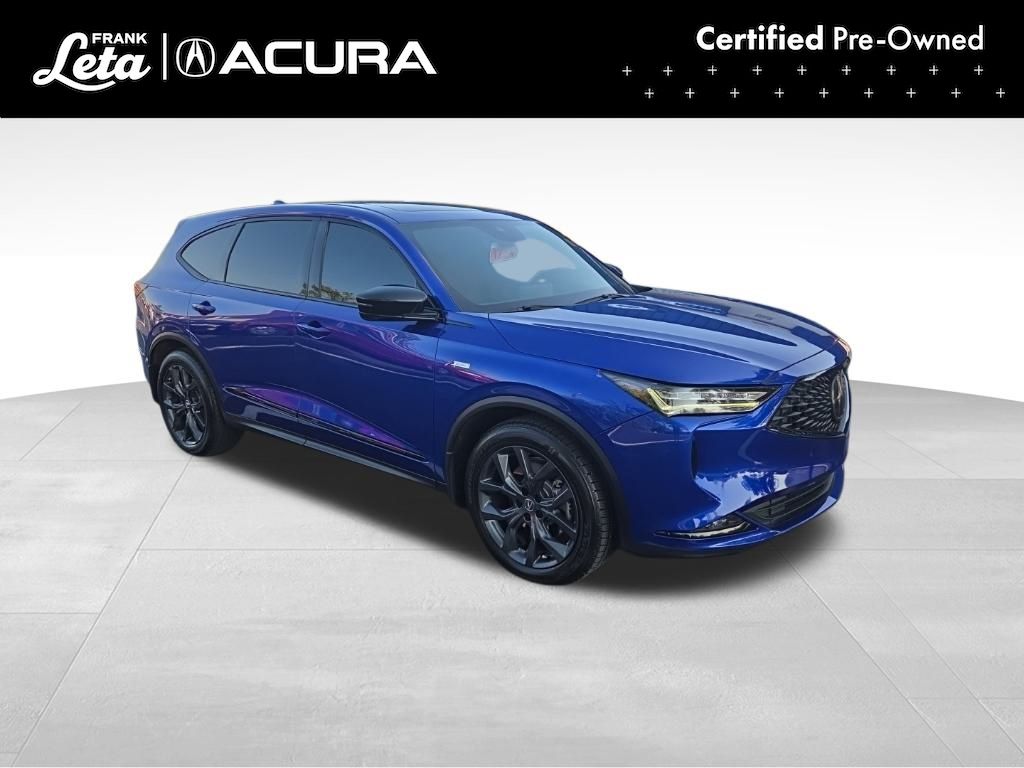 CARFAX One-Owner. 2023 Acura MDX A-Spec SH-AWD Apex Blue Pearl MDX A-Spec SH-AWD, Precision Certified Certified, 3.5L V6 SOHC i-VTEC 24V, AWD, Apex Blue Pearl, Ebony w/Perforated Premium Milano Leather Trimmed Seats, 16 Speakers, 3rd row seats: split-bench, Apple CarPlay/Android Auto, Auto tilt-away steering wheel, Auto-dimming Rear-View mirror, Exterior Parking Camera Rear, Front dual zone A/C, Front fog lights, Fully automatic headlights, Garage door transmitter: HomeLink, Heated & Ventilated Front Sport Seats, Heated front seats, Lane departure: Lane Keeping Assist System (LKAS) active, Memory seat, Navigation system: Acura Navigation System with 3D View, Power Liftgate, Power moonroof, Radio: ELS Studio 3D Premium Audio System, Rear air conditioning, Ventilated front seats, Wheels: 20" x 9" Aluminum Alloy, 4-Wheel Disc Brakes, 4.17 Axle Ratio, A/V remote: CabinControl, ABS brakes, Air Conditioning, AM/FM radio: SiriusXM, Anti-whiplash front head restraints, Audio memory, Auto High-beam Headlights, Automatic temperature control, Brake assist, Bumpers: body-color, Compass, Delay-off headlights, Driver door bin, Driver vanity mirror, Dual front impact airbags, Dual front side impact airbags, Electronic Stability Control, Emergency communication system: AcuraLink, Four wheel independent suspension, Front anti-roll bar, Front Bucket Seats, Front Center Armrest, Front reading lights, Heated door mirrors, HVAC memory, Illuminated entry, Knee airbag, Leather steering wheel, Low tire pressure warning, Occupant sensing airbag, Outside temperature display, Overhead airbag, Overhead console, Panic alarm, Passenger door bin, Passenger vanity mirror, Perforated Premium Milano Leather Trimmed Seats, Power door mirrors, Power driver seat, Power passenger seat, Power steering, Power windows, Premium audio system: Acura/ELS Studio 3D, Radio data system, Rain sensing wipers, Rear anti-roll bar, Rear reading lights, Rear seat center armrest, Rear window defroster, Rear window wiper, Remote keyless entry, Security system, Speed control, Speed-sensing steering, Speed-Sensitive Wipers, Split folding rear seat, Spoiler, Sport steering wheel, Steering wheel memory, Steering wheel mounted audio controls, Tachometer, Telescoping steering wheel, Tilt steering wheel, Traction control, Trip computer, Turn signal indicator mirrors, Variably intermittent wipers, MDX A-Spec SH-AWD, 3.5L V6 SOHC i-VTEC 24V, AWD, Apex Blue Pearl, Ebony w/Perforated Premium Milano Leather Trimmed Seats, 16 Speakers, 3rd row seats: split-bench, Apple CarPlay/Android Auto, Auto tilt-away steering wheel, Auto-dimming Rear-View mirror, Exterior Parking Camera Rear, Front dual zone A/C, Front fog lights, Fully automatic headlights, Garage door transmitter: HomeLink, Heated & Ventilated Front Sport Seats, Heated front seats, Lane departure: Lane Keeping Assist System (LKAS) active, Memory seat, Navigation system: Acura Navigation System with 3D View, Power Liftgate, Power moonroof, Radio: ELS Studio 3D Premium Audio System, Rear air conditioning, Ventilated front seats, Wheels: 20" x 9" Aluminum Alloy. 3.5L V6 SOHC i-VTEC 24V 10-Speed Automatic AWD 4D Sport Utility