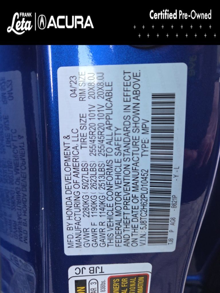 - VIN : 5J8TC2H62PL010452