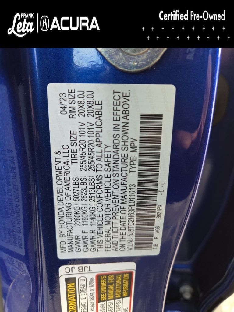 - VIN : 5J8TC2H63PL011013