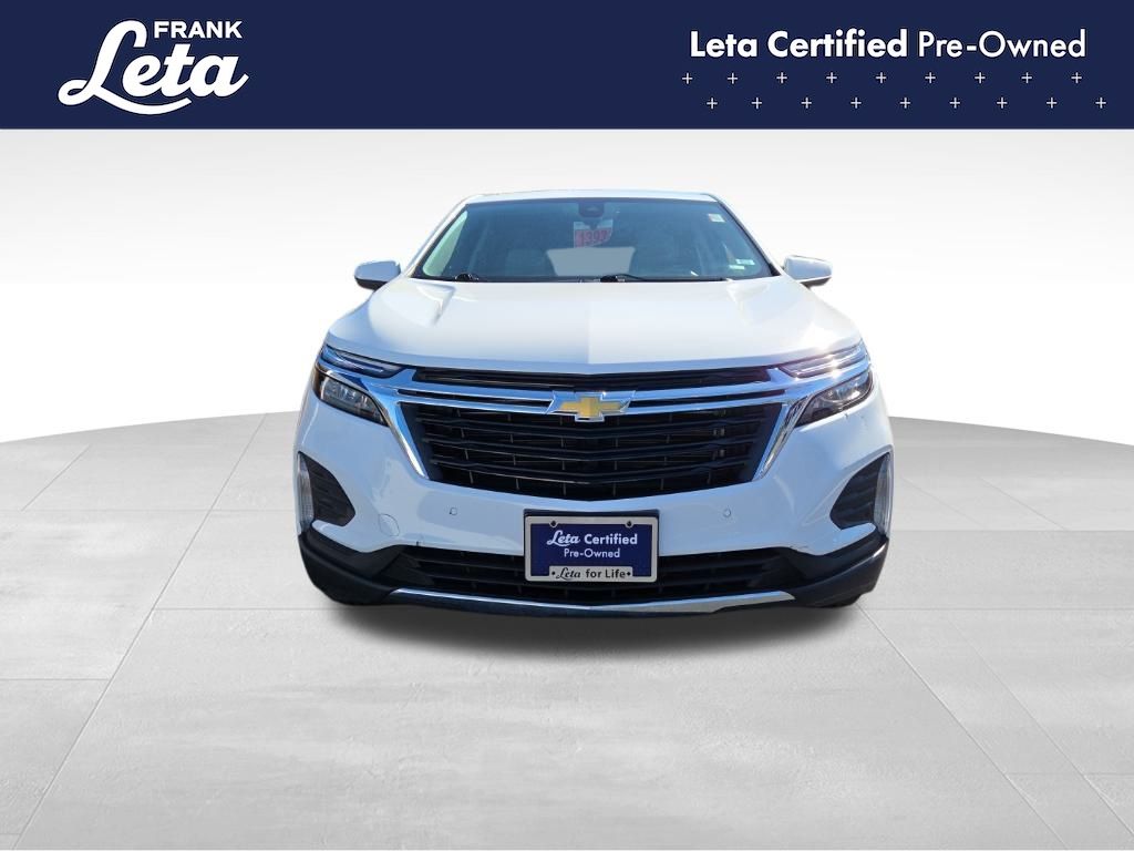 CARFAX One-Owner. 2023 Chevrolet Equinox LT Summit White Frank Leta Certified Certified, AWD, 17" Aluminum Wheels, 2 Rear USB Charging-Only Ports, 2 USB Ports & Auxiliary Input Jack, 2-Way Power Driver Lumbar Control Seat Adjuster, 3.87 Final Drive Axle Ratio, 4-Wheel Disc Brakes, 6 Speakers, 6-Speaker Audio System Feature, ABS brakes, Air Conditioning, Alloy wheels, AM/FM radio: SiriusXM, Auto High-beam Headlights, Bluetooth For Phone, Brake assist, Bumpers: body-color, Cold Air Grille Shutter, Compass, Confidence & Convenience Package, Delay-off headlights, Deleted 3 Years of Remote Access, Driver 8-Way Power Seat Adjuster, Driver Confidence II Package, Driver Convenience Package, Driver door bin, Driver vanity mirror, Dual front impact airbags, Dual front side impact airbags, Dual-Zone Automatic Climate Control, Electronic Stability Control, Emergency communication system: OnStar and Chevrolet connected services capable, Four wheel independent suspension, Front & Rear Park Assist, Front anti-roll bar, Front Bucket Seats, Front Center Armrest, Front Passenger 4-Way Manual Seat Adjuster, Front reading lights, Fully automatic headlights, Heated door mirrors, Heated Driver & Front Passenger Seats, Illuminated entry, Lane Change Alert w/Side Blind Zone Alert, Low tire pressure warning, Occupant sensing airbag, Outside temperature display, Overhead airbag, Overhead console, Panic alarm, Passenger door bin, Passenger vanity mirror, Power door mirrors, Power driver seat, Power steering, Power windows, Preferred Equipment Group 1LT, Premium audio system: Chevrolet Infotainment 3, Premium Cloth Seat Trim, Radio data system, Radio: Chevrolet Infotainment 3 System w/AM/FM, Rear anti-roll bar, Rear Cross Traffic Alert, Rear Power Liftgate, Rear reading lights, Rear seat center armrest, Rear window defroster, Rear window wiper, Remote keyless entry, Remote Start, Security system, Side Blind Zone & Rear Cross Traffic, SiriusXM Radio, Speed control, Speed-sensing steering, Split folding rear seat, Spoiler, Steering wheel mounted audio controls, Tachometer, Telescoping steering wheel, Tilt steering wheel, Traction control, Trip computer, Variably intermittent wipers, Wireless Apple CarPlay/Wireless Android Auto, Wrapped Steering Wheel, AWD. 1.5L DOHC 6-Speed Automatic Electronic with Overdrive AWD 4D Sport Utility 24/30 City/Highway MPG