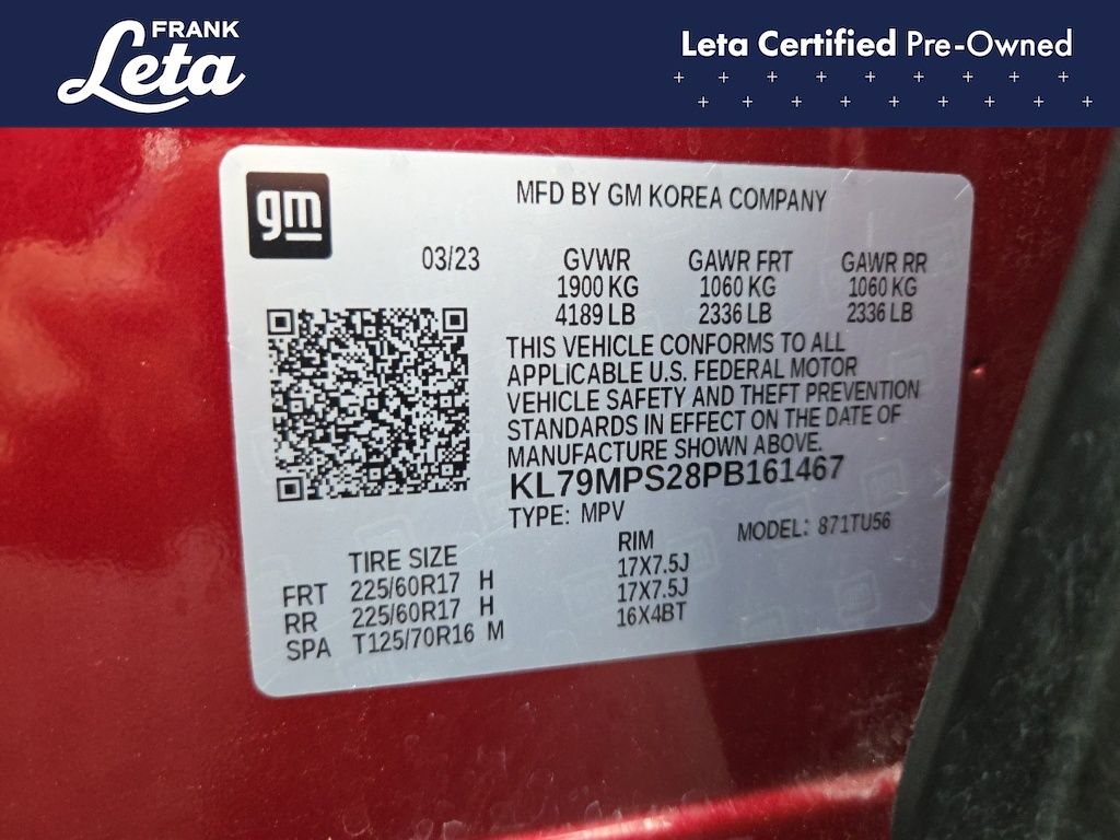 - VIN : KL79MPS28PB161467