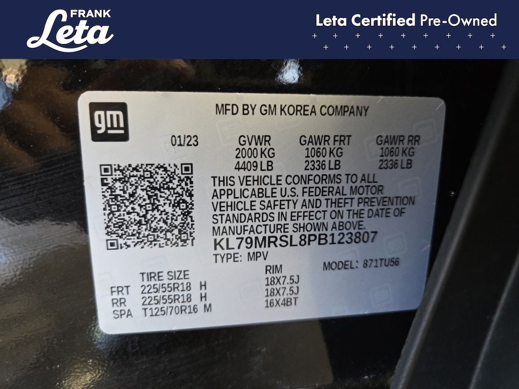 - VIN : KL79MRSL8PB123807