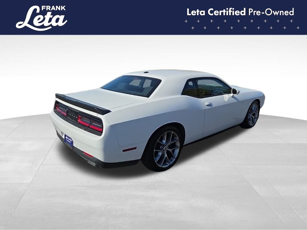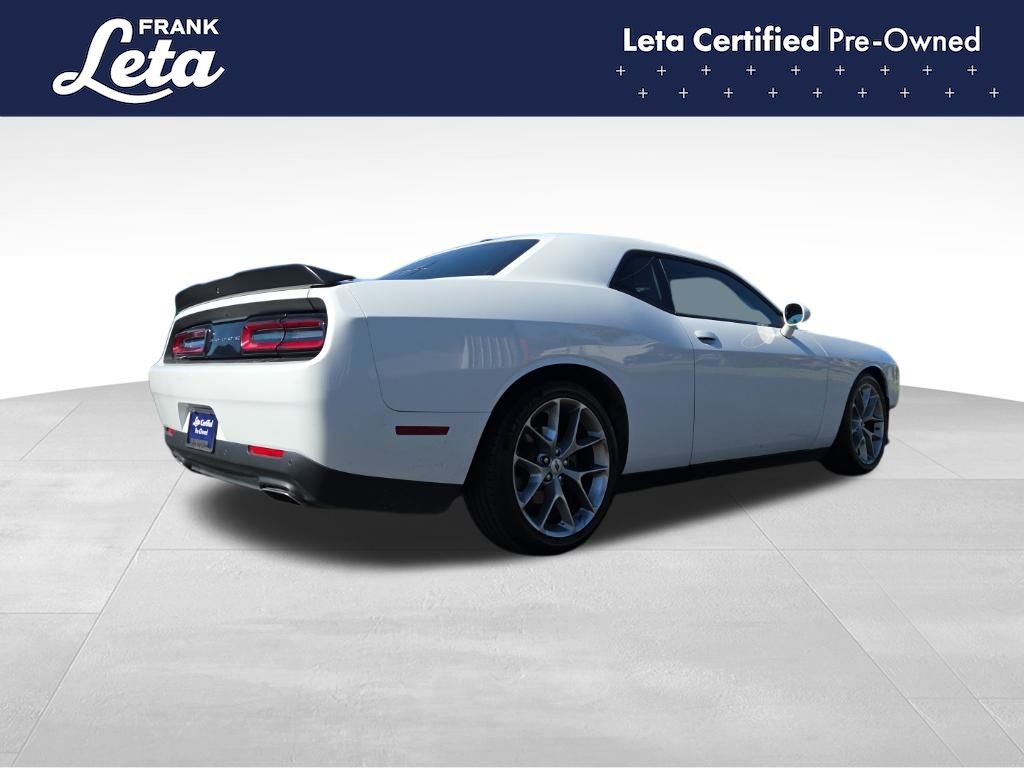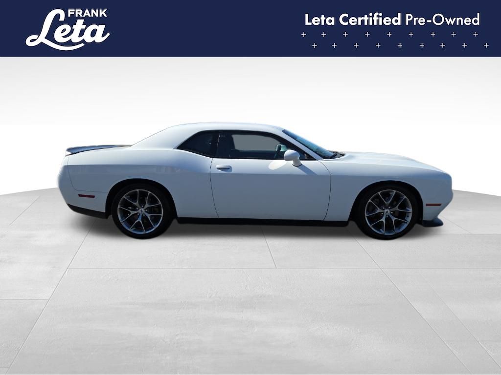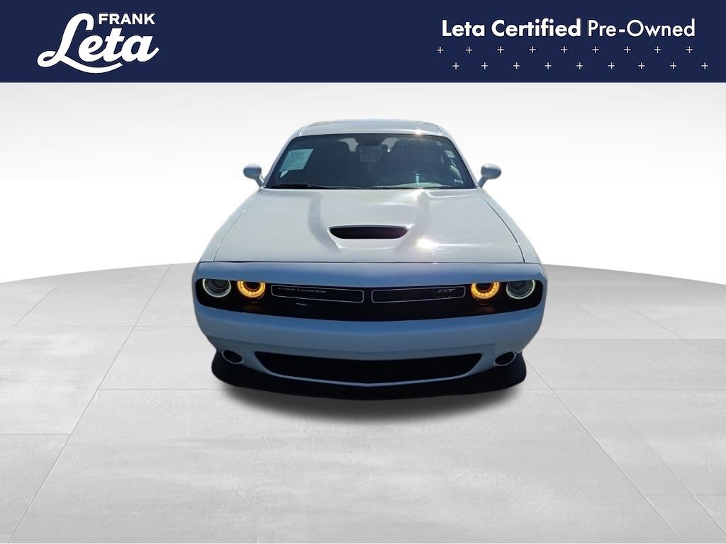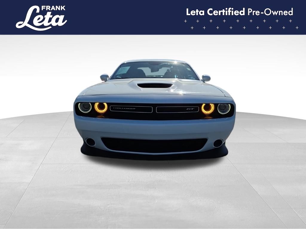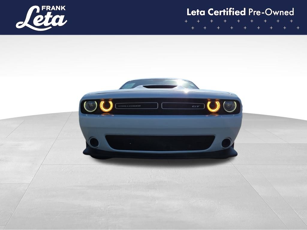 CARFAX One-Owner. 2023 Dodge Challenger GT White Knuckle Clearcoat Challenger GT, Frank Leta Certified Certified, 3.6L V6 24V VVT, White Knuckle Clearcoat, Apple CarPlay, Auto-dimming Rear-View mirror, Front dual zone A/C, Fully automatic headlights, Garage door transmitter, Google Android Auto, Integrated Voice Command w/Bluetooth, Wheels: 20" x 8.0" Satin Carbon Painted, 276 Watt Amplifier, 4-Wheel Disc Brakes, 6 Speakers, ABS brakes, Air Conditioning, AM/FM radio, Anti-whiplash front head restraints, Apple CarPlay/Android Auto, Automatic temperature control, Body Color Exterior Mirrors, Brake assist, Bumpers: body-color, Delay-off headlights, Driver door bin, Driver vanity mirror, Dual front impact airbags, Dual front side impact airbags, Electronic Stability Control, Exterior Mirrors w/Heating Element, Four wheel independent suspension, Front anti-roll bar, Front Bucket Seats, Front Center Armrest, Front License Plate Bracket, Front reading lights, GPS Antenna Input, Heated door mirrors, Houndstooth Cloth Performance Seats, Illuminated entry, Integrated Center Stack Radio, Leather Shift Knob, Low tire pressure warning, Media Hub (2 USB, AUX), Outside temperature display, Overhead airbag, Overhead console, Panic alarm, ParkView Rear Back-Up Camera, Passenger door bin, Passenger vanity mirror, Power door mirrors, Power driver seat, Power steering, Power windows, Quick Order Package 2EL, Radio data system, Radio: Uconnect 4 w/7" Display, Rear anti-roll bar, Rear reading lights, Rear seat center armrest, Rear window defroster, Remote keyless entry, Security system, SiriusXM Radio Service, SiriusXM Satellite Radio, Speed control, Speed-sensing steering, Split folding rear seat, Spoiler, Sport steering wheel, Steering wheel mounted audio controls, Tachometer, Telescoping steering wheel, Tilt steering wheel, Traction control, Trip computer, USB Host Flip, Variably intermittent wipers, Challenger GT, 3.6L V6 24V VVT, White Knuckle Clearcoat, Apple CarPlay, Auto-dimming Rear-View mirror, Front dual zone A/C, Fully automatic headlights, Garage door transmitter, Google Android Auto, Integrated Voice Command w/Bluetooth, Wheels: 20" x 8.0" Satin Carbon Painted. 3.6L V6 24V VVT 8-Speed Automatic RWD 2D Coupe 19/30 City/Highway MPG