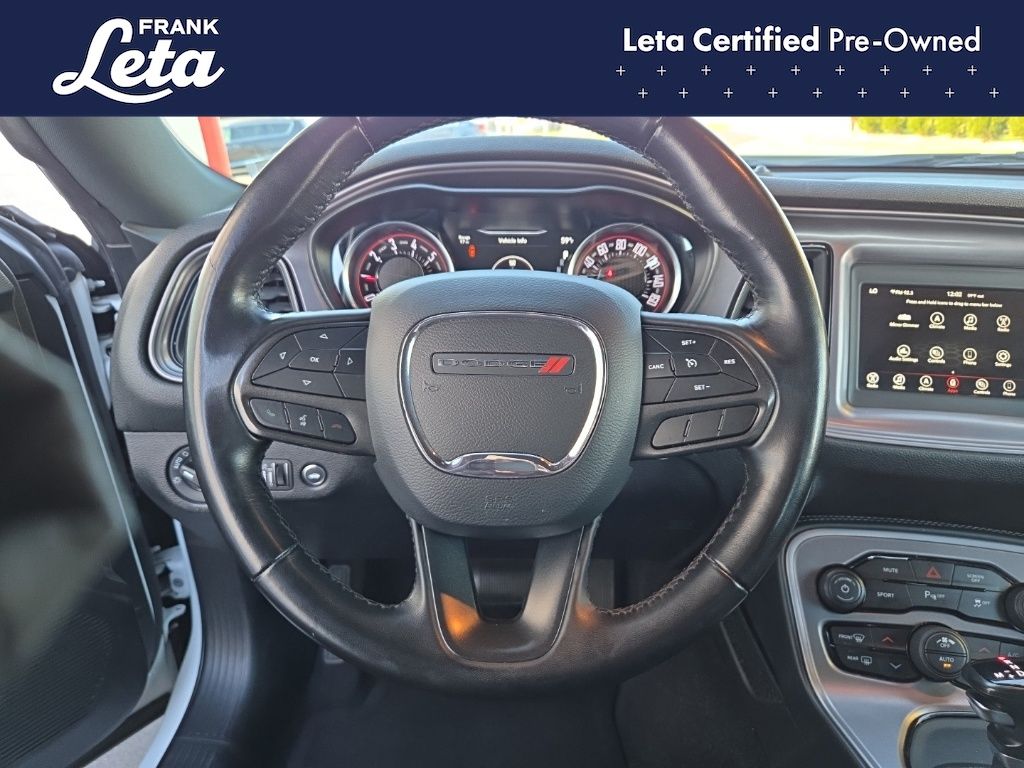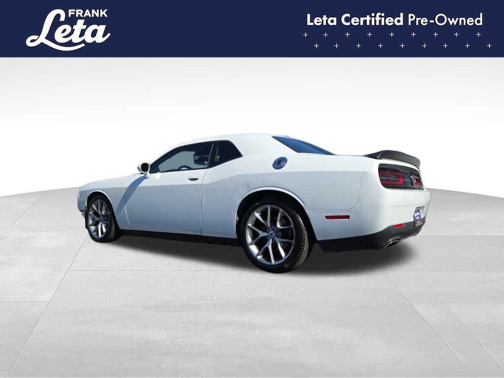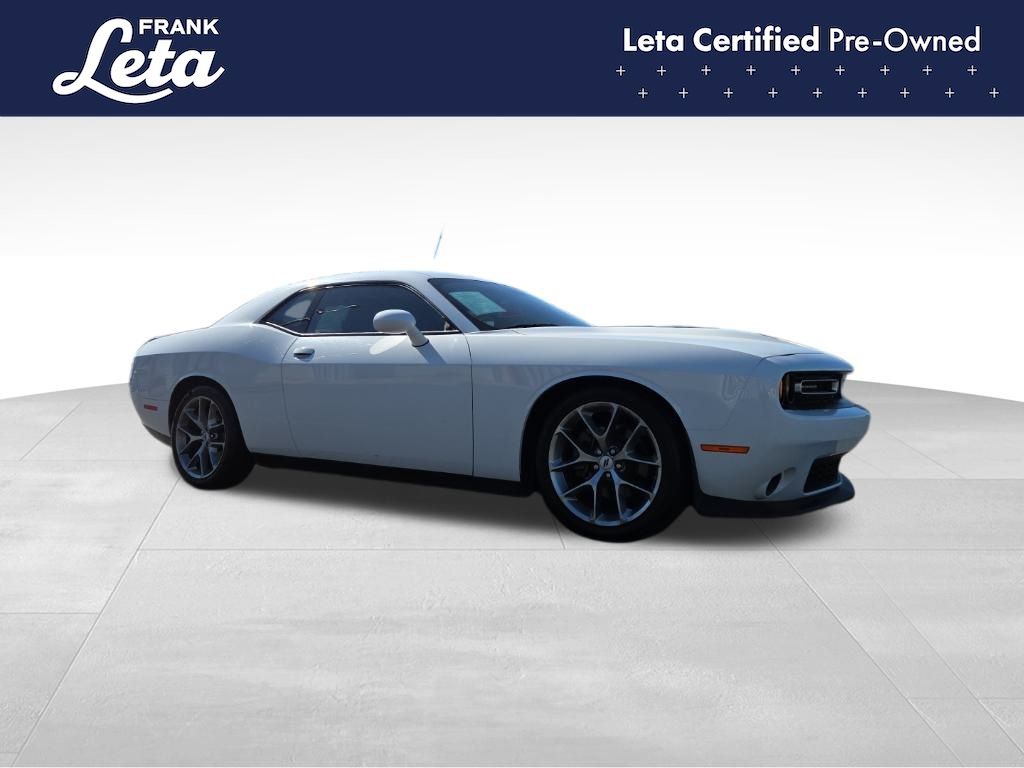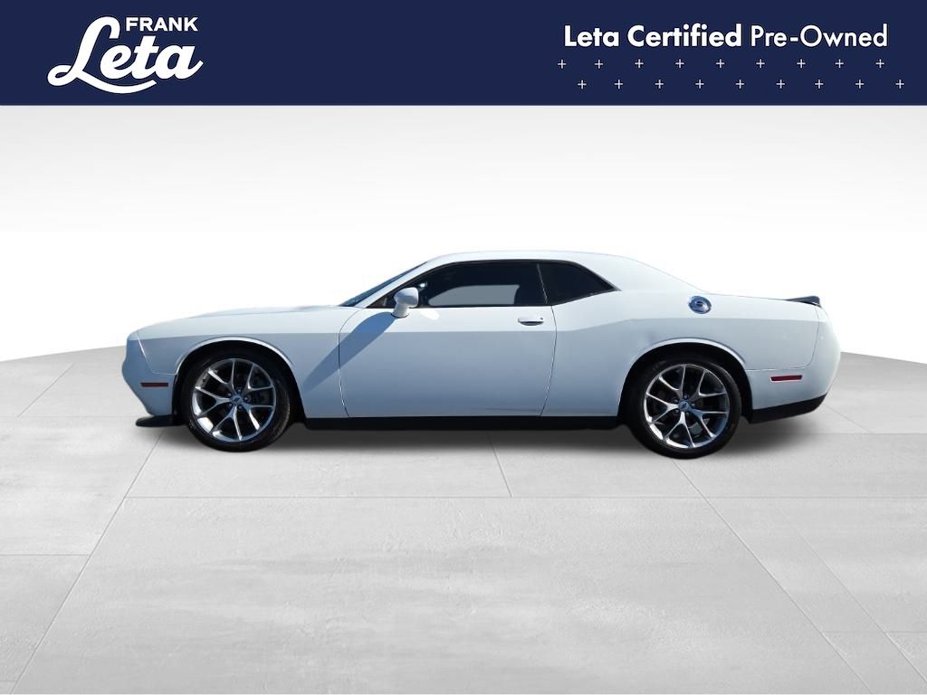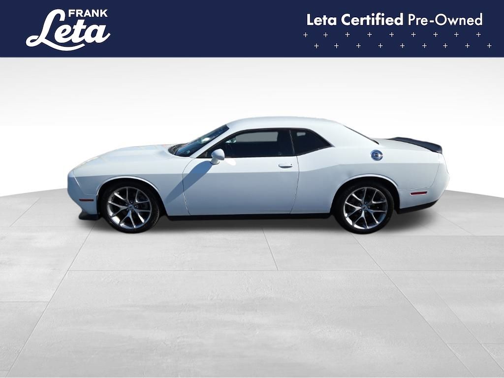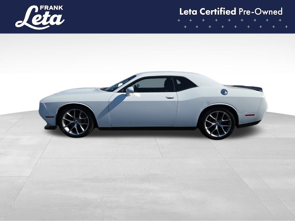 CARFAX One-Owner. 2023 Dodge Challenger GT White Knuckle Clearcoat Challenger GT, Frank Leta Certified Certified, 3.6L V6 24V VVT, White Knuckle Clearcoat, Apple CarPlay, Auto-dimming Rear-View mirror, Front dual zone A/C, Fully automatic headlights, Garage door transmitter, Google Android Auto, Integrated Voice Command w/Bluetooth, Wheels: 20" x 8.0" Satin Carbon Painted, 276 Watt Amplifier, 4-Wheel Disc Brakes, 6 Speakers, ABS brakes, Air Conditioning, AM/FM radio, Anti-whiplash front head restraints, Apple CarPlay/Android Auto, Automatic temperature control, Body Color Exterior Mirrors, Brake assist, Bumpers: body-color, Delay-off headlights, Driver door bin, Driver vanity mirror, Dual front impact airbags, Dual front side impact airbags, Electronic Stability Control, Exterior Mirrors w/Heating Element, Four wheel independent suspension, Front anti-roll bar, Front Bucket Seats, Front Center Armrest, Front License Plate Bracket, Front reading lights, GPS Antenna Input, Heated door mirrors, Houndstooth Cloth Performance Seats, Illuminated entry, Integrated Center Stack Radio, Leather Shift Knob, Low tire pressure warning, Media Hub (2 USB, AUX), Outside temperature display, Overhead airbag, Overhead console, Panic alarm, ParkView Rear Back-Up Camera, Passenger door bin, Passenger vanity mirror, Power door mirrors, Power driver seat, Power steering, Power windows, Quick Order Package 2EL, Radio data system, Radio: Uconnect 4 w/7" Display, Rear anti-roll bar, Rear reading lights, Rear seat center armrest, Rear window defroster, Remote keyless entry, Security system, SiriusXM Radio Service, SiriusXM Satellite Radio, Speed control, Speed-sensing steering, Split folding rear seat, Spoiler, Sport steering wheel, Steering wheel mounted audio controls, Tachometer, Telescoping steering wheel, Tilt steering wheel, Traction control, Trip computer, USB Host Flip, Variably intermittent wipers, Challenger GT, 3.6L V6 24V VVT, White Knuckle Clearcoat, Apple CarPlay, Auto-dimming Rear-View mirror, Front dual zone A/C, Fully automatic headlights, Garage door transmitter, Google Android Auto, Integrated Voice Command w/Bluetooth, Wheels: 20" x 8.0" Satin Carbon Painted. 3.6L V6 24V VVT 8-Speed Automatic RWD 2D Coupe 19/30 City/Highway MPG