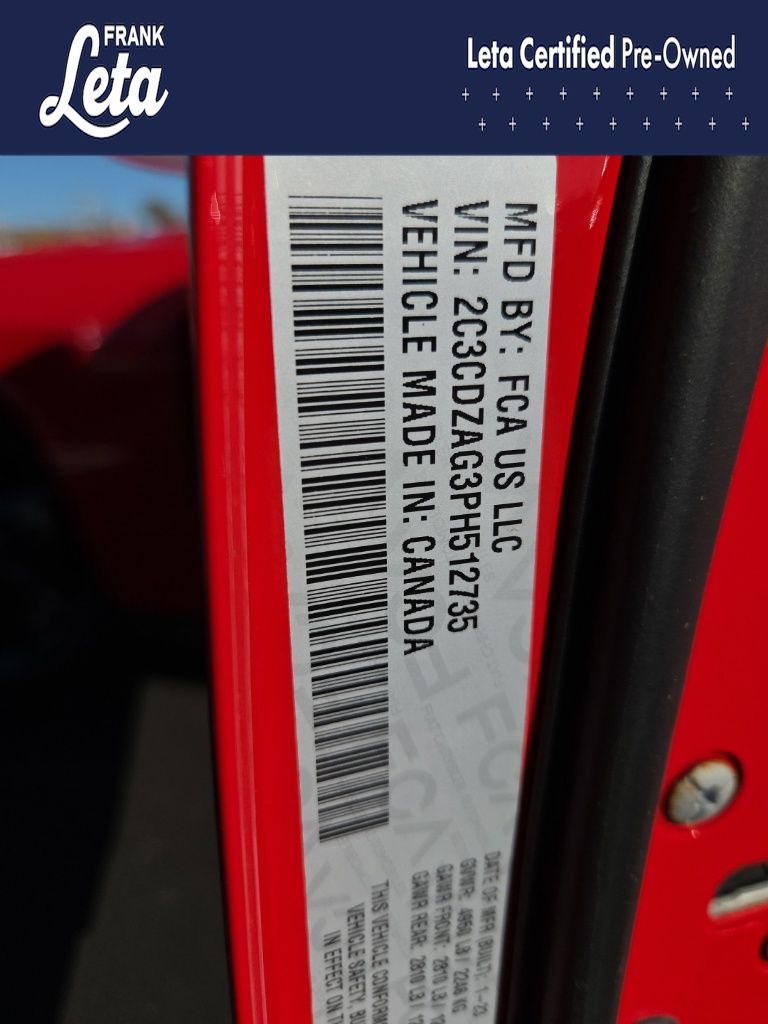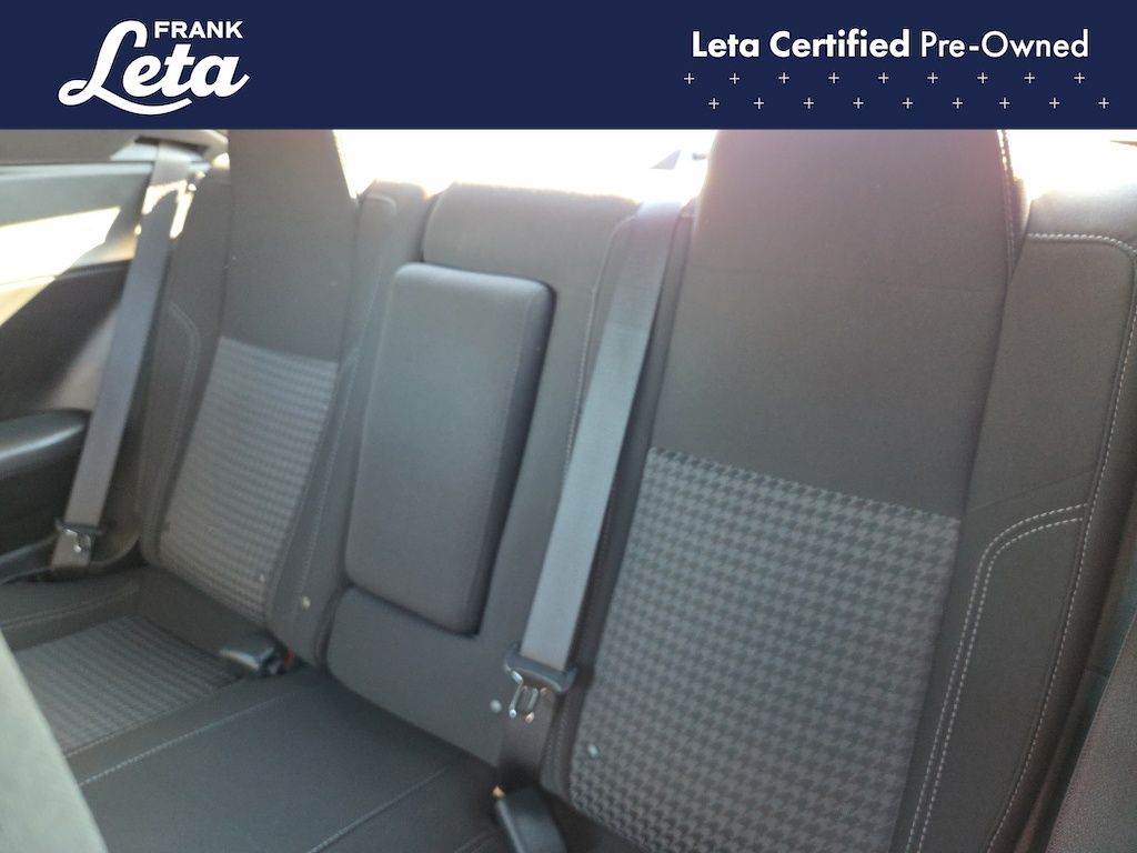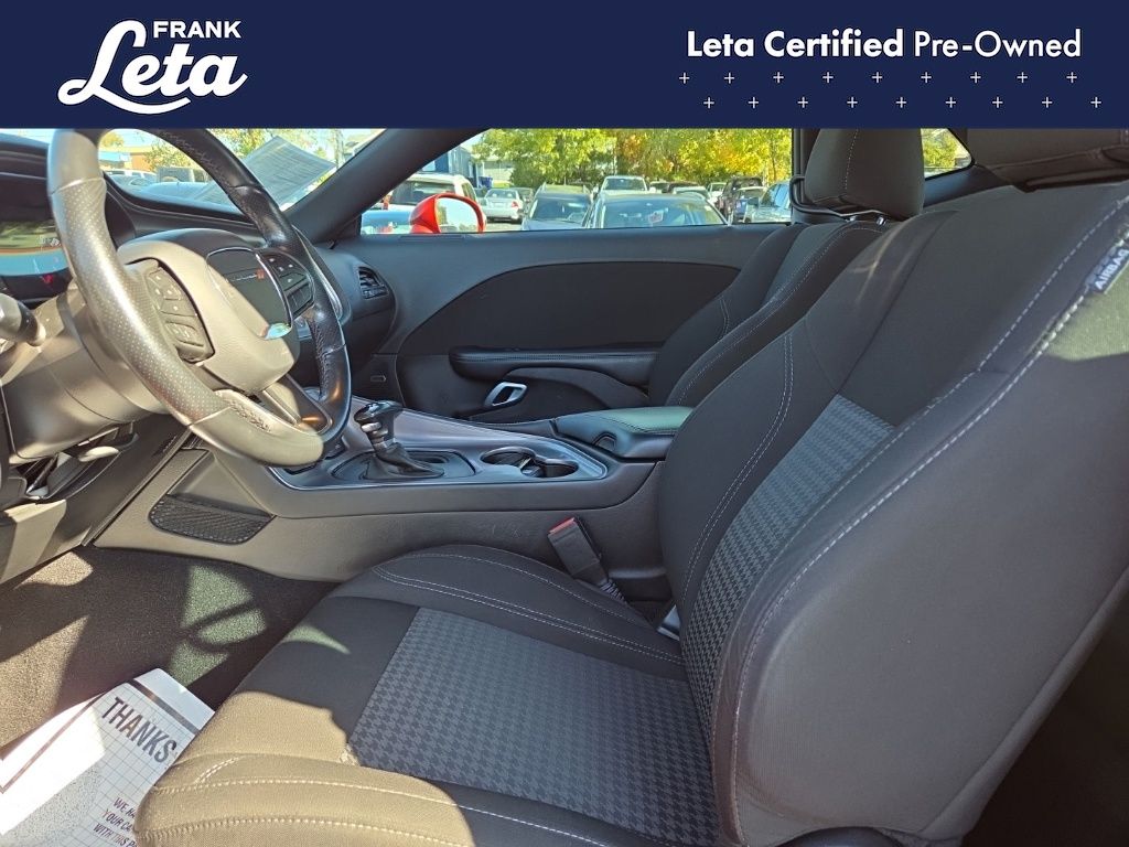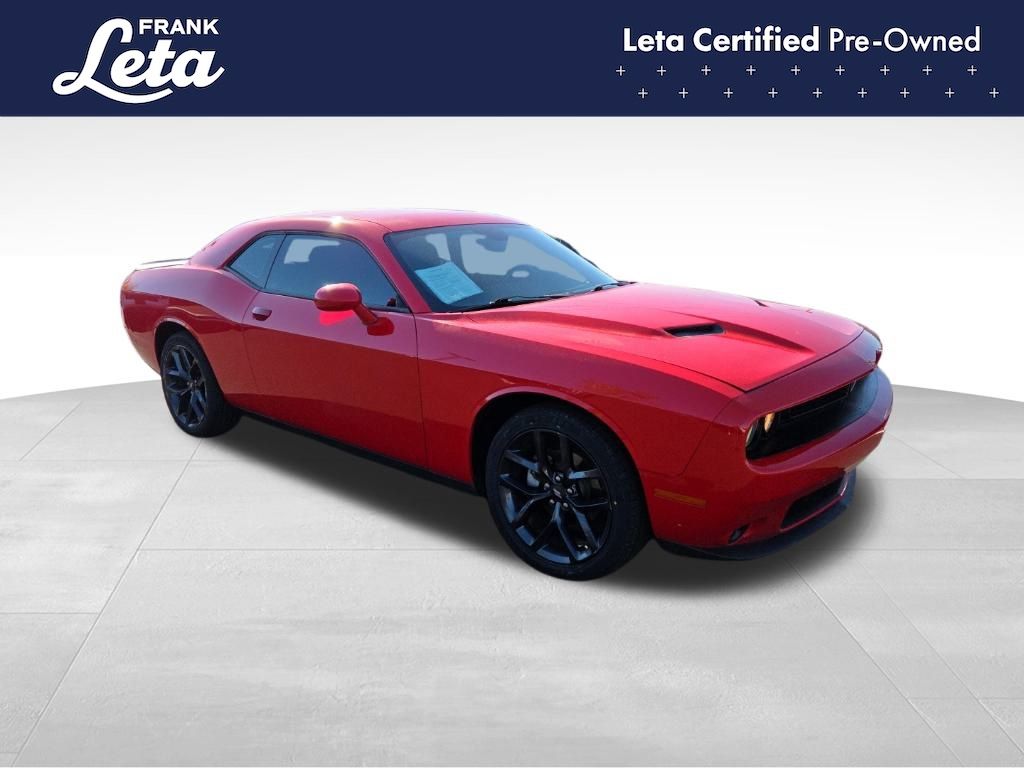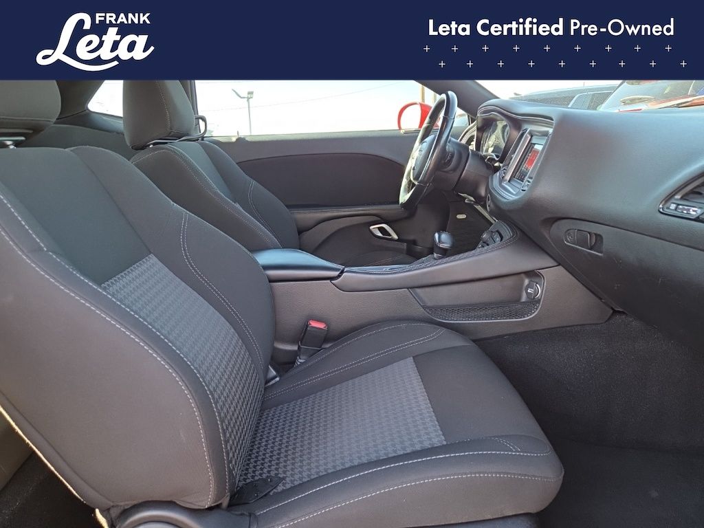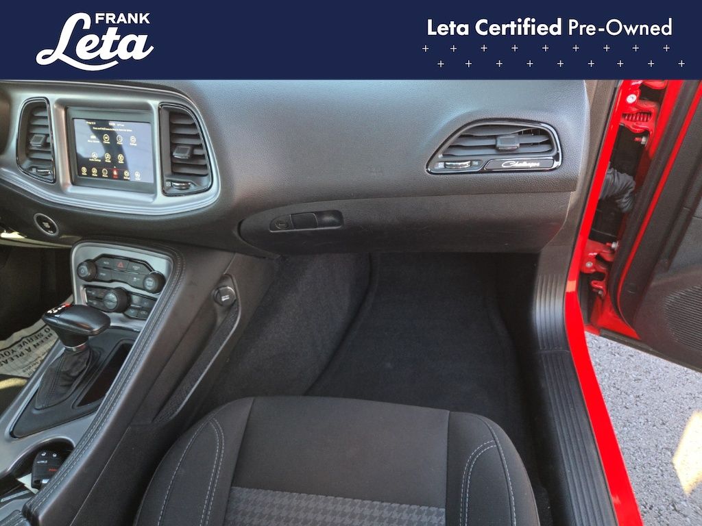 CARFAX One-Owner. 2023 Dodge Challenger SXT Torred Clearcoat Challenger SE, Frank Leta Certified Certified, 3.6L V6 24V VVT, Torred Clearcoat, Apple CarPlay, Front dual zone A/C, Fully automatic headlights, Google Android Auto, ParkView Rear Back-Up Camera, Wheels: 20" x 8.0" Black Noise Painted, 276 Watt Amplifier, 4-Wheel Disc Brakes, 6 Speakers, ABS brakes, Air Conditioning, AM/FM radio, Anti-Lock Brakes, Anti-whiplash front head restraints, Apple CarPlay/Android Auto, Auto Leather Wrapped Shift Knob, Auto-dimming Rear-View mirror, Automatic temperature control, AutoStick Automatic Transmission, Black Fuel Filler Door, Black Grille w/Bezel, Blacktop Package, Body Color Exterior Mirrors, Brake assist, Bumpers: body-color, Challenger Blacktop Grille Badge, Delay-off headlights, Driver door bin, Driver vanity mirror, Dual front impact airbags, Dual front side impact airbags, Electronic Stability Control, Exterior Mirrors w/Heating Element, Four wheel independent suspension, Front anti-roll bar, Front Bucket Seats, Front Center Armrest, Front reading lights, Gloss Black I/P Cluster Trim Rings, GPS Antenna Input, Heated door mirrors, Houndstooth Cloth Sport Seat, Illuminated entry, Integrated Center Stack Radio, Integrated Voice Command w/Bluetooth, Leather Performance Steering Wheel, Leather Shift Knob, Low tire pressure warning, Media Hub (2 USB, AUX), Outside temperature display, Overhead airbag, Overhead console, Panic alarm, Passenger door bin, Passenger vanity mirror, Power door mirrors, Power driver seat, Power steering, Power windows, Quick Order Package 2EA, Radio data system, Radio: Uconnect 4 w/7" Display, Rear anti-roll bar, Rear reading lights, Rear seat center armrest, Rear window defroster, Remote keyless entry, Satin Black Dodge Tail Lamp Badge, Security system, SiriusXM Radio Service, SiriusXM Satellite Radio, Speed control, Speed-sensing steering, Split folding rear seat, Spoiler, Steering wheel mounted audio controls, Tachometer, Telescoping steering wheel, Tilt steering wheel, Tip Start, Traction control, Trip computer, USB Host Flip, Variably intermittent wipers, Challenger SE, 3.6L V6 24V VVT, Torred Clearcoat, Apple CarPlay, Front dual zone A/C, Fully automatic headlights, Google Android Auto, ParkView Rear Back-Up Camera, Wheels: 20" x 8.0" Black Noise Painted. 3.6L V6 24V VVT 8-Speed Automatic RWD 2D Coupe 19/30 City/Highway MPG