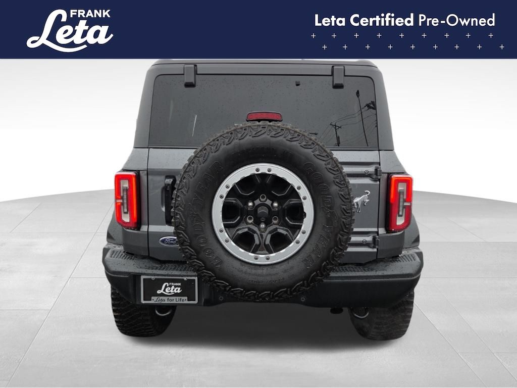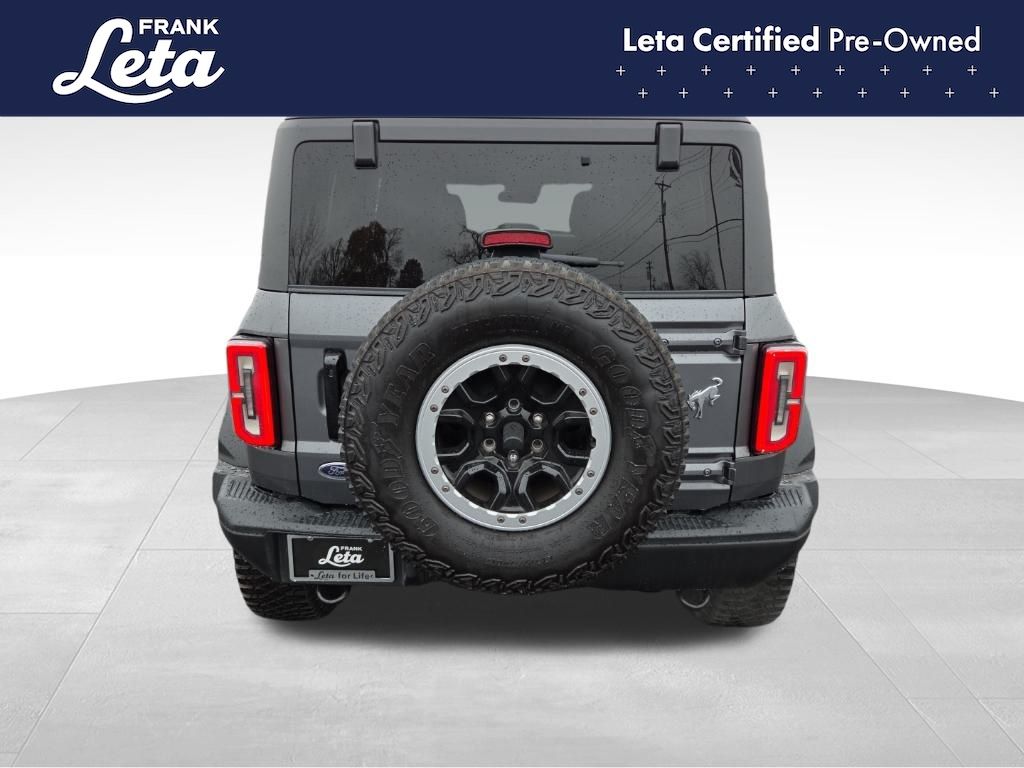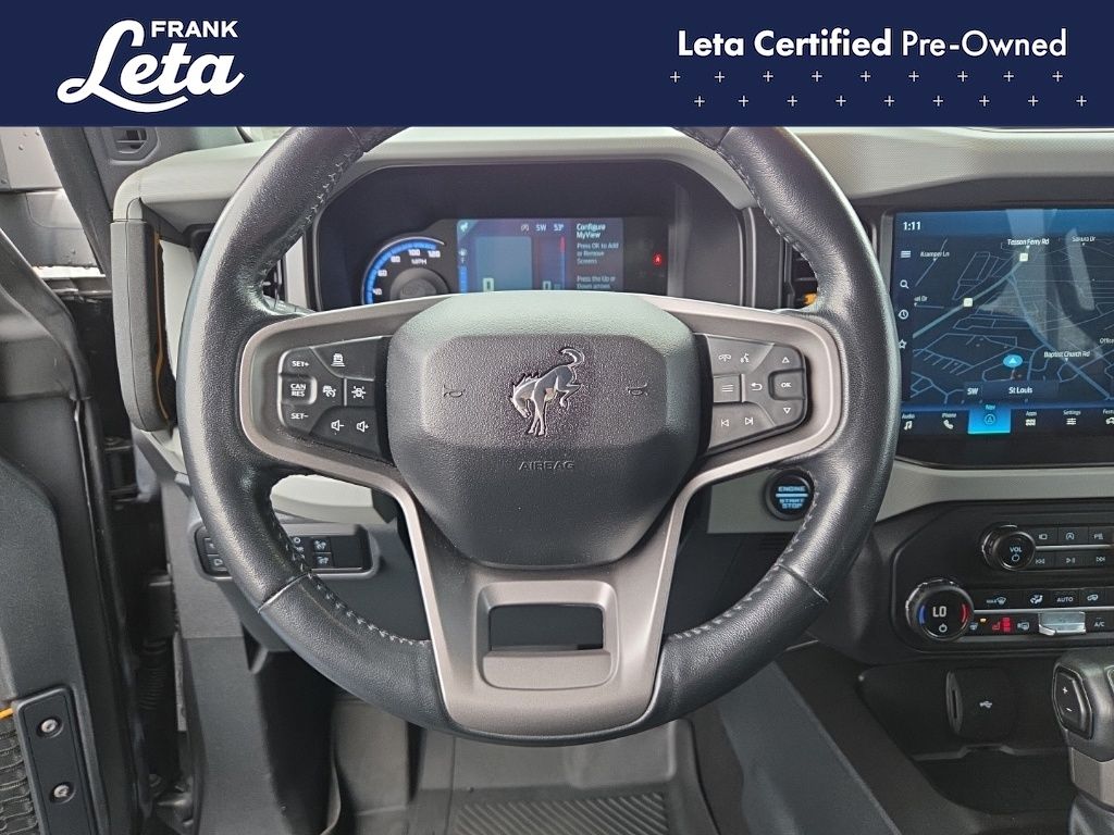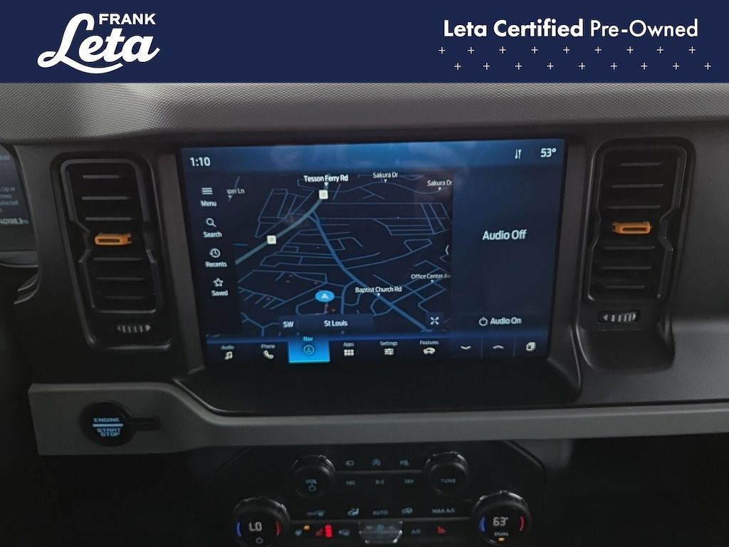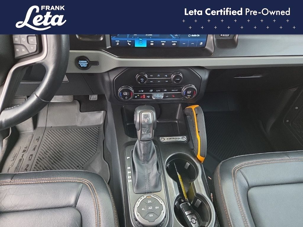 CARFAX One-Owner. 2023 Ford Bronco Badlands Carbonized Gray Metallic Bronco Badlands, Frank Leta Certified Certified, 2.7L EcoBoost V6, 4WD, Carbonized Gray Metallic, Black Onyx Leather, Carbonized Gray Molded-In-Color Hard Top, Front Row Top Panels Storage Bag, Fully automatic headlights, Hard Top Sound Deadening Headliner, Heated door mirrors, Rear-Window Defroster & Washer, Wheels: 17" Black High Gloss-Painted Aluminum, 4-Wheel Disc Brakes, 7 Speakers, ABS brakes, Air Conditioning, AM/FM radio: SiriusXM with 360L, AM/FM Stereo, Auto High-beam Headlights, Brake assist, Compass, Delay-off headlights, Driver door bin, Driver vanity mirror, Dual front impact airbags, Dual front side impact airbags, Electronic Stability Control, Emergency communication system: 911 Assist, Exterior Parking Camera Rear, Ford Performance Heavy-Duty Modular Front Bumper, Front & Rear Floor Liners w/o Carpet Floor Mats, Front anti-roll bar, Front Bucket Seats, Front Center Armrest, Front License Plate Bracket, Front reading lights, Front Row Top Panels & Door Storage Bags, Front wheel independent suspension, Illuminated entry, Integrated roll-over protection, Keyless Entry Keypad, Low tire pressure warning, Occupant sensing airbag, Outside temperature display, Overhead airbag, Overhead console, Panic alarm, Passenger door bin, Passenger vanity mirror, Power door mirrors, Power steering, Power windows, Radio data system, Remote keyless entry, Security system, SiriusXM Radio w/360L, Speed control, Split folding rear seat, Steering wheel mounted audio controls, SYNC 4, Tachometer, Telescoping steering wheel, Tilt steering wheel, Traction control, Trip computer, Variably intermittent wipers, Bronco Badlands, 2.7L EcoBoost V6, 4WD, Carbonized Gray Metallic, Black Onyx Leather, Carbonized Gray Molded-In-Color Hard Top, Front Row Top Panels Storage Bag, Fully automatic headlights, Hard Top Sound Deadening Headliner, Heated door mirrors, Rear-Window Defroster & Washer, Wheels: 17" Black High Gloss-Painted Aluminum. 2.7L EcoBoost V6 10-Speed Automatic 4WD 4D Sport Utility