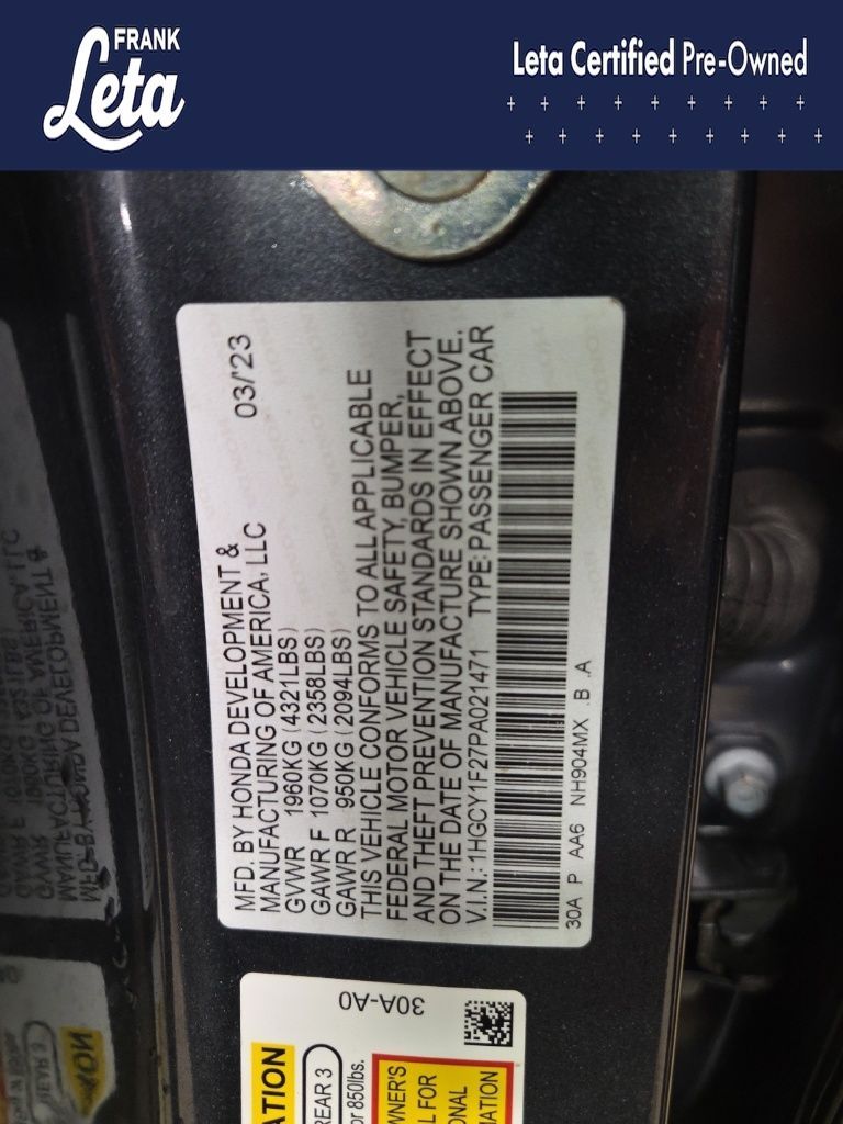 - VIN : 1HGCY1F27PA021471
