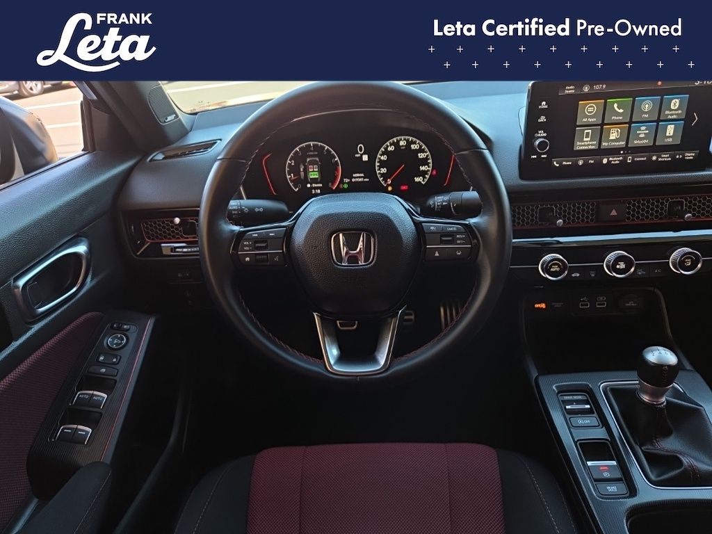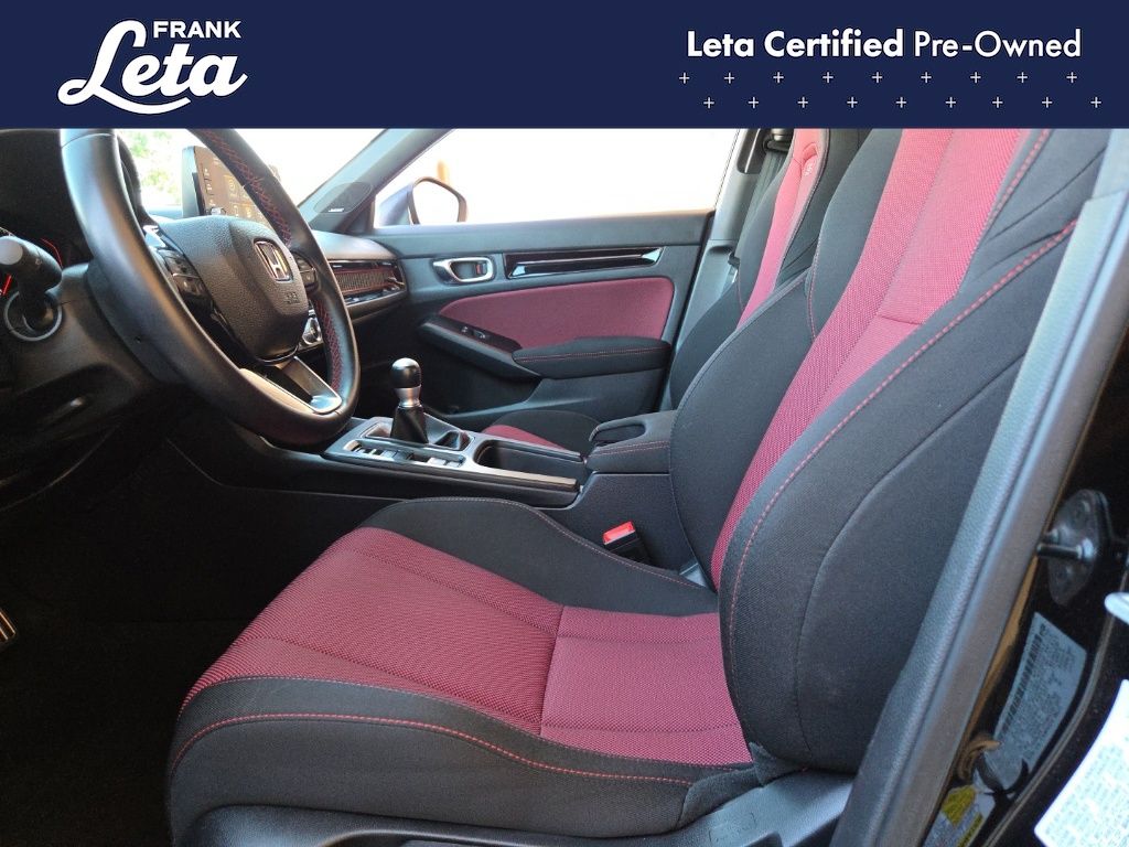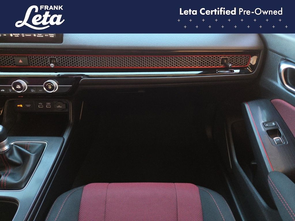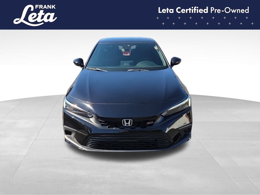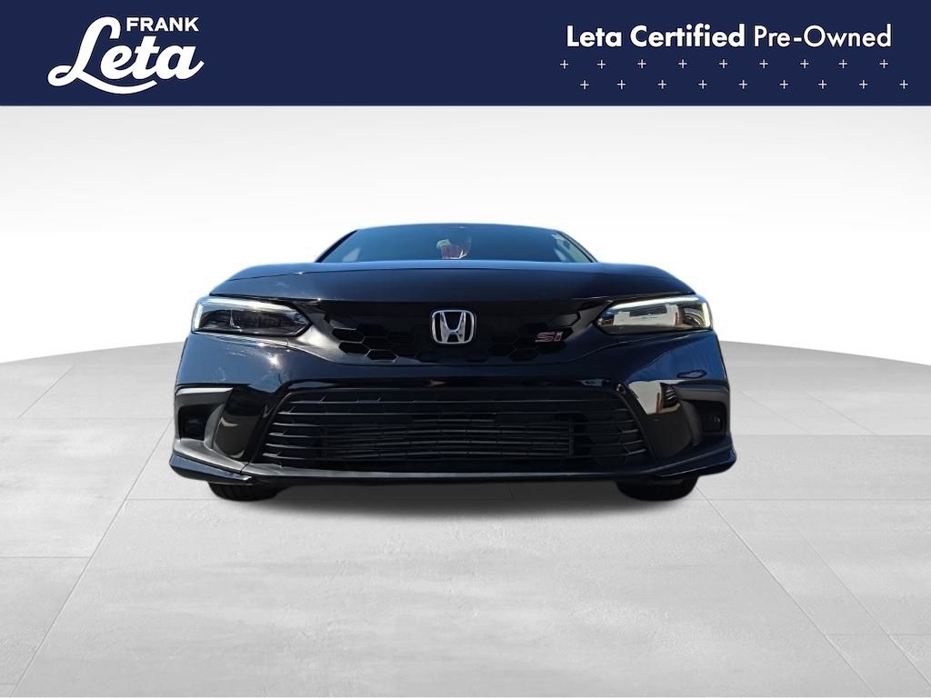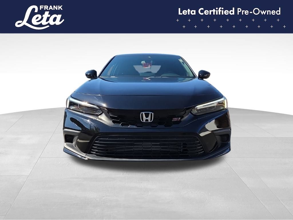 2023 Honda Civic Si Crystal Black Pearl Civic Si, Frank Leta Certified Certified, 1.5L I4 DOHC 16V, 6-Speed Manual, Crystal Black Pearl, Black/Red w/Fabric Seat Trim, 12 Speakers, Apple CarPlay/Android Auto, Bose Premium Sound System, Exterior Parking Camera Rear, Front dual zone A/C, Fully automatic headlights, Power moonroof, Wheels: 18" Matte Black Alloy, 4-Wheel Disc Brakes, ABS brakes, Air Conditioning, AM/FM radio: SiriusXM, Auto High-beam Headlights, Automatic temperature control, Brake assist, Bumpers: body-color, Delay-off headlights, Driver door bin, Driver vanity mirror, Dual front impact airbags, Dual front side impact airbags, Electronic Stability Control, Fabric Seat Trim, Four wheel independent suspension, Front anti-roll bar, Front Bucket Seats, Front Center Armrest, Front reading lights, Heated door mirrors, Illuminated entry, Knee airbag, Leather Shift Knob, Leather steering wheel, Low tire pressure warning, Occupant sensing airbag, Outside temperature display, Overhead airbag, Overhead console, Panic alarm, Passenger door bin, Passenger vanity mirror, Power door mirrors, Power steering, Power windows, Radio data system, Rear anti-roll bar, Rear seat center armrest, Rear side impact airbag, Rear window defroster, Remote keyless entry, Security system, Speed control, Speed-sensing steering, Split folding rear seat, Spoiler, Steering wheel mounted audio controls, Tachometer, Telescoping steering wheel, Tilt steering wheel, Traction control, Trip computer, Variably intermittent wipers, Civic Si, 1.5L I4 DOHC 16V, 6-Speed Manual, Crystal Black Pearl, Black/Red w/Fabric Seat Trim, 12 Speakers, Apple CarPlay/Android Auto, Bose Premium Sound System, Exterior Parking Camera Rear, Front dual zone A/C, Fully automatic headlights, Power moonroof, Wheels: 18" Matte Black Alloy. 1.5L I4 DOHC 16V 6-Speed Manual FWD 4D Sedan 27/37 City/Highway MPG