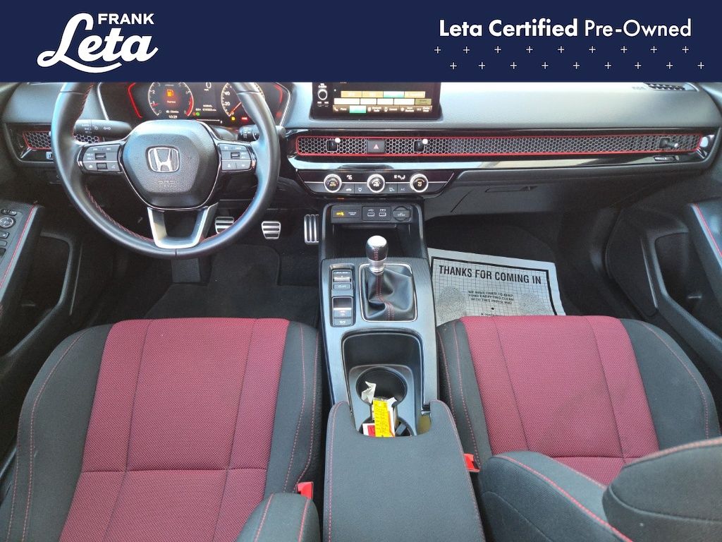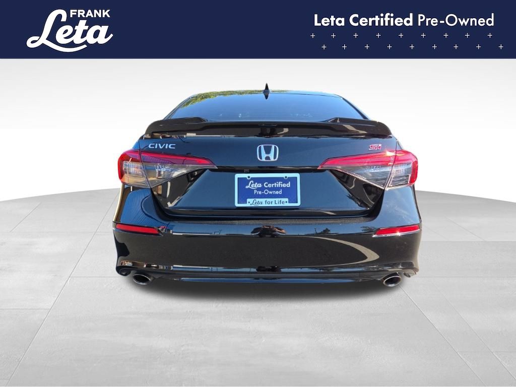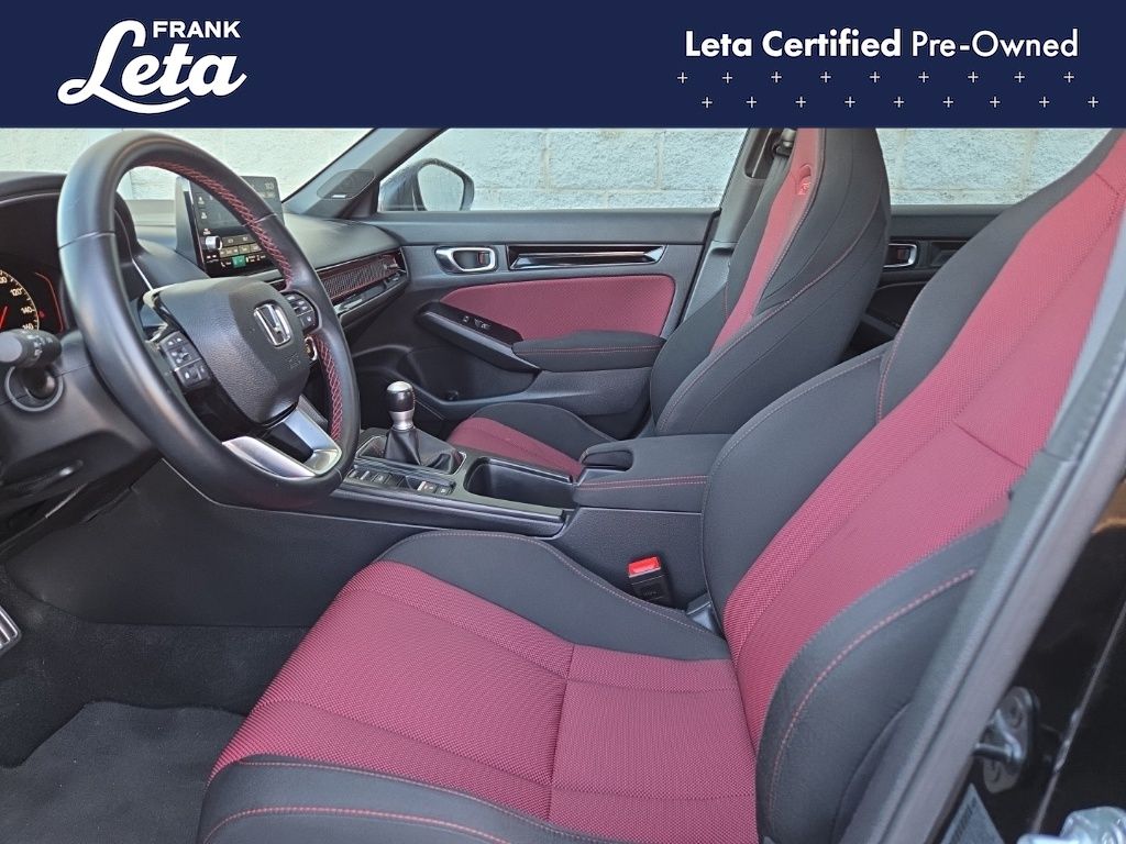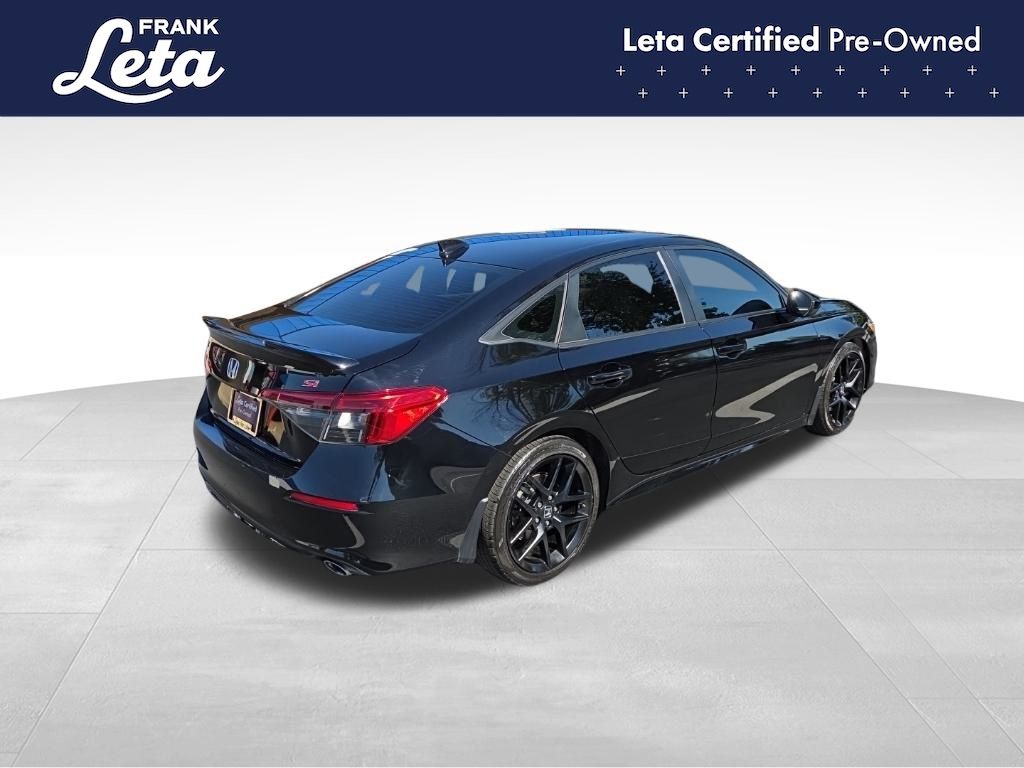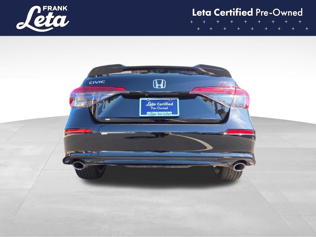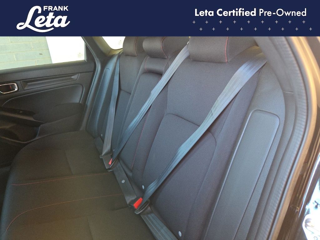 2023 Honda Civic Si Crystal Black Pearl Civic Si, Frank Leta Certified Certified, 1.5L I4 DOHC 16V, 6-Speed Manual, Crystal Black Pearl, Black/Red w/Fabric Seat Trim, 12 Speakers, Apple CarPlay/Android Auto, Bose Premium Sound System, Exterior Parking Camera Rear, Front dual zone A/C, Fully automatic headlights, Power moonroof, Wheels: 18" Matte Black Alloy, 4-Wheel Disc Brakes, ABS brakes, Air Conditioning, AM/FM radio: SiriusXM, Auto High-beam Headlights, Automatic temperature control, Brake assist, Bumpers: body-color, Delay-off headlights, Driver door bin, Driver vanity mirror, Dual front impact airbags, Dual front side impact airbags, Electronic Stability Control, Fabric Seat Trim, Four wheel independent suspension, Front anti-roll bar, Front Bucket Seats, Front Center Armrest, Front reading lights, Heated door mirrors, Illuminated entry, Knee airbag, Leather Shift Knob, Leather steering wheel, Low tire pressure warning, Occupant sensing airbag, Outside temperature display, Overhead airbag, Overhead console, Panic alarm, Passenger door bin, Passenger vanity mirror, Power door mirrors, Power steering, Power windows, Radio data system, Rear anti-roll bar, Rear seat center armrest, Rear side impact airbag, Rear window defroster, Remote keyless entry, Security system, Speed control, Speed-sensing steering, Split folding rear seat, Spoiler, Steering wheel mounted audio controls, Tachometer, Telescoping steering wheel, Tilt steering wheel, Traction control, Trip computer, Variably intermittent wipers, Civic Si, 1.5L I4 DOHC 16V, 6-Speed Manual, Crystal Black Pearl, Black/Red w/Fabric Seat Trim, 12 Speakers, Apple CarPlay/Android Auto, Bose Premium Sound System, Exterior Parking Camera Rear, Front dual zone A/C, Fully automatic headlights, Power moonroof, Wheels: 18" Matte Black Alloy. 1.5L I4 DOHC 16V 6-Speed Manual FWD 4D Sedan 27/37 City/Highway MPG