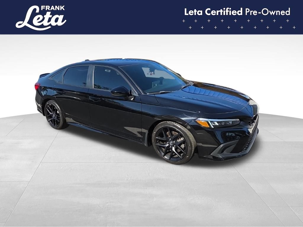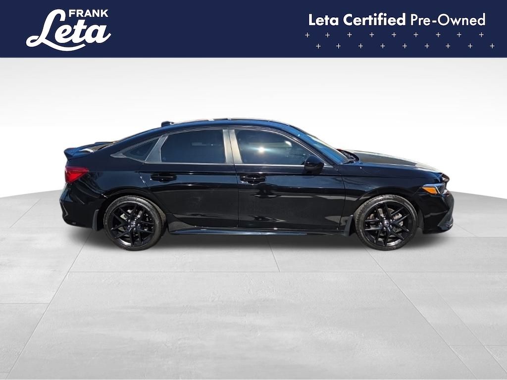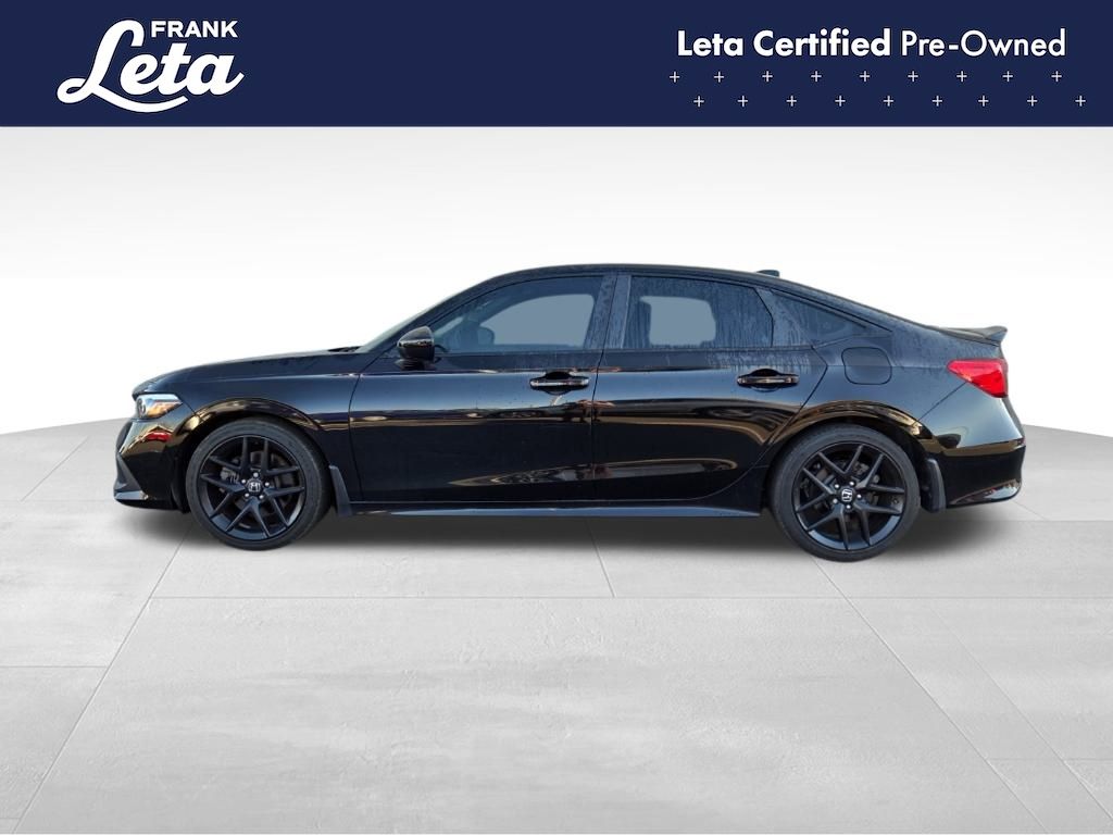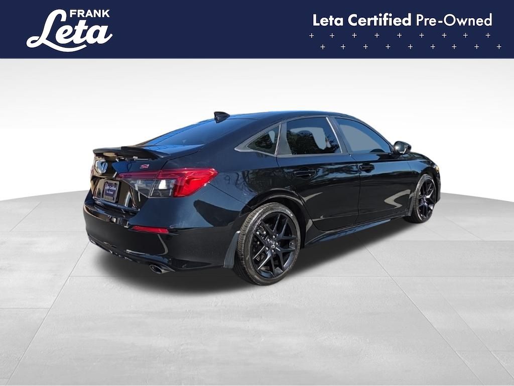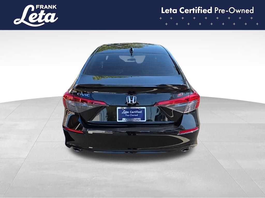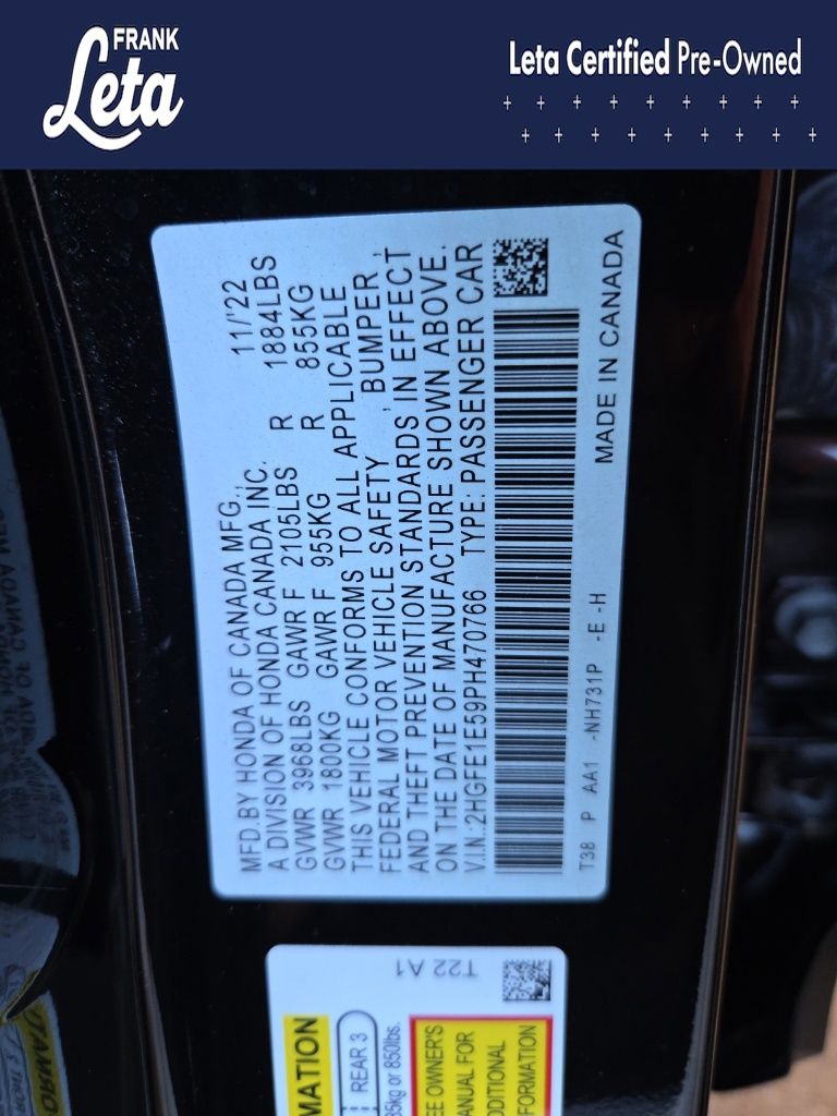 2023 Honda Civic Si Crystal Black Pearl Civic Si, Frank Leta Certified Certified, 1.5L I4 DOHC 16V, 6-Speed Manual, Crystal Black Pearl, Black/Red w/Fabric Seat Trim, 12 Speakers, Apple CarPlay/Android Auto, Bose Premium Sound System, Exterior Parking Camera Rear, Front dual zone A/C, Fully automatic headlights, Power moonroof, Wheels: 18" Matte Black Alloy, 4-Wheel Disc Brakes, ABS brakes, Air Conditioning, AM/FM radio: SiriusXM, Auto High-beam Headlights, Automatic temperature control, Brake assist, Bumpers: body-color, Delay-off headlights, Driver door bin, Driver vanity mirror, Dual front impact airbags, Dual front side impact airbags, Electronic Stability Control, Fabric Seat Trim, Four wheel independent suspension, Front anti-roll bar, Front Bucket Seats, Front Center Armrest, Front reading lights, Heated door mirrors, Illuminated entry, Knee airbag, Leather Shift Knob, Leather steering wheel, Low tire pressure warning, Occupant sensing airbag, Outside temperature display, Overhead airbag, Overhead console, Panic alarm, Passenger door bin, Passenger vanity mirror, Power door mirrors, Power steering, Power windows, Radio data system, Rear anti-roll bar, Rear seat center armrest, Rear side impact airbag, Rear window defroster, Remote keyless entry, Security system, Speed control, Speed-sensing steering, Split folding rear seat, Spoiler, Steering wheel mounted audio controls, Tachometer, Telescoping steering wheel, Tilt steering wheel, Traction control, Trip computer, Variably intermittent wipers, Civic Si, 1.5L I4 DOHC 16V, 6-Speed Manual, Crystal Black Pearl, Black/Red w/Fabric Seat Trim, 12 Speakers, Apple CarPlay/Android Auto, Bose Premium Sound System, Exterior Parking Camera Rear, Front dual zone A/C, Fully automatic headlights, Power moonroof, Wheels: 18" Matte Black Alloy. 1.5L I4 DOHC 16V 6-Speed Manual FWD 4D Sedan 27/37 City/Highway MPG
