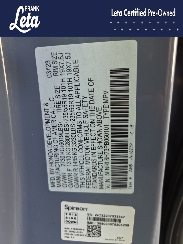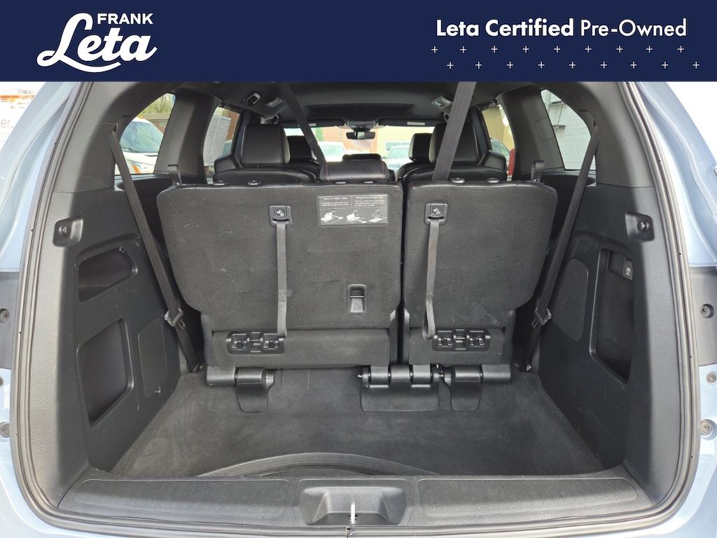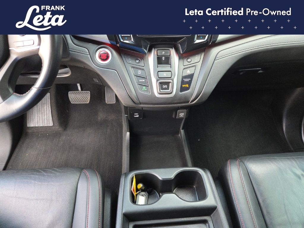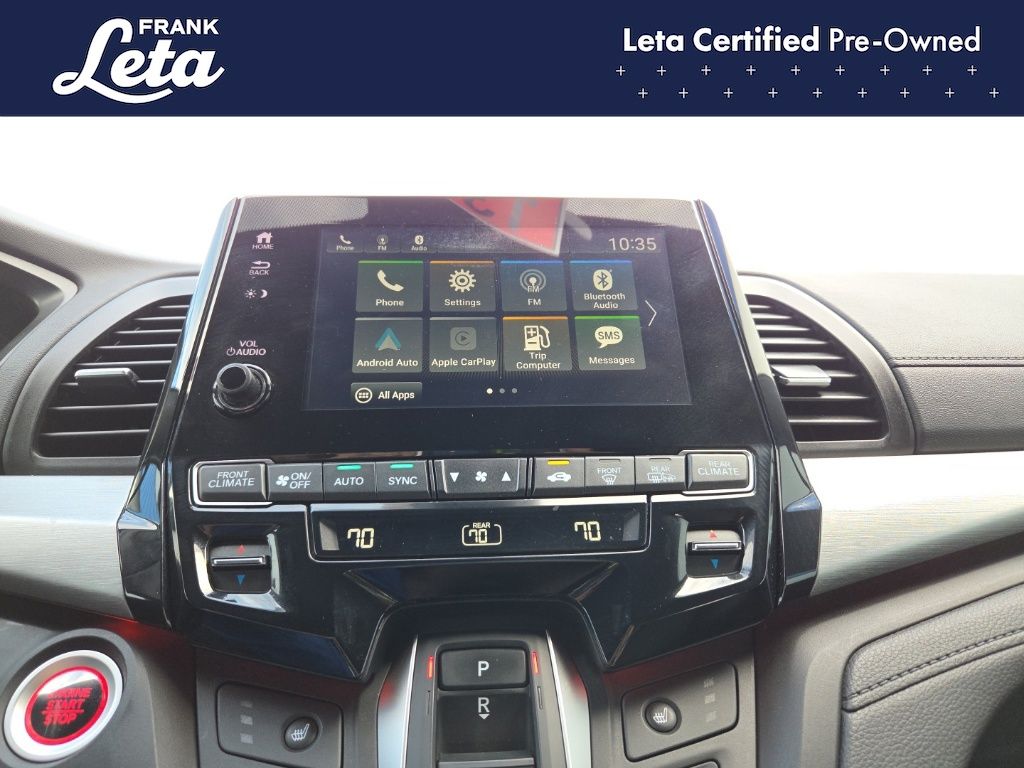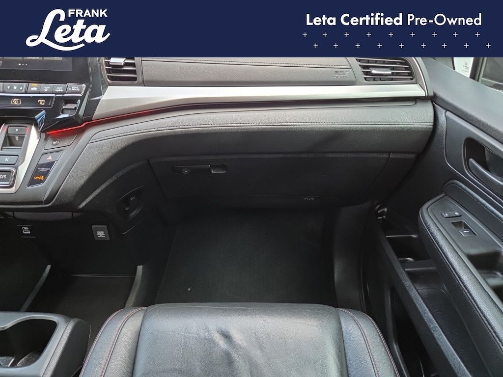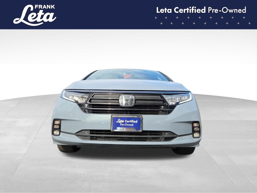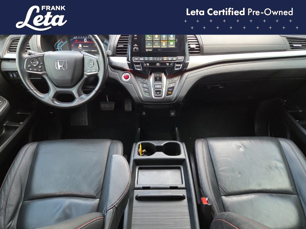 CARFAX One-Owner. 2023 Honda Odyssey Sport Sonic Gray Pearl Odyssey Sport, Frank Leta Certified Certified, 3.5L V6 SOHC i-VTEC 24V, Sonic Gray Pearl, Black w/Leather Seat Trim, 3rd row seats: split-bench, Adaptive Cruise Control: Adaptive Cruise Control (ACC) with Low-Speed Follow, Apple CarPlay/Android Auto, Auto-dimming Rear-View mirror, Blind Spot Information (BSI) System warning, Exterior Parking Camera Rear, Front dual zone A/C, Front fog lights, Fully automatic headlights, Garage door transmitter: HomeLink, Heated front seats, Memory seat, Power Liftgate, Power moonroof, Rear air conditioning, Wheels: 19" Gloss Black Alloy, 3.61 Axle Ratio, 4-Wheel Disc Brakes, 7 Speakers, A/V remote: CabinControl, ABS brakes, Air Conditioning, AM/FM radio: SiriusXM, Anti-whiplash front head restraints, Auto High-beam Headlights, Automatic temperature control, Brake assist, Bumpers: body-color, Delay-off headlights, Driver door bin, Driver vanity mirror, Driver's Seat Mounted Armrest, Dual front impact airbags, Dual front side impact airbags, Electronic Stability Control, Four wheel independent suspension, Front anti-roll bar, Front Bucket Seats, Front reading lights, Heated door mirrors, Heated Front Bucket Seats, Illuminated entry, Knee airbag, Lane departure: Lane Keeping Assist System (LKAS) active, Leather Seat Trim, Leather steering wheel, Low tire pressure warning, Occupant sensing airbag, Outside temperature display, Overhead airbag, Overhead console, Panic alarm, Passenger door bin, Passenger seat mounted armrest, Passenger vanity mirror, Power door mirrors, Power driver seat, Power passenger seat, Power steering, Power windows, Radio data system, Radio: 160-Watt AM/FM/HD/SiriusXM Audio System, Rear anti-roll bar, Rear reading lights, Rear seat center armrest, Rear window defroster, Rear window wiper, Reclining 3rd row seat, Remote keyless entry, Security system, Speed control, Speed-sensing steering, Speed-Sensitive Wipers, Split folding rear seat, Spoiler, Steering wheel mounted audio controls, Tachometer, Telescoping steering wheel, Tilt steering wheel, Traction control, Trip computer, Turn signal indicator mirrors, Variably intermittent wipers, Odyssey Sport, 3.5L V6 SOHC i-VTEC 24V, Sonic Gray Pearl, Black w/Leather Seat Trim, 3rd row seats: split-bench, Adaptive Cruise Control: Adaptive Cruise Control (ACC) with Low-Speed Follow, Apple CarPlay/Android Auto, Auto-dimming Rear-View mirror, Blind Spot Information (BSI) System warning, Exterior Parking Camera Rear, Front dual zone A/C, Front fog lights, Fully automatic headlights, Garage door transmitter: HomeLink, Heated front seats, Memory seat, Power Liftgate, Power moonroof, Rear air conditioning, Wheels: 19" Gloss Black Alloy. 3.5L V6 SOHC i-VTEC 24V 10-Speed Automatic FWD 4D Passenger Van 19/28 City/Highway MPG