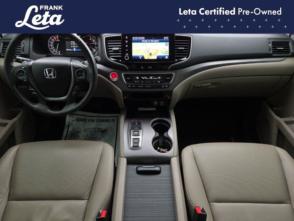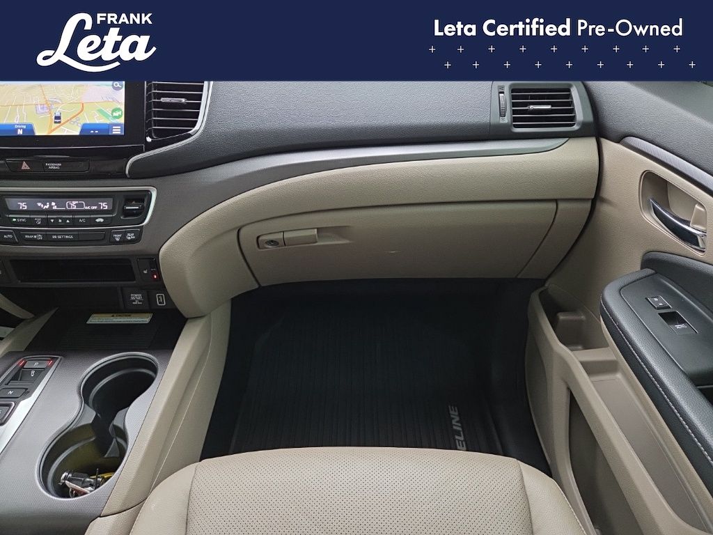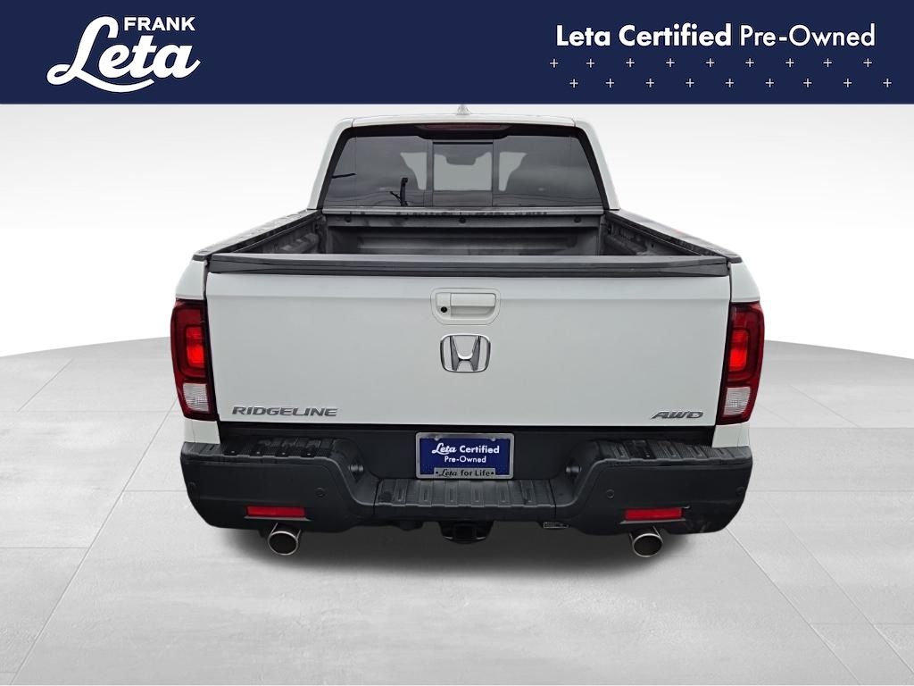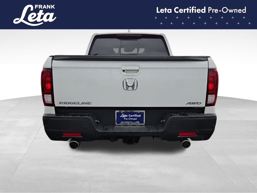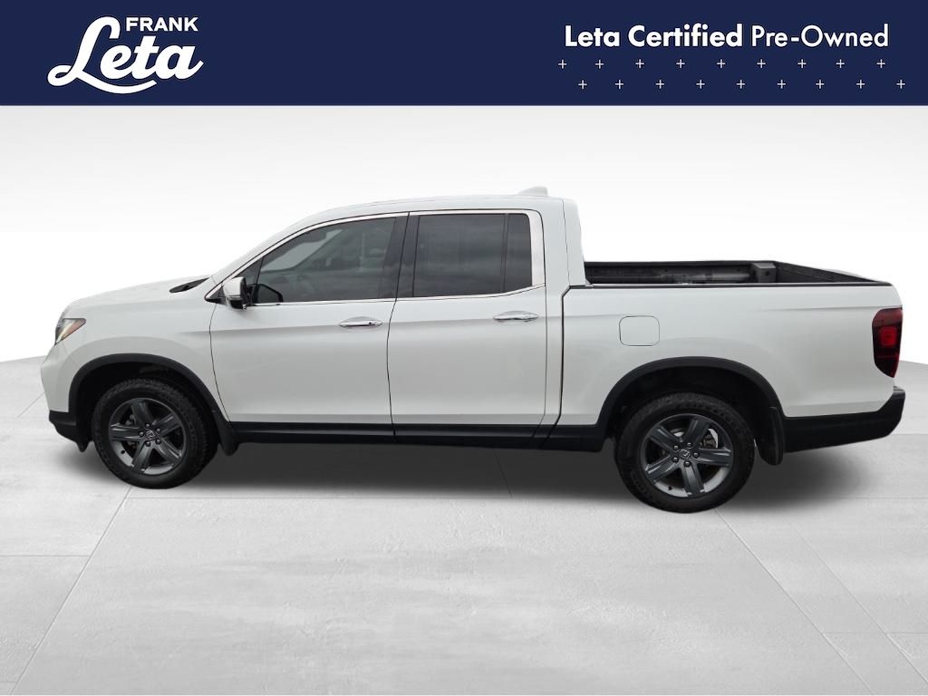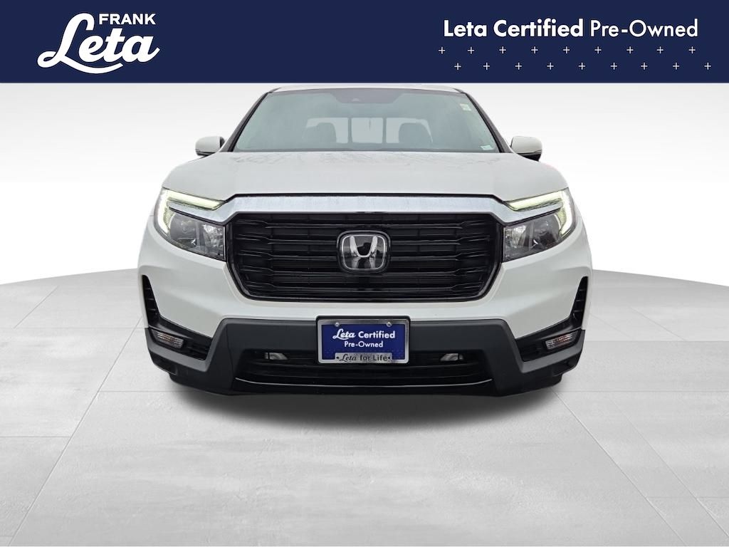 CARFAX One-Owner. 2023 Honda Ridgeline RTL-E Platinum White Pearl Ridgeline RTL-E, Frank Leta Certified Certified, 3.5L V6 SOHC i-VTEC 24V, AWD, Platinum White Pearl, Gray w/Leather Seat Trim, Apple CarPlay/Android Auto, Auto-dimming Rear-View mirror, Blind Spot Information (BSI) System warning, Bluetooth Hands-Free Link, Exterior Parking Camera Rear, Front dual zone A/C, Front fog lights, Fully automatic headlights, Garage door transmitter: HomeLink, Heated door mirrors, Heated front seats, Heated steering wheel, Memory seat, Navigation system: Honda Satellite-Linked Navigation System, Power moonroof, Rear air conditioning, Wheels: 18" Exclusive Pewter Gray Alloy, 4-Wheel Disc Brakes, 4.33 Axle Ratio, 8 Speakers, ABS brakes, Air Conditioning, AM/FM radio: SiriusXM, Auto High-beam Headlights, Automatic temperature control, Brake assist, Bumpers: body-color, Compass, Delay-off headlights, Driver door bin, Driver vanity mirror, Driver's Seat Mounted Armrest, Dual front impact airbags, Dual front side impact airbags, Electronic Stability Control, Four wheel independent suspension, Front anti-roll bar, Front Bucket Seats, Front reading lights, Heated Front Bucket Seats, Honda Satellite-Linked Navigation System, Illuminated entry, Leather Seat Trim, Low tire pressure warning, Occupant sensing airbag, Outside temperature display, Overhead airbag, Overhead console, Panic alarm, Passenger door bin, Passenger seat mounted armrest, Passenger vanity mirror, Power door mirrors, Power driver seat, Power passenger seat, Power steering, Power windows, Radio data system, Radio: 540-Watt Premium Audio System w/8 Speakers, Rear anti-roll bar, Rear reading lights, Rear seat center armrest, Rear step bumper, Rear window defroster, Remote keyless entry, Security system, SiriusXM, Speed control, Speed-sensing steering, Split folding rear seat, Steering wheel mounted audio controls, Tachometer, Telescoping steering wheel, Tilt steering wheel, Traction control, Trip computer, Turn signal indicator mirrors, Variably intermittent wipers, Ridgeline RTL-E, 3.5L V6 SOHC i-VTEC 24V, AWD, Platinum White Pearl, Gray w/Leather Seat Trim, Apple CarPlay/Android Auto, Auto-dimming Rear-View mirror, Blind Spot Information (BSI) System warning, Bluetooth Hands-Free Link, Exterior Parking Camera Rear, Front dual zone A/C, Front fog lights, Fully automatic headlights, Garage door transmitter: HomeLink, Heated door mirrors, Heated front seats, Heated steering wheel, Memory seat, Navigation system: Honda Satellite-Linked Navigation System, Power moonroof, Rear air conditioning, Wheels: 18" Exclusive Pewter Gray Alloy. 3.5L V6 SOHC i-VTEC 24V 9-Speed Automatic AWD 4D Crew Cab Odometer is 19848 miles below market average!