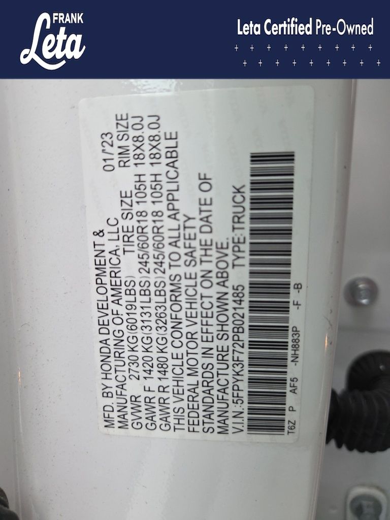 - VIN : 5FPYK3F72PB021485
