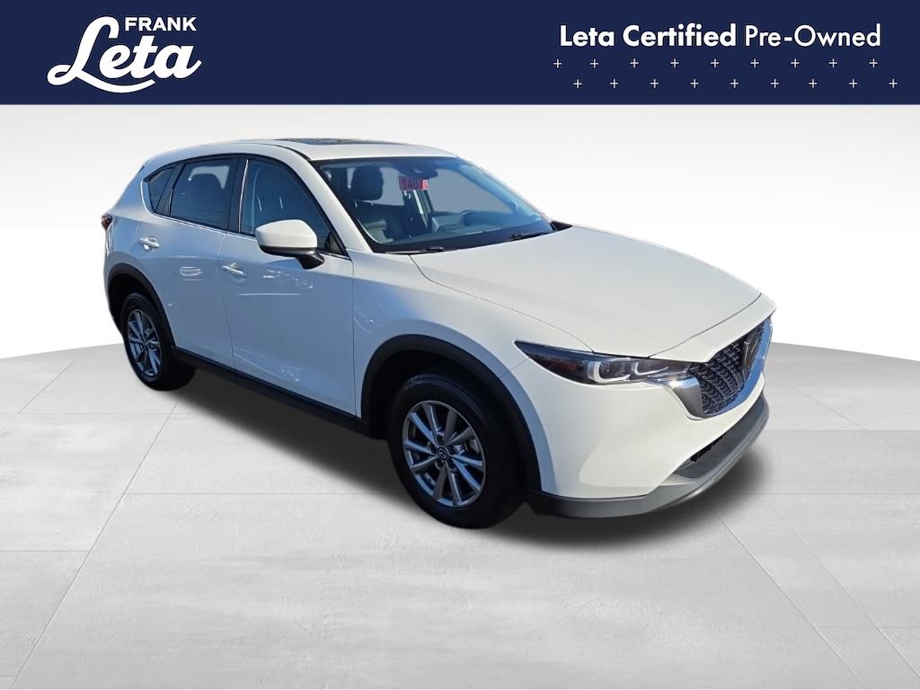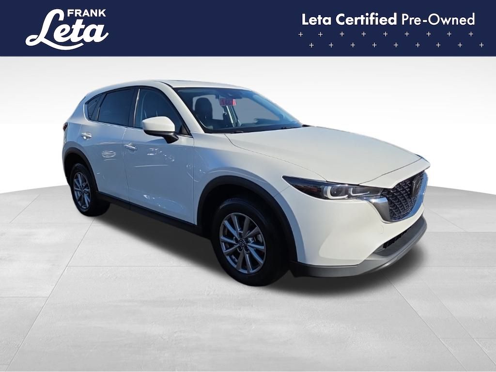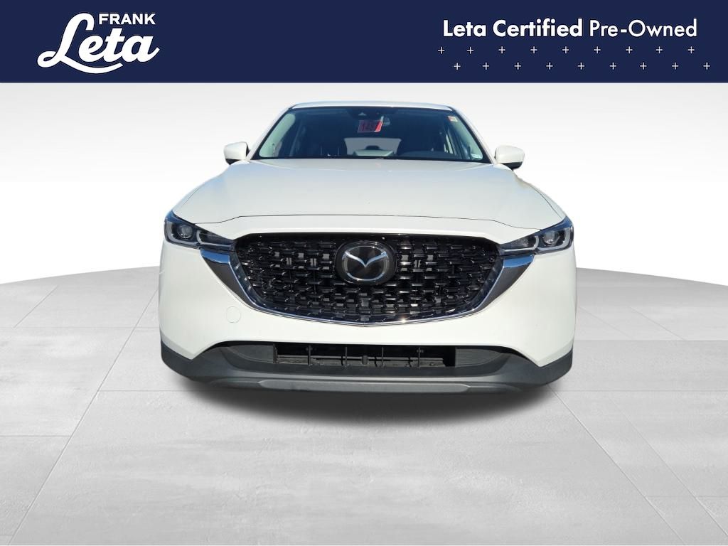 CARFAX One-Owner. 2023 Mazda CX-5 2.5 S Preferred Package Rhodium White Metallic CX-5 2.5 S Preferred Package, Frank Leta Certified Certified, SKYACTIV 2.5L 4-Cylinder DOHC 16V, AWD, Rhodium White Metallic, Black w/Leather Seat Trim, AppLink/Apple CarPlay and Android Auto, Auto-dimming Rear-View mirror, Exterior Parking Camera Rear, Front dual zone A/C, Fully automatic headlights, Garage door transmitter: HomeLink, Heated front seats, Memory seat, Power Liftgate, Power moonroof, Wheels: 17" x 7J Aluminum Alloy, 4-Wheel Disc Brakes, 4.624 Axle Ratio, 6 Speakers, ABS brakes, Air Conditioning, AM/FM radio, Auto High-beam Headlights, Automatic temperature control, Brake assist, Bumpers: body-color, Delay-off headlights, Driver door bin, Driver vanity mirror, Dual front impact airbags, Dual front side impact airbags, E911 Automatic Emergency Notification, Electronic Stability Control, Emergency communication system: MAZDA CONNECT, Four wheel independent suspension, Front anti-roll bar, Front Bucket Seats, Front Center Armrest w/Storage, Front reading lights, Heated Front Bucket Seats, Illuminated entry, Infotainment System Voice Command, Leather Seat Trim, Leather Shift Knob, Low tire pressure warning, Multifunction Commander Control, Occupant sensing airbag, Outside temperature display, Overhead airbag, Overhead console, Pandora, Panic alarm, Passenger door bin, Passenger vanity mirror, Power door mirrors, Power driver seat, Power passenger seat, Power steering, Power windows, Radio Broadcast Data System Program Information, Radio data system, Radio: AM/FM/HD Audio System, Rain sensing wipers, Rear anti-roll bar, Rear reading lights, Rear seat center armrest, Rear window defroster, Rear window wiper, Remote keyless entry, Rhodium White Metallic Paint, SMS Text Msg Audio Delivery & Reply, Speed control, Speed-sensing steering, Split folding rear seat, Spoiler, Steering wheel mounted audio controls, Tachometer, Telescoping steering wheel, Tilt steering wheel, Traction control, Trip computer, Turn signal indicator mirrors, Variably intermittent wipers, CX-5 2.5 S Preferred Package, SKYACTIV 2.5L 4-Cylinder DOHC 16V, AWD, Rhodium White Metallic, Black w/Leather Seat Trim, AppLink/Apple CarPlay and Android Auto, Auto-dimming Rear-View mirror, Exterior Parking Camera Rear, Front dual zone A/C, Fully automatic headlights, Garage door transmitter: HomeLink, Heated front seats, Memory seat, Power Liftgate, Power moonroof, Wheels: 17" x 7J Aluminum Alloy. SKYACTIV 2.5L 4-Cylinder DOHC 16V 6-Speed Automatic AWD 4D Sport Utility 24/30 City/Highway MPG