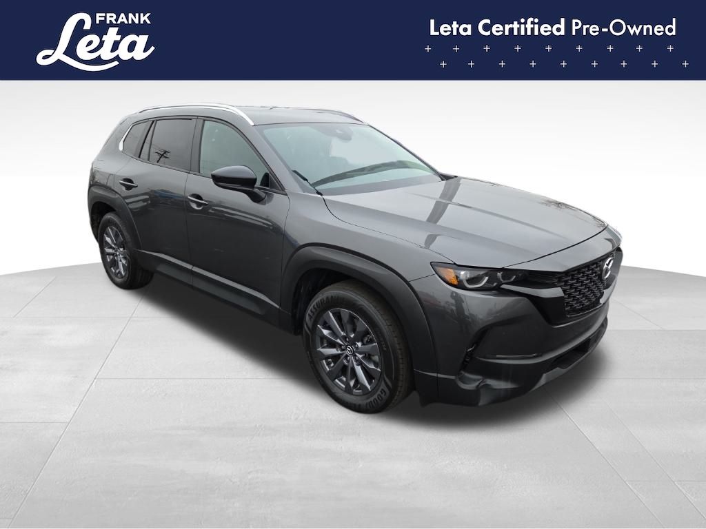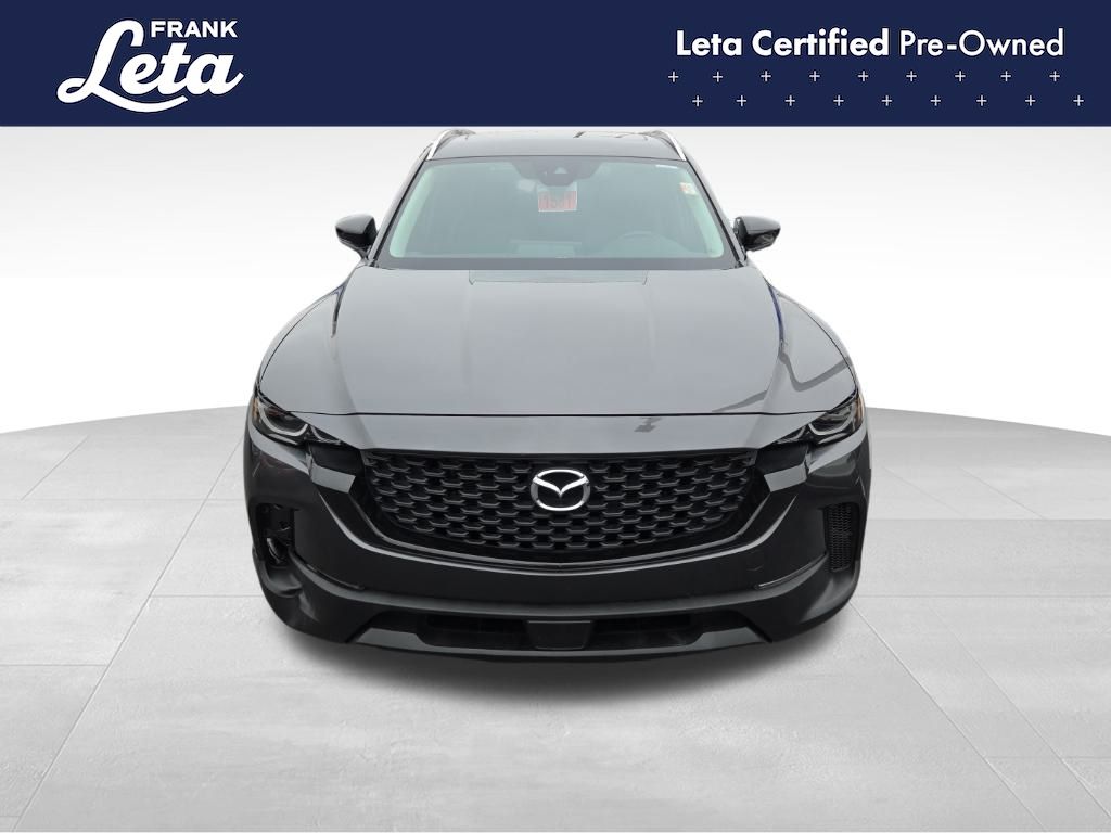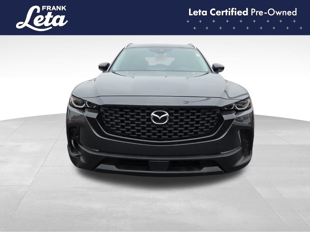 2023 Mazda CX-50 2.5 S Preferred Plus Package Machine Gray Metallic CX-50 2.5 S Preferred Plus Package, Frank Leta Certified Certified, SKYACTIV 2.5L 4-Cylinder DOHC 16V, AWD, Machine Gray Metallic, Black/Gray w/Half Leatherette Seat Trim, AppLink/Apple CarPlay and Android Auto, Exterior Parking Camera Rear, Front dual zone A/C, Fully automatic headlights, Heated door mirrors, Heated Front Bucket Seats, Leather steering wheel, Power Liftgate, Power moonroof, Wheels: 17" x 7J Aluminum Alloy, 4-Wheel Disc Brakes, 4.367 Axle Ratio, 8 Speakers, ABS brakes, Air Conditioning, AM/FM radio, Auto High-beam Headlights, Automatic temperature control, Brake assist, Bumpers: body-color, Cargo Blocks, Cargo Package, Delay-off headlights, Driver door bin, Driver vanity mirror, Dual front impact airbags, Dual front side impact airbags, Electronic Stability Control, Emergency communication system: MAZDA CONNECT, Front anti-roll bar, Front Bucket Seats, Front Center Armrest w/Storage, Front reading lights, Front wheel independent suspension, Half Leatherette Seat Trim, Heated front seats, Illuminated entry, Knee airbag, Leather Shift Knob, Low tire pressure warning, Machine Gray Metallic Paint Charge, Occupant sensing airbag, Outside temperature display, Overhead airbag, Overhead console, Panic alarm, Passenger door bin, Passenger vanity mirror, Power door mirrors, Power driver seat, Power steering, Power windows, Radio data system, Radio: AM/FM/HD Audio System, Rain sensing wipers, Rear seat center armrest, Rear window defroster, Rear window wiper, Remote keyless entry, Speed control, Speed-sensing steering, Split folding rear seat, Spoiler, Steering wheel mounted audio controls, Tachometer, Telescoping steering wheel, Tilt steering wheel, Traction control, Trip computer, Turn signal indicator mirrors, Variably intermittent wipers, CX-50 2.5 S Preferred Plus Package, SKYACTIV 2.5L 4-Cylinder DOHC 16V, AWD, Machine Gray Metallic, Black/Gray w/Half Leatherette Seat Trim, AppLink/Apple CarPlay and Android Auto, Exterior Parking Camera Rear, Front dual zone A/C, Fully automatic headlights, Heated door mirrors, Heated Front Bucket Seats, Leather steering wheel, Power Liftgate, Power moonroof, Wheels: 17" x 7J Aluminum Alloy. SKYACTIV 2.5L 4-Cylinder DOHC 16V 6-Speed Automatic AWD 4D Sport Utility 24/30 City/Highway MPG