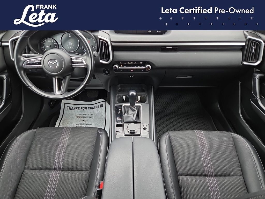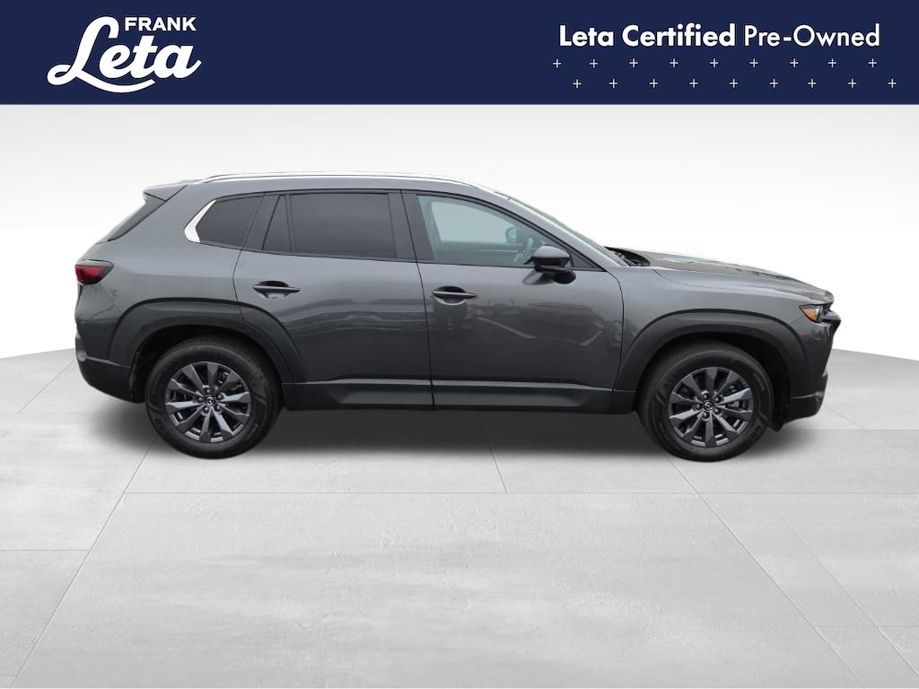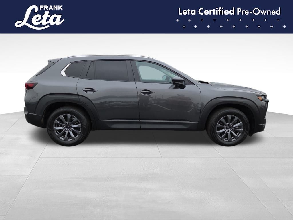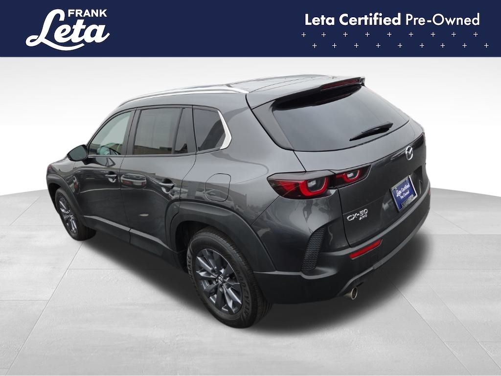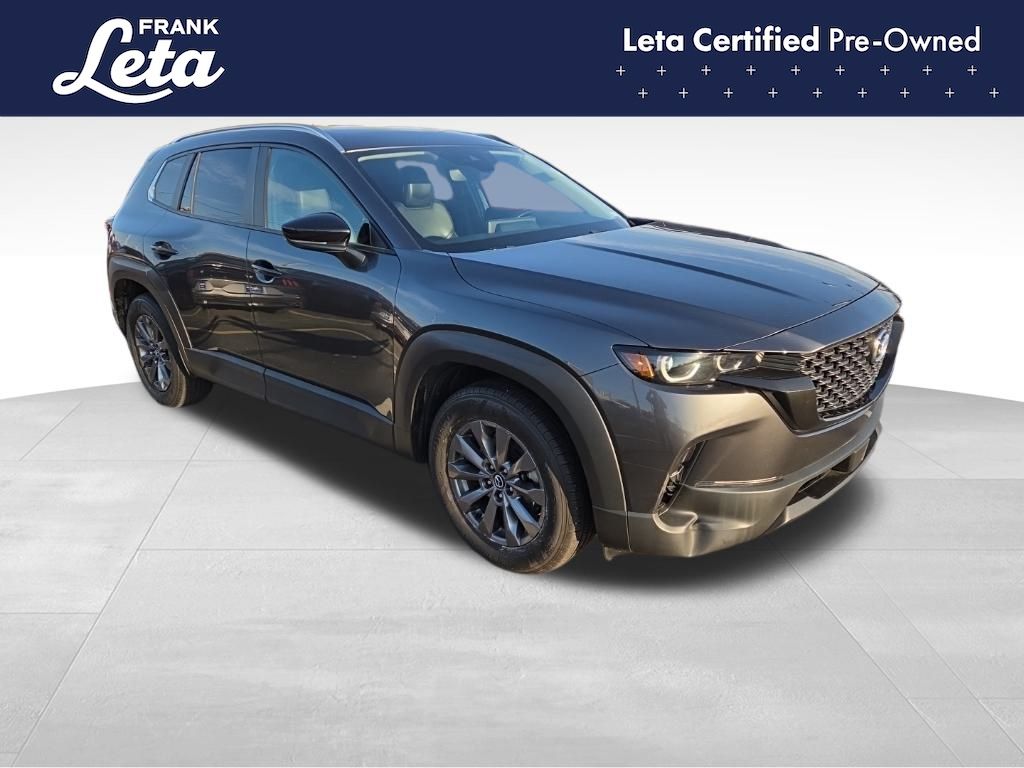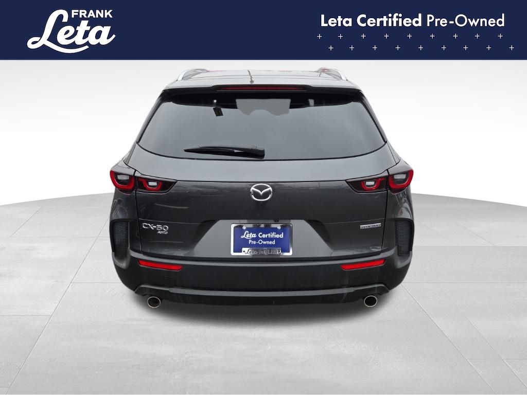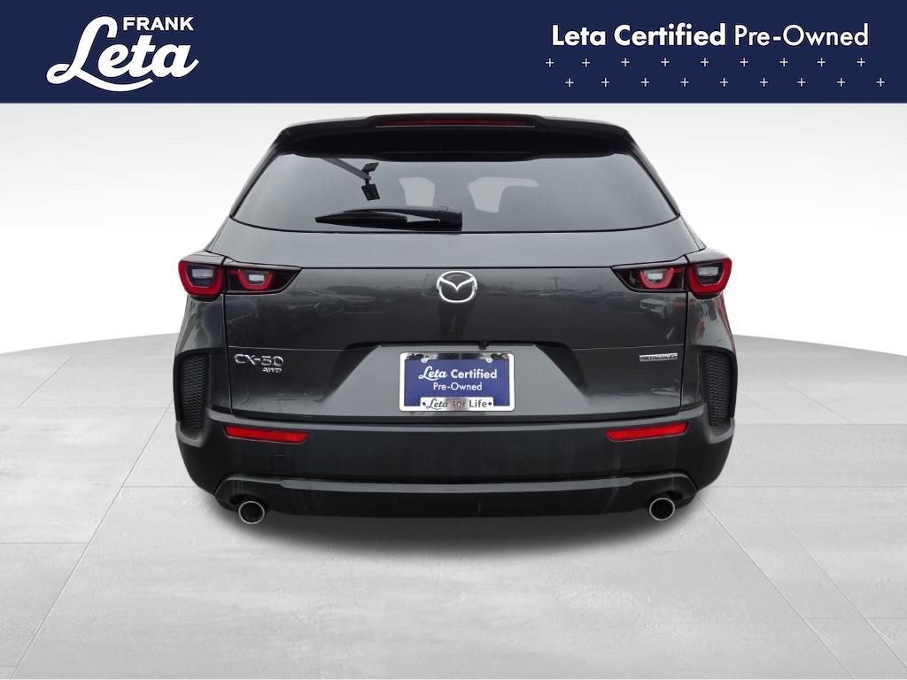 2023 Mazda CX-50 2.5 S Preferred Plus Package Machine Gray Metallic CX-50 2.5 S Preferred Plus Package, Frank Leta Certified Certified, SKYACTIV 2.5L 4-Cylinder DOHC 16V, AWD, Machine Gray Metallic, Black/Gray w/Half Leatherette Seat Trim, AppLink/Apple CarPlay and Android Auto, Exterior Parking Camera Rear, Front dual zone A/C, Fully automatic headlights, Heated door mirrors, Heated Front Bucket Seats, Leather steering wheel, Power Liftgate, Power moonroof, Wheels: 17" x 7J Aluminum Alloy, 4-Wheel Disc Brakes, 4.367 Axle Ratio, 8 Speakers, ABS brakes, Air Conditioning, AM/FM radio, Auto High-beam Headlights, Automatic temperature control, Brake assist, Bumpers: body-color, Cargo Blocks, Cargo Package, Delay-off headlights, Driver door bin, Driver vanity mirror, Dual front impact airbags, Dual front side impact airbags, Electronic Stability Control, Emergency communication system: MAZDA CONNECT, Front anti-roll bar, Front Bucket Seats, Front Center Armrest w/Storage, Front reading lights, Front wheel independent suspension, Half Leatherette Seat Trim, Heated front seats, Illuminated entry, Knee airbag, Leather Shift Knob, Low tire pressure warning, Machine Gray Metallic Paint Charge, Occupant sensing airbag, Outside temperature display, Overhead airbag, Overhead console, Panic alarm, Passenger door bin, Passenger vanity mirror, Power door mirrors, Power driver seat, Power steering, Power windows, Radio data system, Radio: AM/FM/HD Audio System, Rain sensing wipers, Rear seat center armrest, Rear window defroster, Rear window wiper, Remote keyless entry, Speed control, Speed-sensing steering, Split folding rear seat, Spoiler, Steering wheel mounted audio controls, Tachometer, Telescoping steering wheel, Tilt steering wheel, Traction control, Trip computer, Turn signal indicator mirrors, Variably intermittent wipers, CX-50 2.5 S Preferred Plus Package, SKYACTIV 2.5L 4-Cylinder DOHC 16V, AWD, Machine Gray Metallic, Black/Gray w/Half Leatherette Seat Trim, AppLink/Apple CarPlay and Android Auto, Exterior Parking Camera Rear, Front dual zone A/C, Fully automatic headlights, Heated door mirrors, Heated Front Bucket Seats, Leather steering wheel, Power Liftgate, Power moonroof, Wheels: 17" x 7J Aluminum Alloy. SKYACTIV 2.5L 4-Cylinder DOHC 16V 6-Speed Automatic AWD 4D Sport Utility 24/30 City/Highway MPG