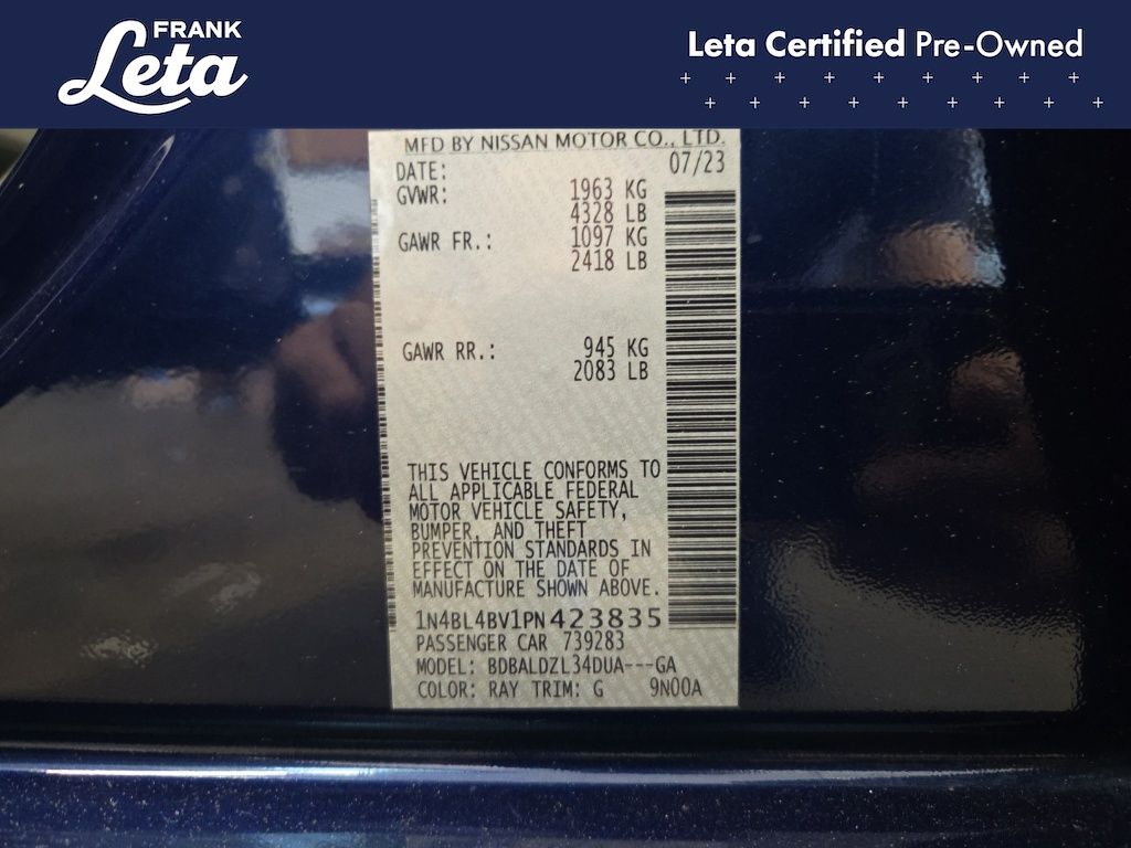 - VIN : 1N4BL4BV1PN423835