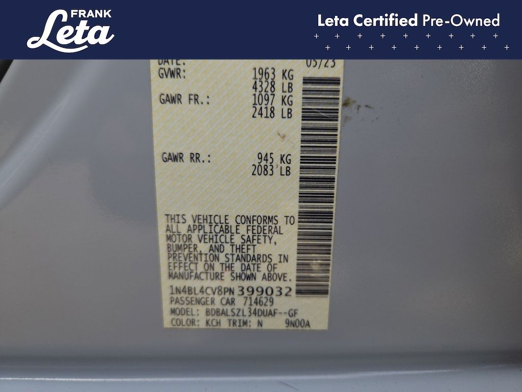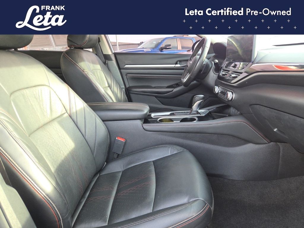 CARFAX One-Owner. 2023 Nissan Altima 2.5 SR Gray Sky Pearl Altima 2.5 SR, Frank Leta Certified Certified, 2.5L 4-Cylinder DOHC 16V, CVT with Xtronic, FWD, Gray Sky Pearl, Sport w/Leather-Appointed Seat Trim, Black Outside Mirrors, Blind Spot Warning, Fully automatic headlights, Heated Front Seats, Leather-Appointed Seat Trim, NissanConnect, NissanConnect featuring Apple CarPlay and Android Auto, Premium Sport Interior Finishers, Rear Parking Sensors, Single Panel Moonroof, SR Premium Package, Wheels: 19" Sport Alloy, 4-Wheel Disc Brakes, 6 Speakers, ABS brakes, Air Conditioning, AM/FM radio: SiriusXM, Auto High-beam Headlights, Body-Colored Rear Spoiler, Body-Colored Splash Guards, Brake assist, Bumpers: body-color, Chrome Bumper Protector, Delay-off headlights, Driver door bin, Driver vanity mirror, Dual front impact airbags, Dual front side impact airbags, Electronic Stability Control, Four wheel independent suspension, Front anti-roll bar, Front Bucket Seats, Front Center Armrest, Front reading lights, Front Sport Bucket Seats, Illuminated entry, Knee airbag, Leather Shift Knob, Low tire pressure warning, Occupant sensing airbag, Outside temperature display, Overhead airbag, Overhead console, Panic alarm, Passenger door bin, Passenger vanity mirror, Power door mirrors, Power driver seat, Power steering, Power windows, Radio data system, Radio: AM/FM Audio System, Rear anti-roll bar, Rear reading lights, Rear seat center armrest, Rear side impact airbag, Rear window defroster, Remote keyless entry, Security system, Speed control, Speed-sensing steering, Speed-Sensitive Wipers, Split folding rear seat, Sport Seat Trim, SR Floor Mats/Trunk Mat/Hideaway Nets, Steering wheel mounted audio controls, Tachometer, Tech Spec Change, Telescoping steering wheel, Tilt steering wheel, Traction control, Trip computer, Variably intermittent wipers, Altima 2.5 SR, 2.5L 4-Cylinder DOHC 16V, CVT with Xtronic, FWD, Gray Sky Pearl, Sport w/Leather-Appointed Seat Trim, Black Outside Mirrors, Blind Spot Warning, Fully automatic headlights, Heated Front Seats, Leather-Appointed Seat Trim, NissanConnect, NissanConnect featuring Apple CarPlay and Android Auto, Premium Sport Interior Finishers, Rear Parking Sensors, Single Panel Moonroof, SR Premium Package, Wheels: 19" Sport Alloy. 2.5L 4-Cylinder DOHC 16V CVT with Xtronic FWD 4D Sedan 27/37 City/Highway MPG