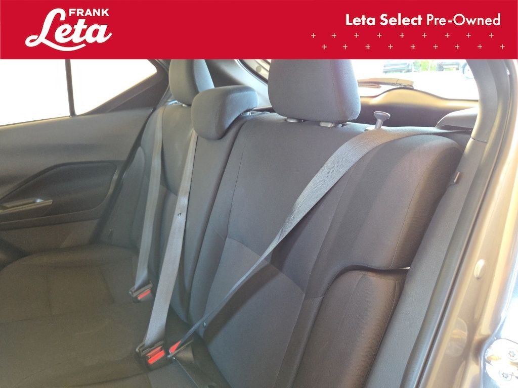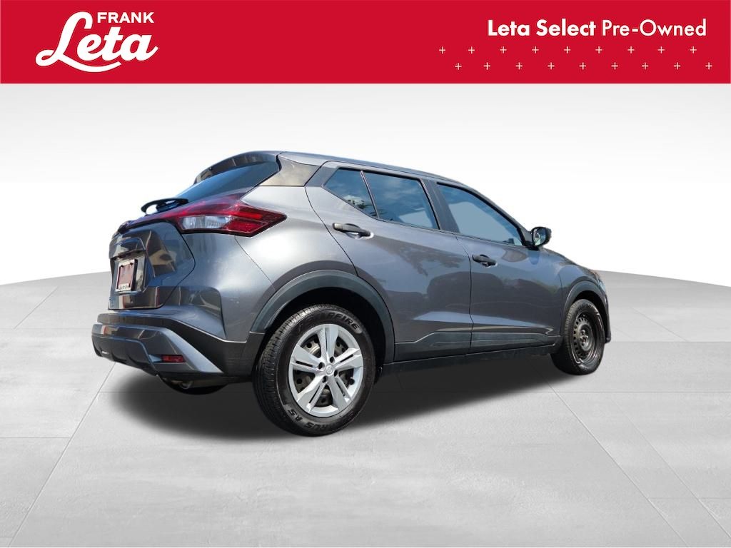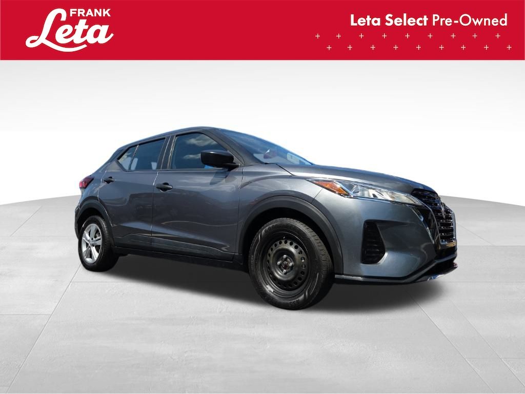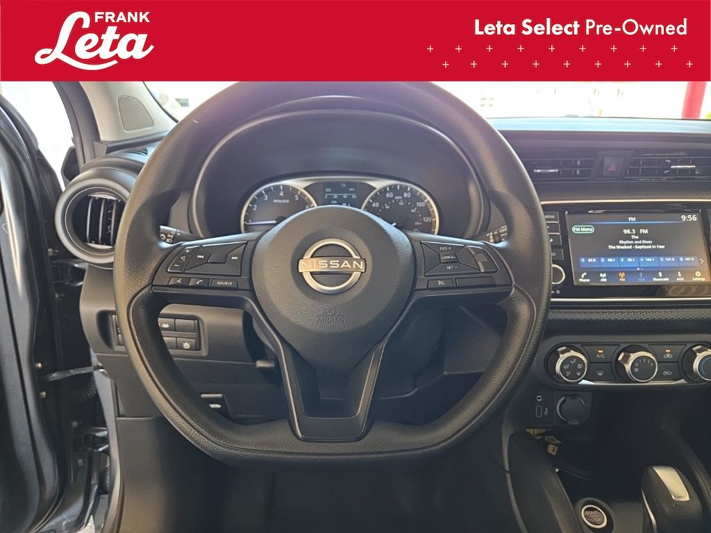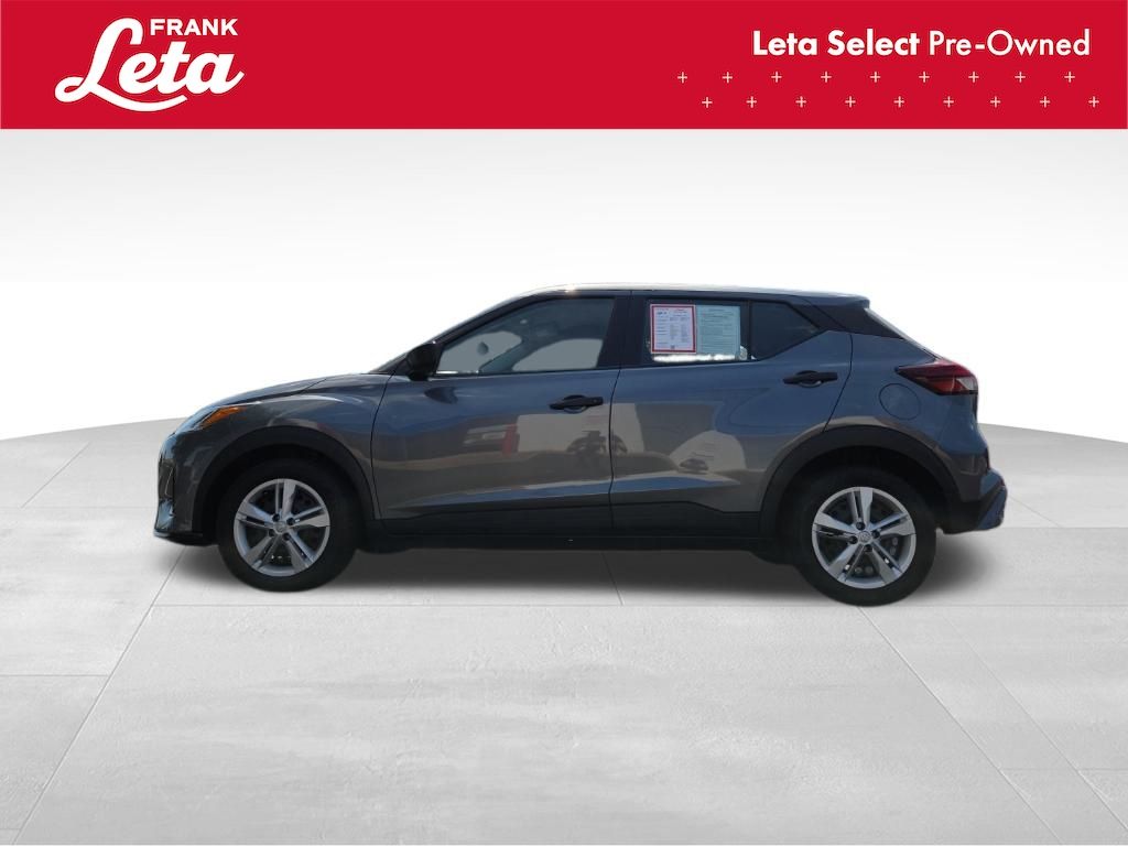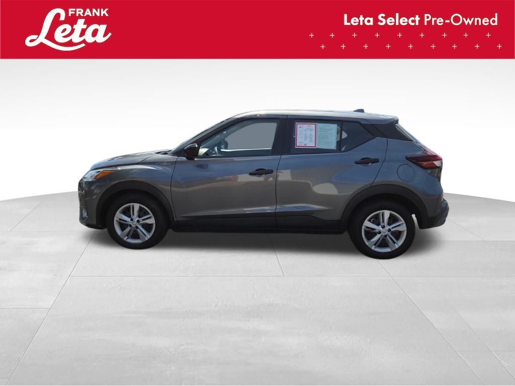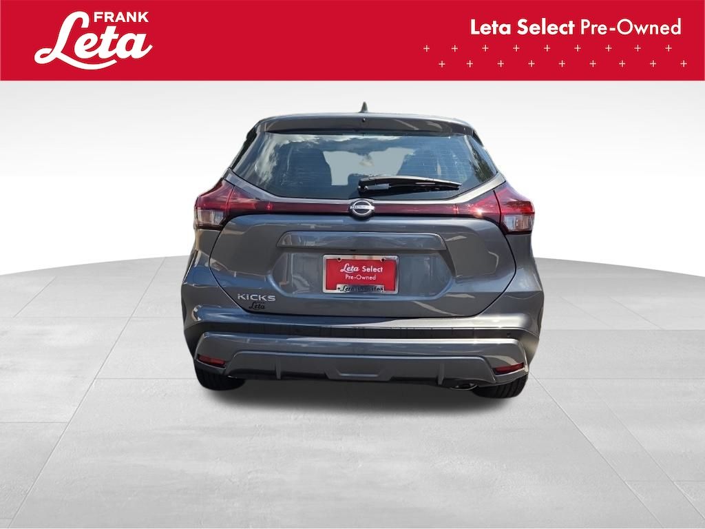 CARFAX One-Owner. 2023 Nissan Kicks S Gun Metallic Kicks S, Frank Leta Select Certified, 1.6L 4-Cylinder DOHC 16V, Gun Metallic, Charcoal Cloth, Apple CarPlay/Android Auto, Blind Spot Warning, Fully automatic headlights, Rear Parking Sensors, 16" Steel Wheels w/Full Covers, 3.93 Axle Ratio, 6 Speakers, ABS brakes, Air Conditioning, AM/FM radio, Auto High-beam Headlights, Brake assist, Bumpers: body-color, Cloth Seat Trim, Driver door bin, Driver vanity mirror, Driver's Seat Mounted Armrest, Dual front impact airbags, Dual front side impact airbags, Electronic Stability Control, Front anti-roll bar, Front Bucket Seats, Front reading lights, Front wheel independent suspension, Illuminated entry, Knee airbag, Low tire pressure warning, Occupant sensing airbag, Outside temperature display, Overhead airbag, Panic alarm, Passenger door bin, Passenger vanity mirror, Power door mirrors, Power steering, Power windows, Radio data system, Radio: AM/FM Audio System, Rear reading lights, Rear side impact airbag, Rear window defroster, Rear window wiper, Remote keyless entry, Speed control, Split folding rear seat, Sport steering wheel, Steering wheel mounted audio controls, Tachometer, Telescoping steering wheel, Tilt steering wheel, Traction control, Trip computer, Variably intermittent wipers, Kicks S, 1.6L 4-Cylinder DOHC 16V, Gun Metallic, Charcoal Cloth, Apple CarPlay/Android Auto, Blind Spot Warning, Fully automatic headlights, Rear Parking Sensors. 1.6L 4-Cylinder DOHC 16V CVT with Xtronic FWD 4D Sport Utility 31/36 City/Highway MPG
