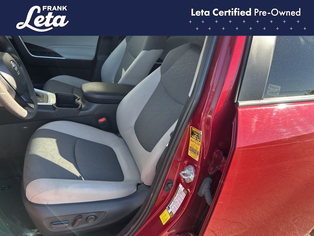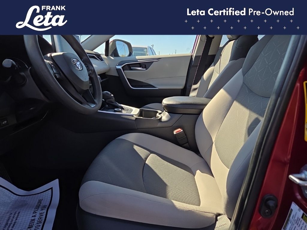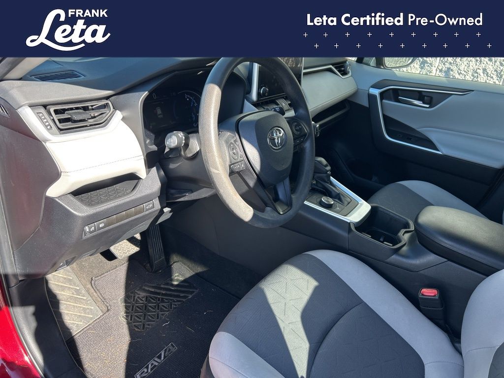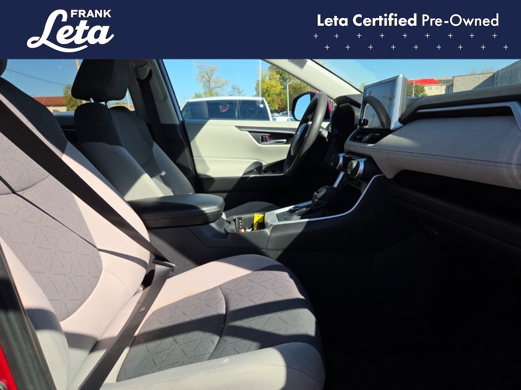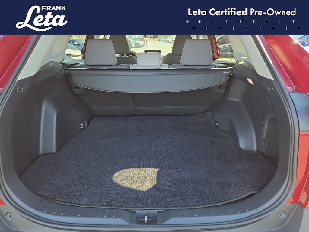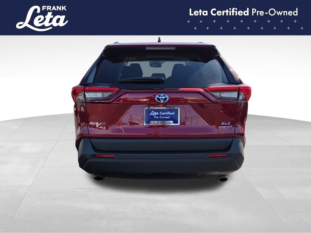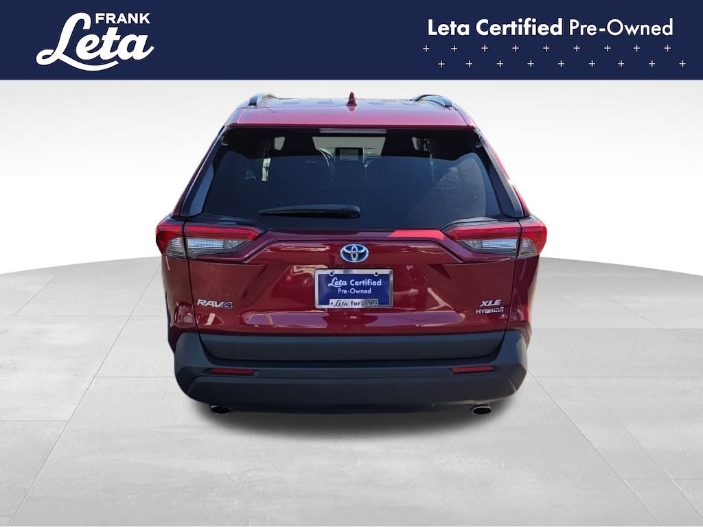 CARFAX One-Owner. 2023 Toyota RAV4 Hybrid XLE Ruby Flare Pearl RAV4 Hybrid XLE, Frank Leta Certified Certified, 2.5L 4-Cylinder, AWD, Ruby Flare Pearl, Black w/Fabric Seat Trim, Exterior Parking Camera Rear, Front dual zone A/C, Fully automatic headlights, Lane Departure Warning System, Wheels: 17" x 7.0J Silver Aluminum Alloy, 4-Wheel Disc Brakes, 6 Speakers, ABS brakes, Air Conditioning, AM/FM radio: SiriusXM, Auto High-beam Headlights, Automatic temperature control, Axle Ratio: TBD, Brake assist, Bumpers: body-color, Delay-off headlights, Driver door bin, Driver vanity mirror, Dual front impact airbags, Dual front side impact airbags, Electronic Stability Control, Emergency communication system: Safety Connect (1-year trial), Fabric Seat Trim, Four wheel independent suspension, Front anti-roll bar, Front Bucket Seats, Front Center Armrest, Front reading lights, Front Sport Seats, Heated door mirrors, Illuminated entry, Knee airbag, Low tire pressure warning, Occupant sensing airbag, Outside temperature display, Overhead airbag, Overhead console, Panic alarm, Passenger door bin, Passenger vanity mirror, Power door mirrors, Power driver seat, Power steering, Power windows, Radio data system, Radio: AM/FM/XM Audio System, Rear anti-roll bar, Rear seat center armrest, Rear window defroster, Rear window wiper, Remote keyless entry, Speed control, Speed-sensing steering, Split folding rear seat, Spoiler, Steering wheel mounted audio controls, Telescoping steering wheel, Tilt steering wheel, Traction control, Trip computer, Turn signal indicator mirrors, Variably intermittent wipers, RAV4 Hybrid XLE, 2.5L 4-Cylinder, AWD, Ruby Flare Pearl, Black w/Fabric Seat Trim, Exterior Parking Camera Rear, Front dual zone A/C, Fully automatic headlights, Lane Departure Warning System, Wheels: 17" x 7.0J Silver Aluminum Alloy. 2.5L 4-Cylinder eCVT AWD 4D Sport Utility 41/38 City/Highway MPG