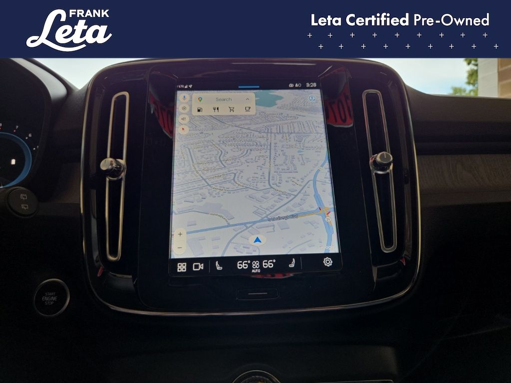 CARFAX One-Owner. 2023 Volvo XC40 B5 Plus Bright Theme Bright Dusk Metallic XC40 B5 Plus Bright Theme, Frank Leta Certified Certified, 2.0L I4 Turbocharged DOHC 16V LEV3-ULEV70, AWD, Bright Dusk Metallic, Charcoal w/Leather Seating Surfaces, Apple CarPlay, Auto-dimming door mirrors, Auto-dimming Rear-View mirror, Exterior Parking Camera Rear, Front fog lights, Fully automatic headlights, Garage door transmitter: HomeLink, Heated front seats, Internet access capable: Digital Services Package w/ 4 Year Subscription, Memory seat, Navigation System, Power moonroof, Wheels: 18" 5-Double Spoke Black Diamond Cut Alloy, 4-Wheel Disc Brakes, 8 Speakers, ABS brakes, Air Conditioning, AM/FM Radio, AM/FM radio: SiriusXM, Auto High-beam Headlights, Automatic temperature control, Brake assist, Bumpers: body-color, Delay-off headlights, Driver door bin, Driver vanity mirror, Dual front impact airbags, Dual front side impact airbags, Electronic Stability Control, Emergency communication system: Volvo Cars App w/4 Year Subscription, Four wheel independent suspension, Front anti-roll bar, Front Bucket Seats, Front Center Armrest, Front dual zone A/C, Front reading lights, Heated door mirrors, Illuminated entry, Knee airbag, Leather Seating Surfaces, Low tire pressure warning, Occupant sensing airbag, Outside temperature display, Overhead airbag, Overhead console, Panic alarm, Passenger door bin, Passenger vanity mirror, Power door mirrors, Power driver seat, Power passenger seat, Power steering, Power windows, Radio data system, Rain sensing wipers, Rear anti-roll bar, Rear fog lights, Rear reading lights, Rear seat center armrest, Rear window defroster, Rear window wiper, Remote keyless entry, Security system, Speed control, Speed-sensing steering, Split folding rear seat, Spoiler, Steering wheel mounted audio controls, Tachometer, Telescoping steering wheel, Tilt steering wheel, Traction control, Trip computer, Turn signal indicator mirrors, Variably intermittent wipers, XC40 B5 Plus Bright Theme, 2.0L I4 Turbocharged DOHC 16V LEV3-ULEV70, AWD, Bright Dusk Metallic, Charcoal w/Leather Seating Surfaces, Apple CarPlay, Auto-dimming door mirrors, Auto-dimming Rear-View mirror, Exterior Parking Camera Rear, Front fog lights, Fully automatic headlights, Garage door transmitter: HomeLink, Heated front seats, Internet access capable: Digital Services Package w/ 4 Year Subscription, Memory seat, Navigation System, Power moonroof, Wheels: 18" 5-Double Spoke Black Diamond Cut Alloy. 2.0L I4 Turbocharged DOHC 16V LEV3-ULEV70 Automatic with Geartronic AWD 4D Sport Utility 23/30 City/Highway MPG